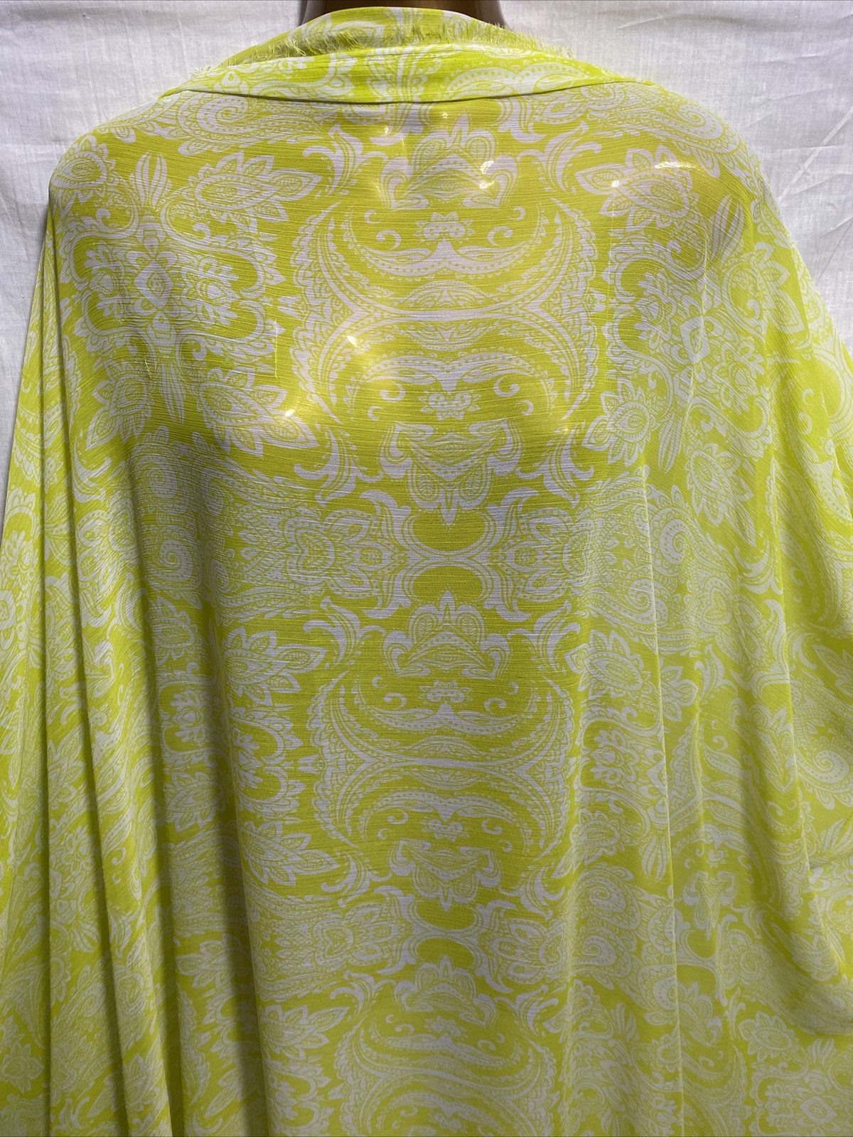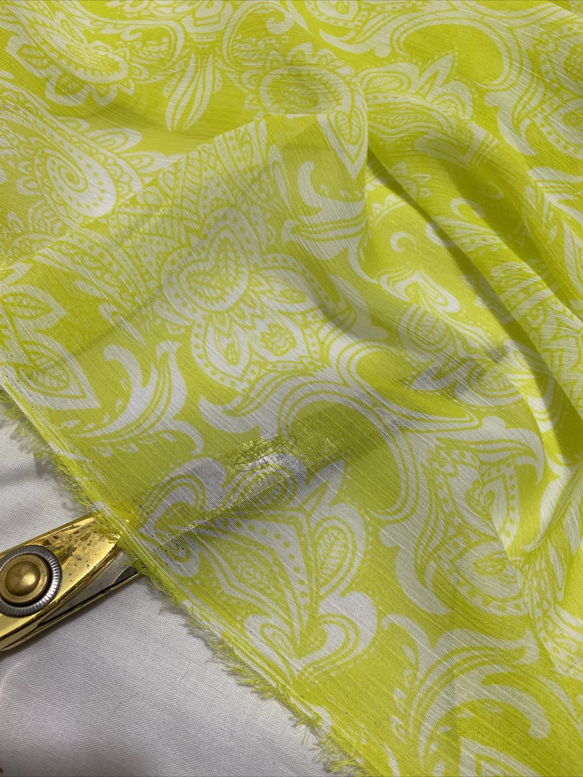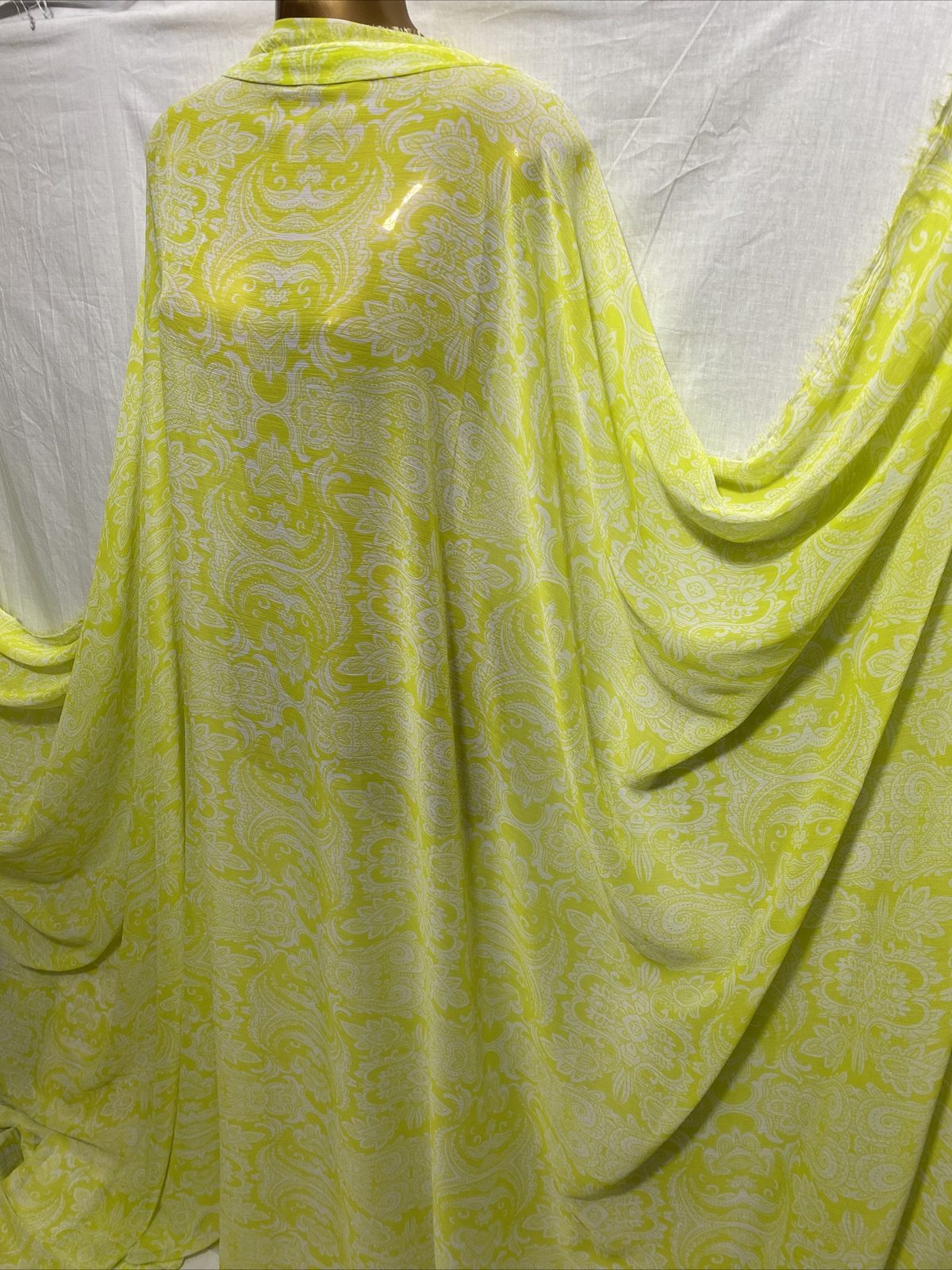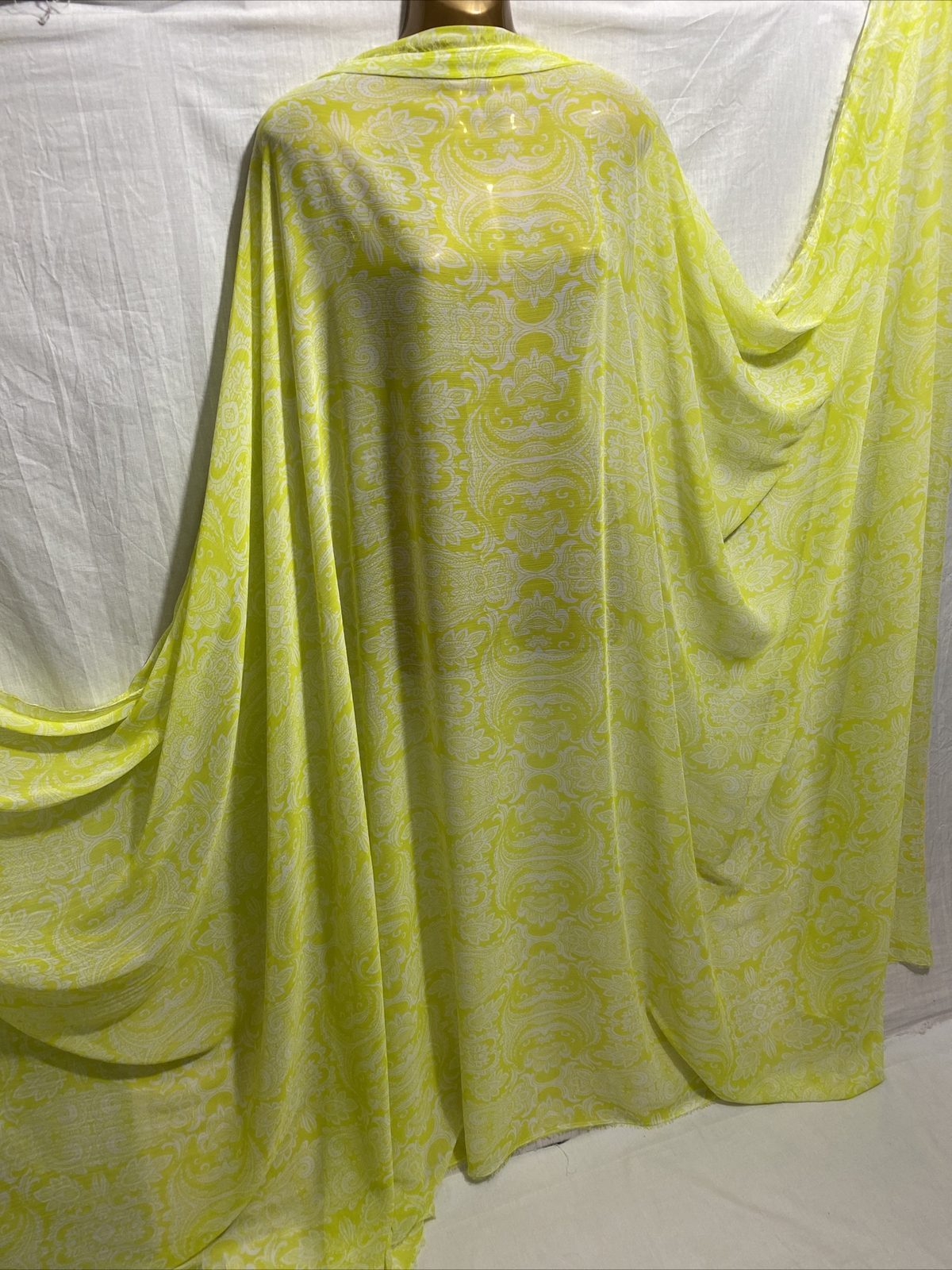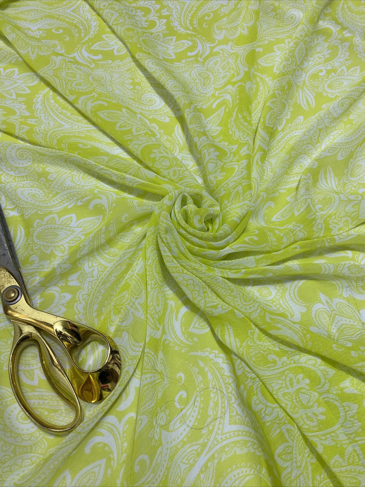 This eye-catching crinkle polyester fabric features a bold neon lime floral print, perfect for making a statement. Lightweight and breathable with a textured finish and natural stretch, it offers great drape and visual depth—ideal for dresses, blouses, scarves, festival wear, and craft projects. A standout fabric for fashion-forward or summer-inspired designs.