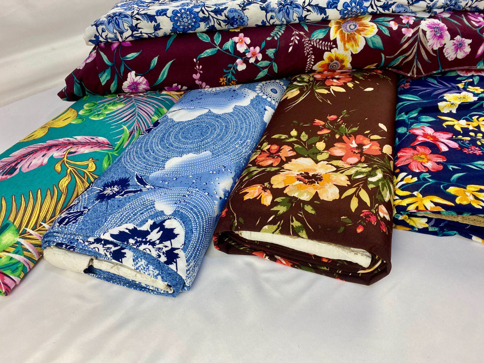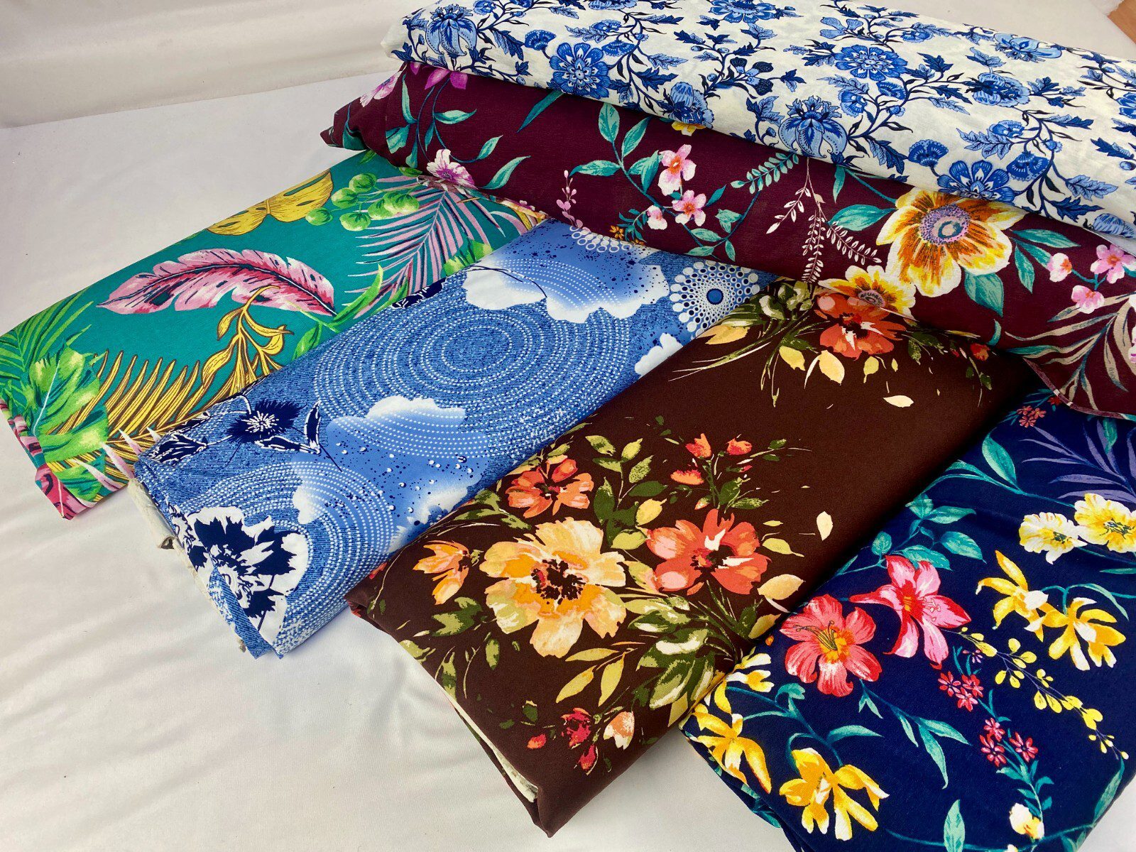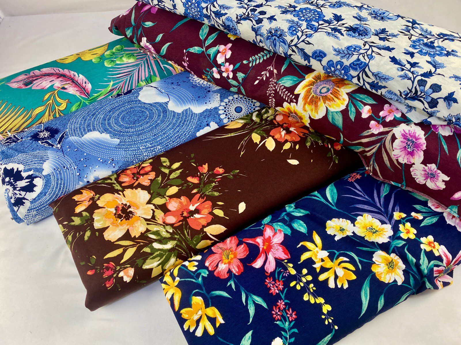 This designer 4-way stretch Lycra fabric features a beautiful floral print and offers excellent elasticity in all directions, making it perfect for dresses, activewear, costumes, leggings, swimwear, and creative DIY projects. Its smooth finish and vibrant colours make it a standout choice for both fashion and crafts. Composition: Polyester & Spandex (Lycra) blend Colour: Multicoloured – floral print Width: Approx. 147–152 cm (58”–60”) Length: Sold by the yard (91 cm) – continuous cut Pattern: Designer floral print Stretch: 4-way (horizontal and vertical) Brand: Fabric313 ✨ Perfect for: Stretch dresses, dancewear, fashion tops, cosplay, and crafts🧺 Care Instructions: Hand wash or use delicate cold cycle Do not bleach Cool iron only if needed Avoid tumble drying to maintain elasticity 📦 Same-day dispatch if ordered before 12 PM 🧵 Fabric is cut in one continuous piece