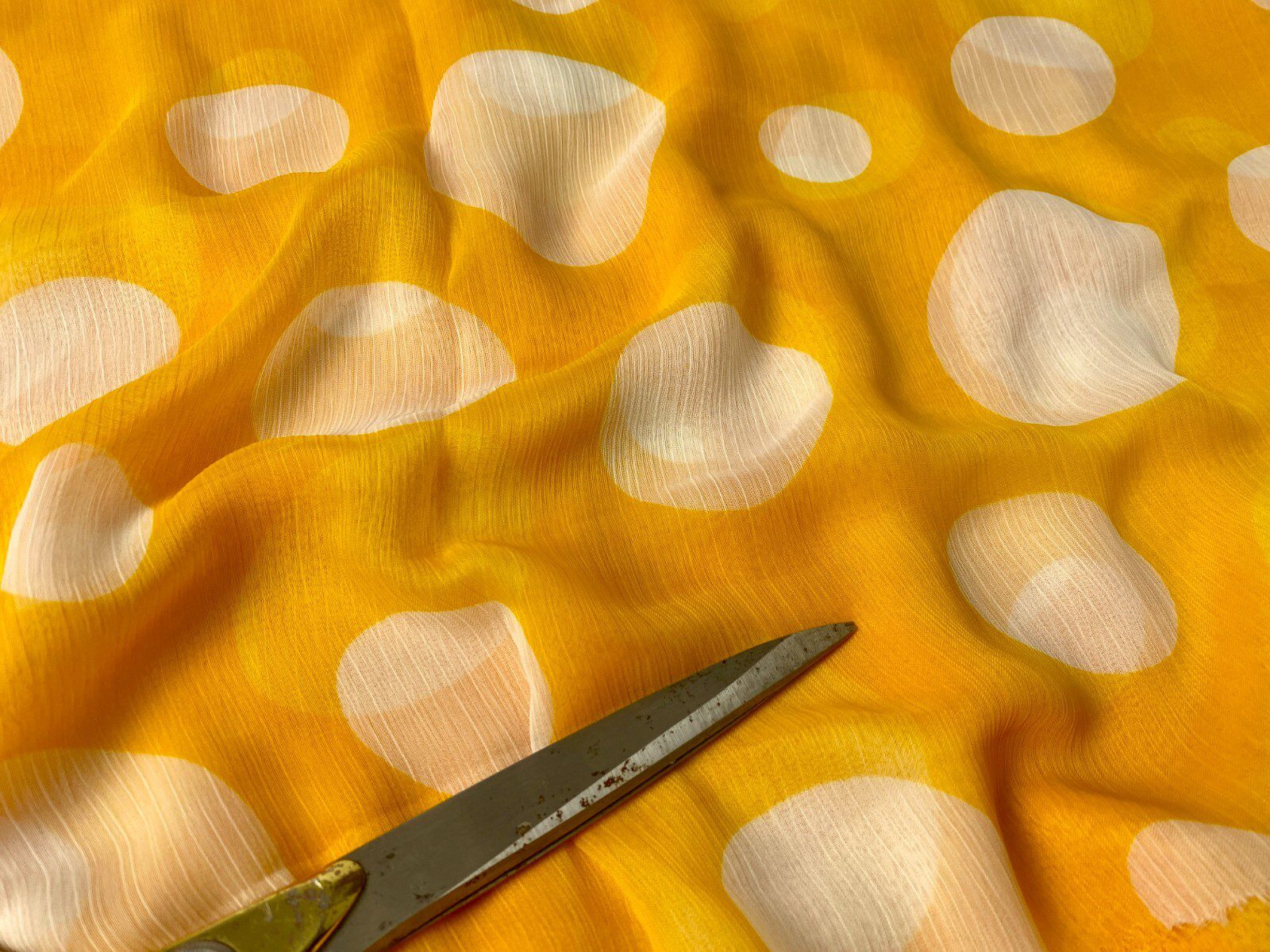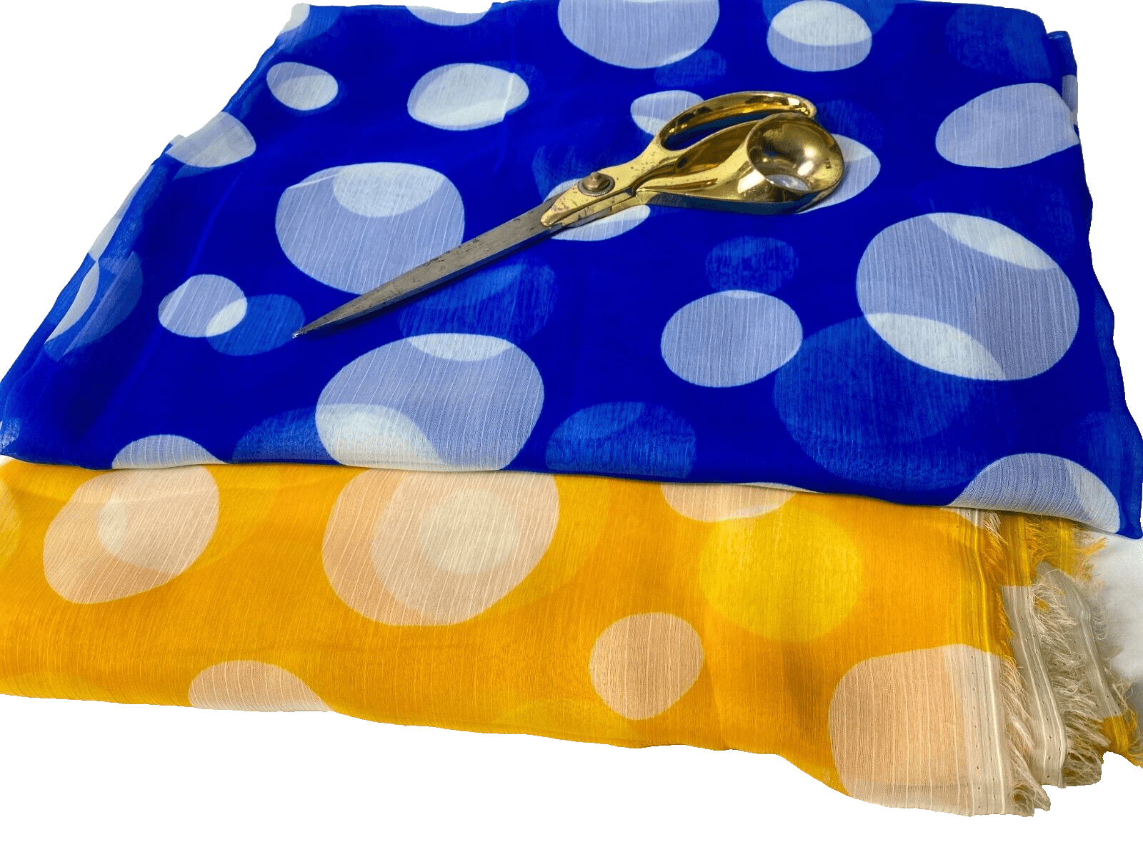 Add a touch of elegance to your crafting projects with this bundle of 6m approx. crinkle chiffon spotted fabric remnants in royal blue and sun yellow. Perfect for apparel, interfacing/lining, curtains, apparel dance/sportswear, apparel loungewear, cushion, apparel sari, costume, upholstery, kimono, children, crafts, draping, and everyday clothing. The fabric weight is light and features a cut and sew design, making it easy to work with. This offer includes the Crinkle Chiffon Spotted Fabric Bundle, ensuring you have the ideal fabric for all your creative needs.