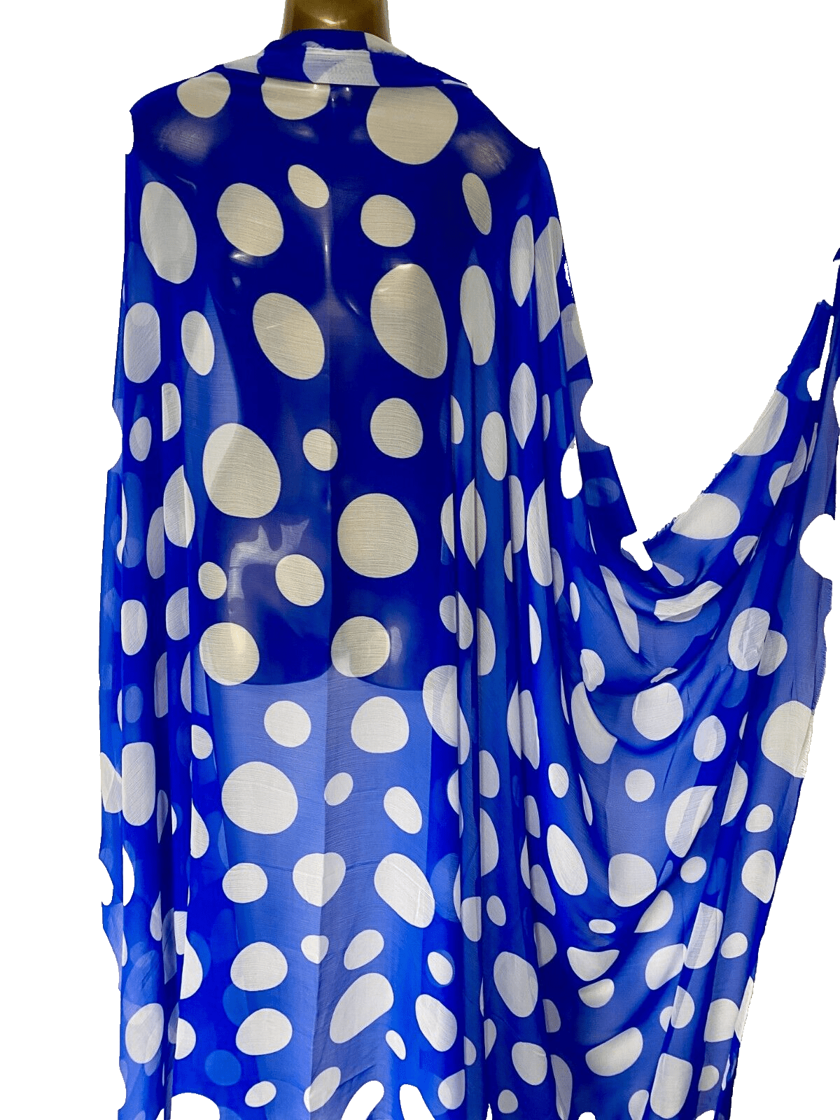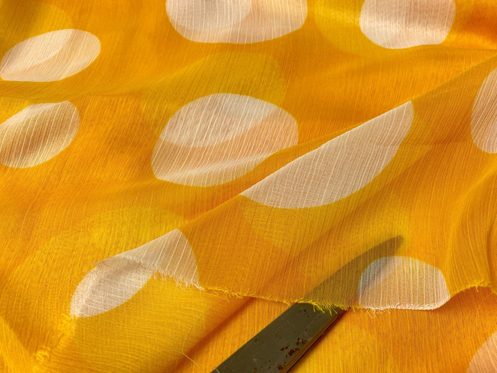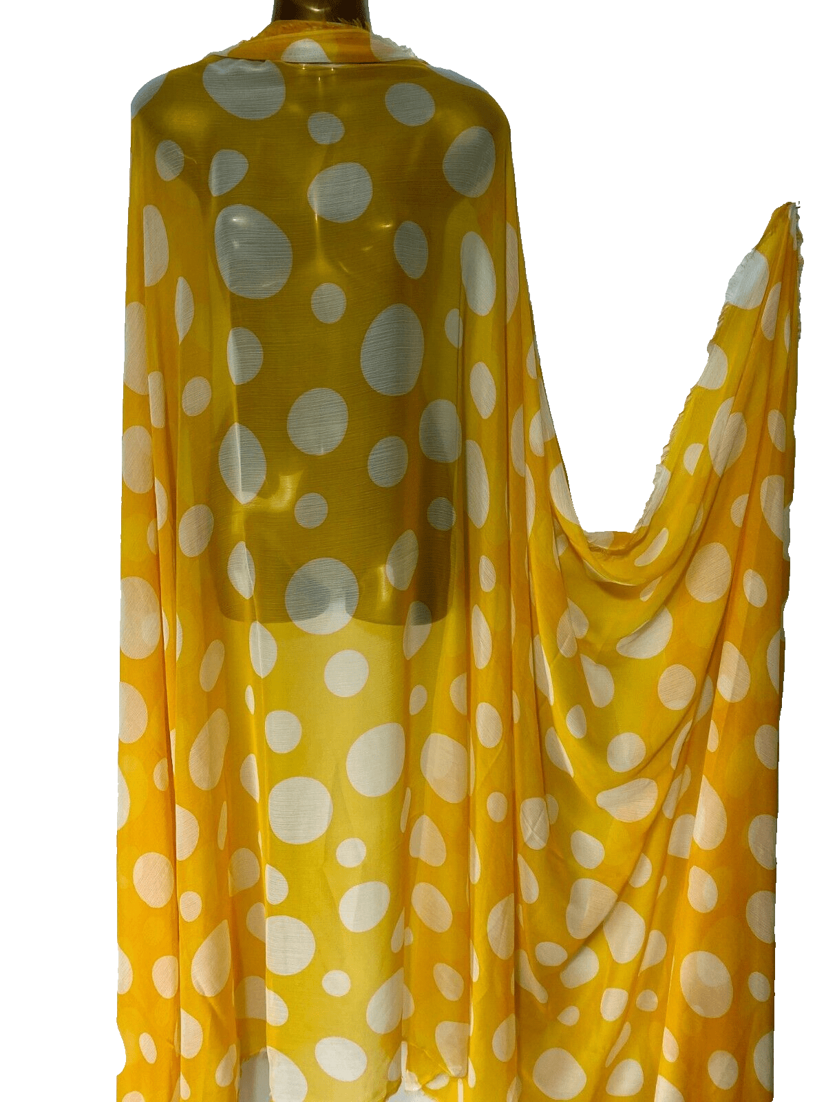 Approx. 6m bundle of crinkle chiffon spotted fabric – includes 2m + 4m remnant pieces. Lightweight, sheer, and perfect for dresses or crafts. Limited stock.