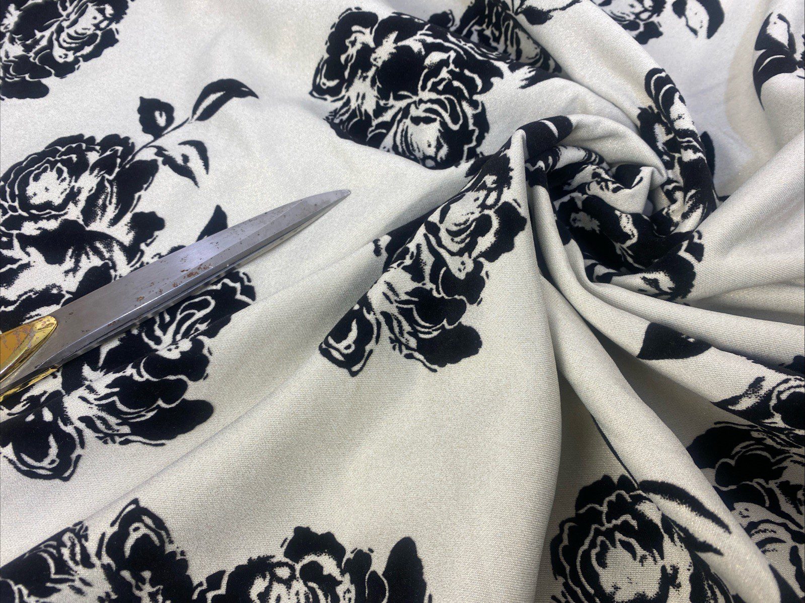 Black Velvet Embossed-Grey Roses Stretch Double Knit Jersey Dress/Craft Fabric