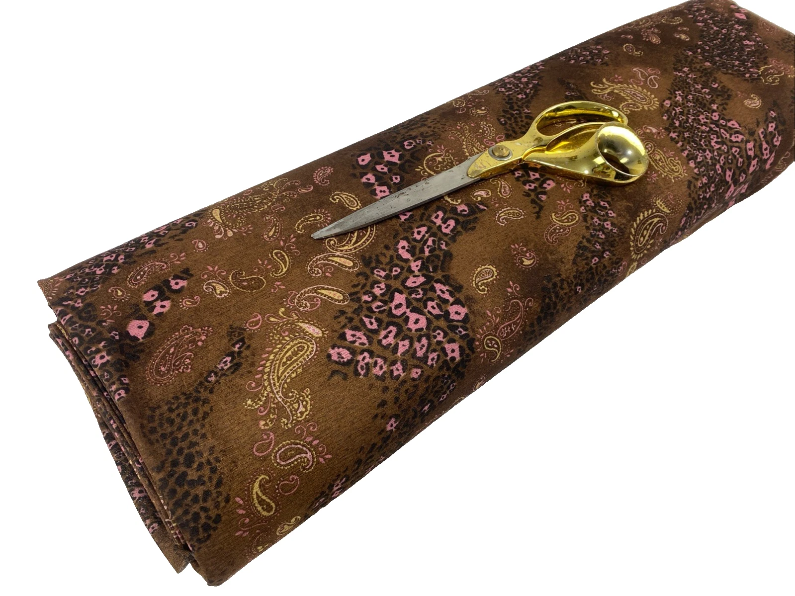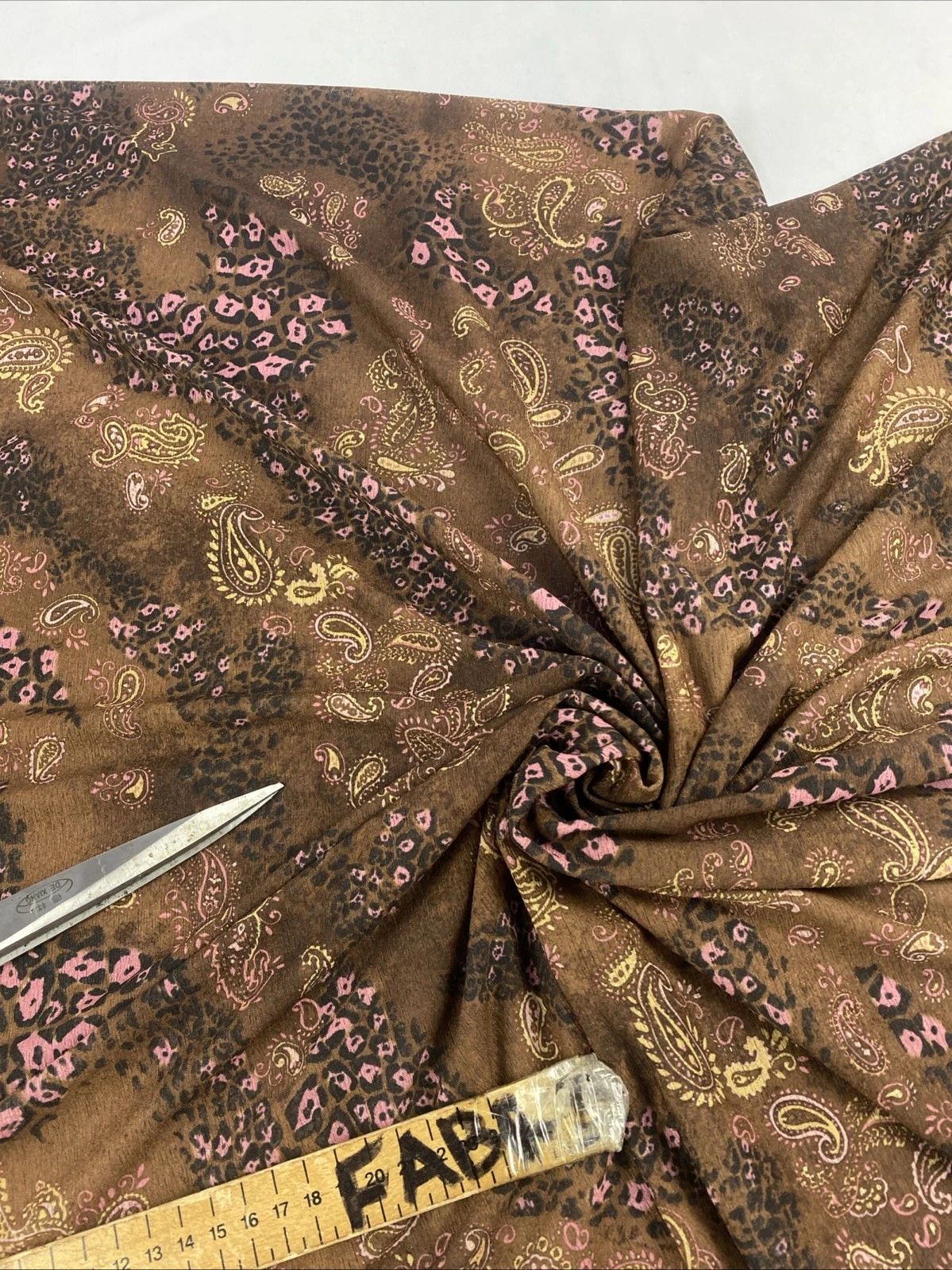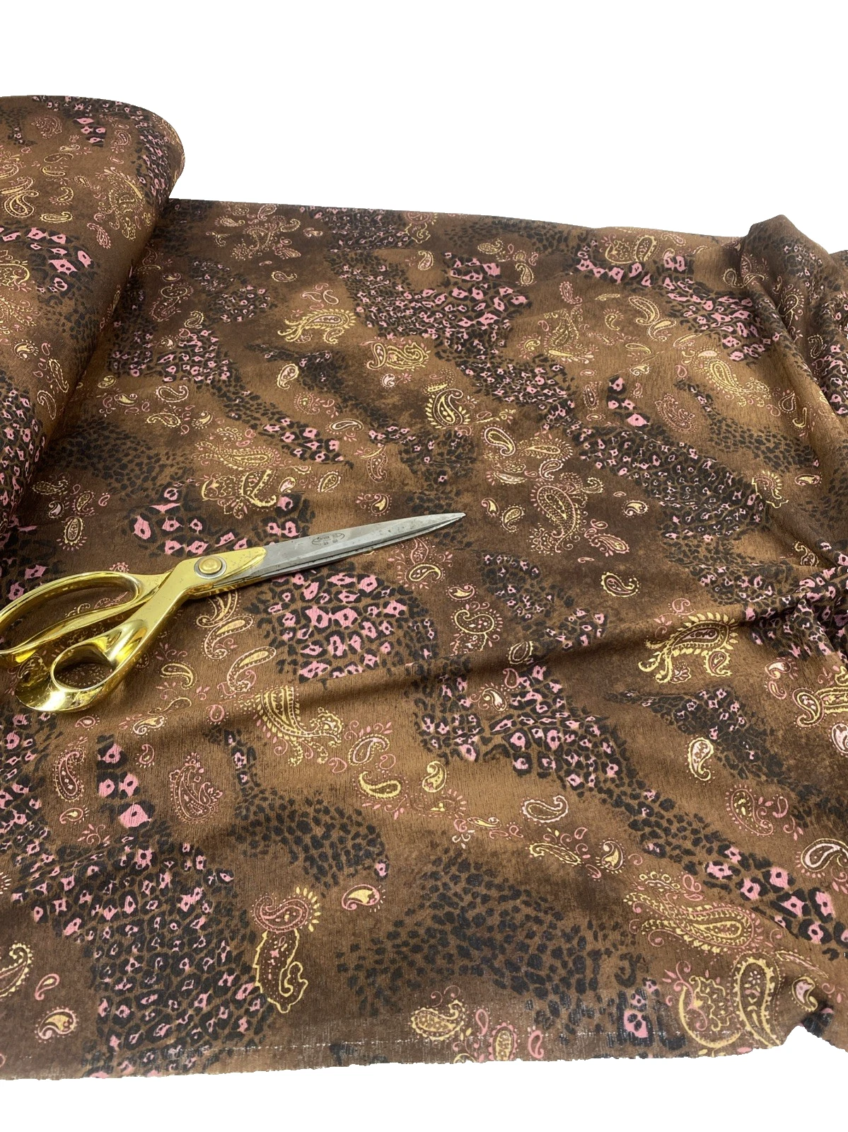 Craft your next project with our Cheapest Fabrics UK Stretch Poly Jersey fabric, featuring a beautiful Brown-Pink-Beige-Black Floral-Paisley pattern. This lightweight, versatile material is perfect for a wide range of creations, from apparel such as dresses and everyday clothing to accessories like bags, hats, and gloves. The fabric stretches comfortably, ensuring a great fit for all your designs, and is sold by the yard, allowing you to order exactly what you need for your crafting endeavors.