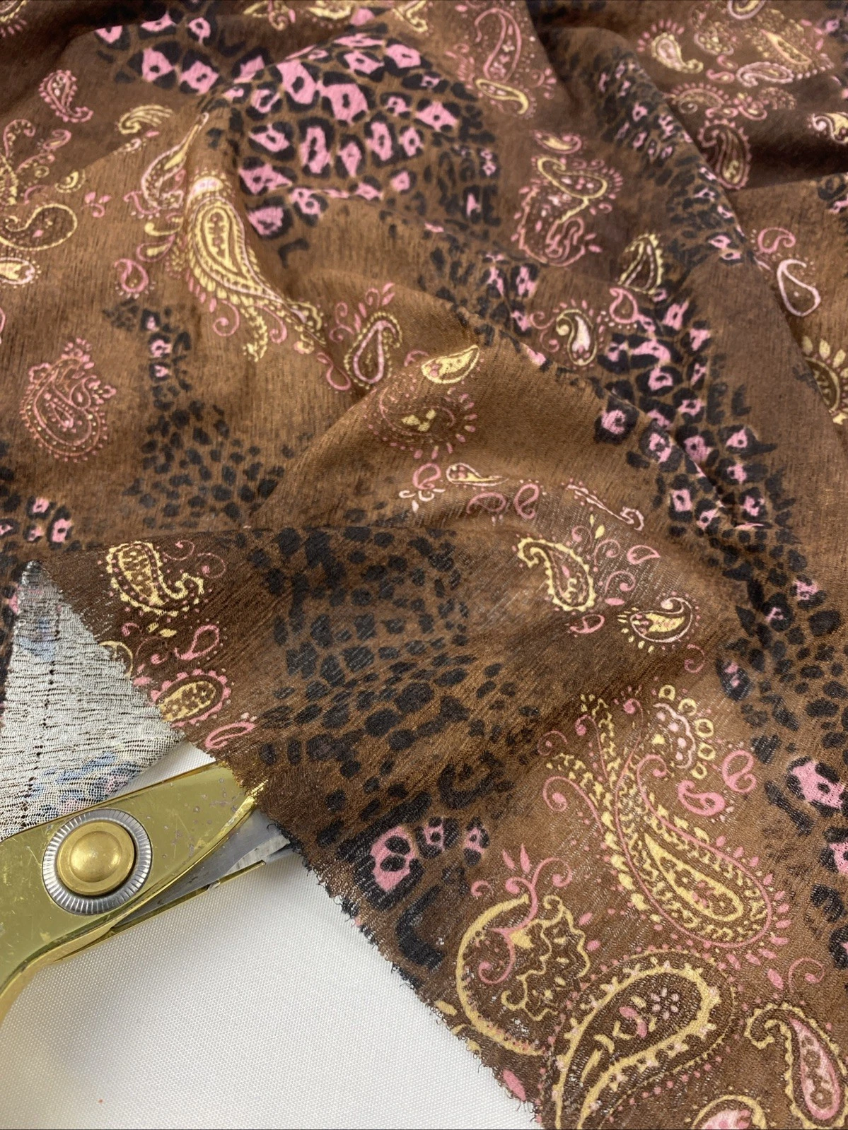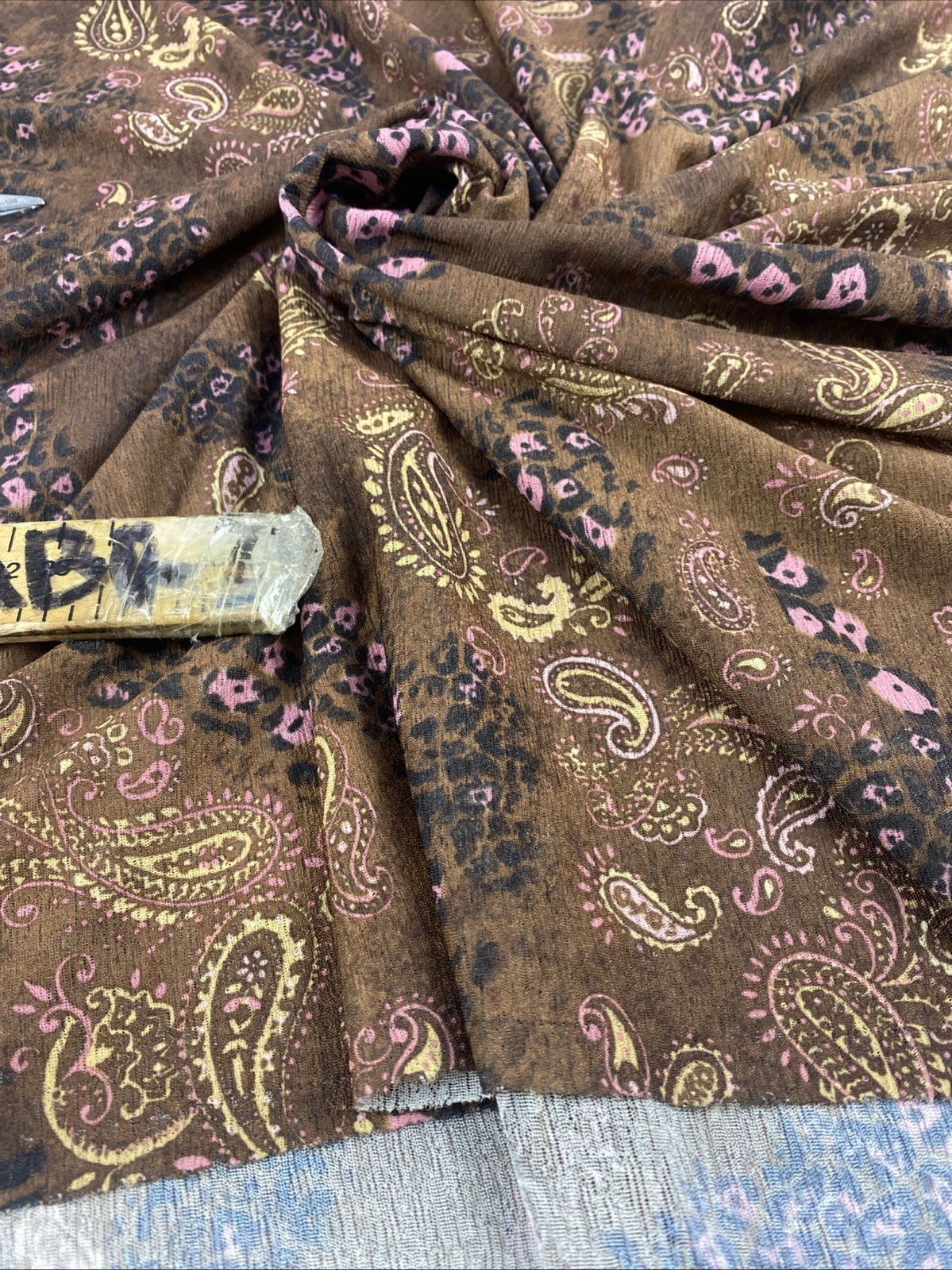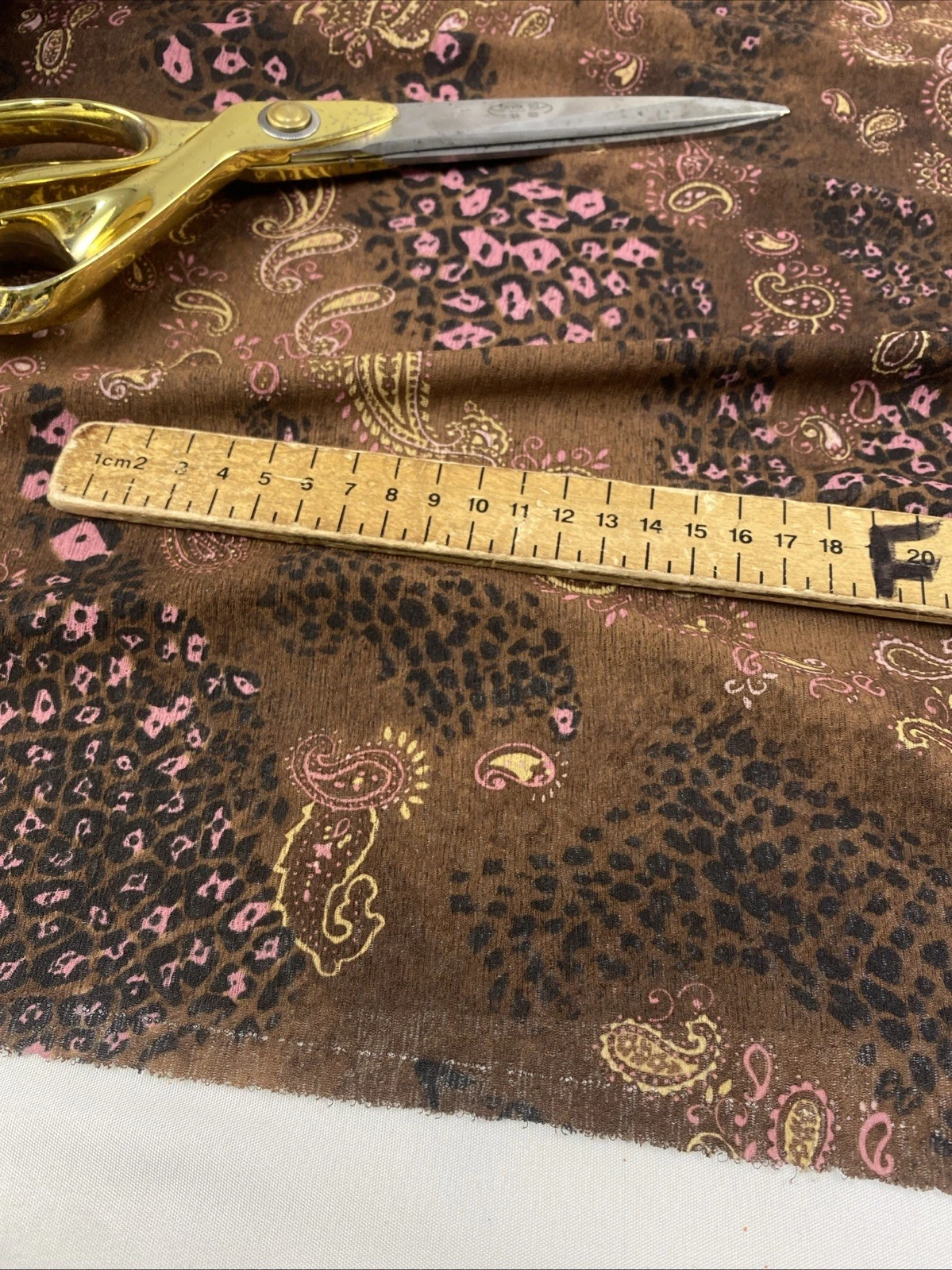 Craft your next project with our Cheapest Fabrics UK Stretch Poly Jersey fabric, featuring a beautiful Brown-Pink-Beige-Black Floral-Paisley pattern. This lightweight, versatile material is perfect for a wide range of creations, from apparel such as dresses and everyday clothing to accessories like bags, hats, and gloves. The fabric stretches comfortably, ensuring a great fit for all your designs, and is sold by the yard, allowing you to order exactly what you need for your crafting endeavors.