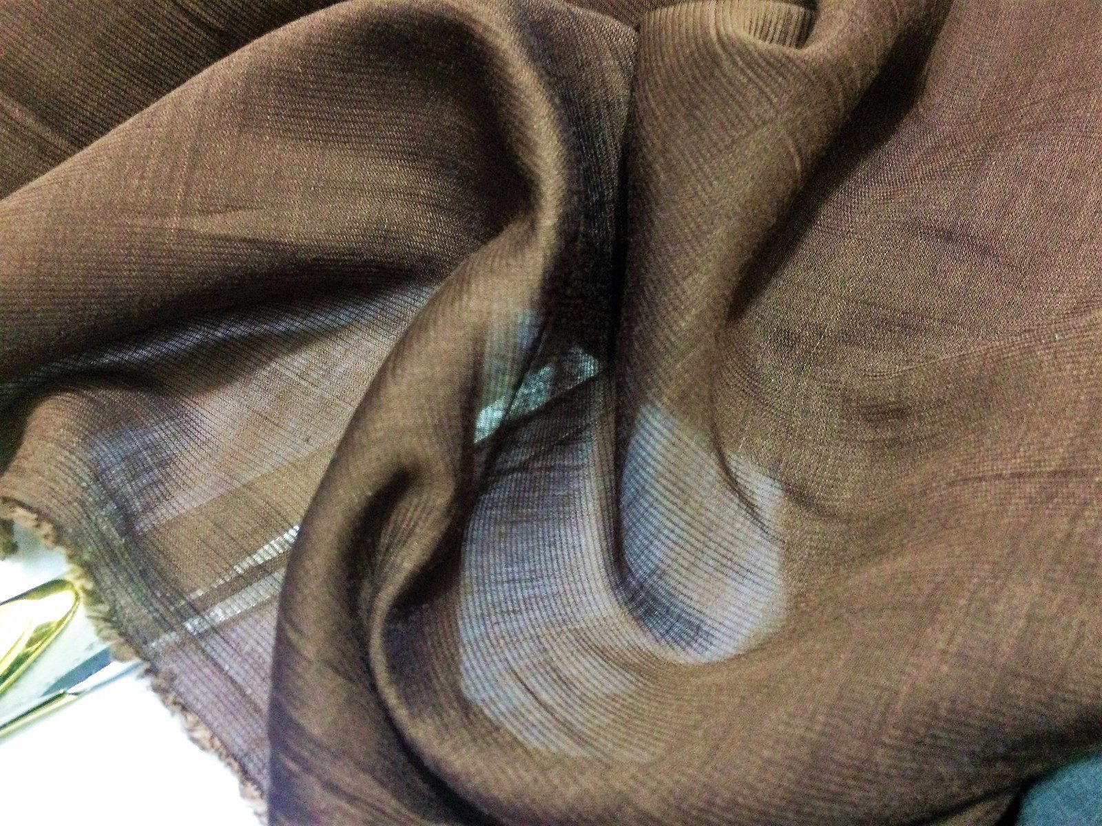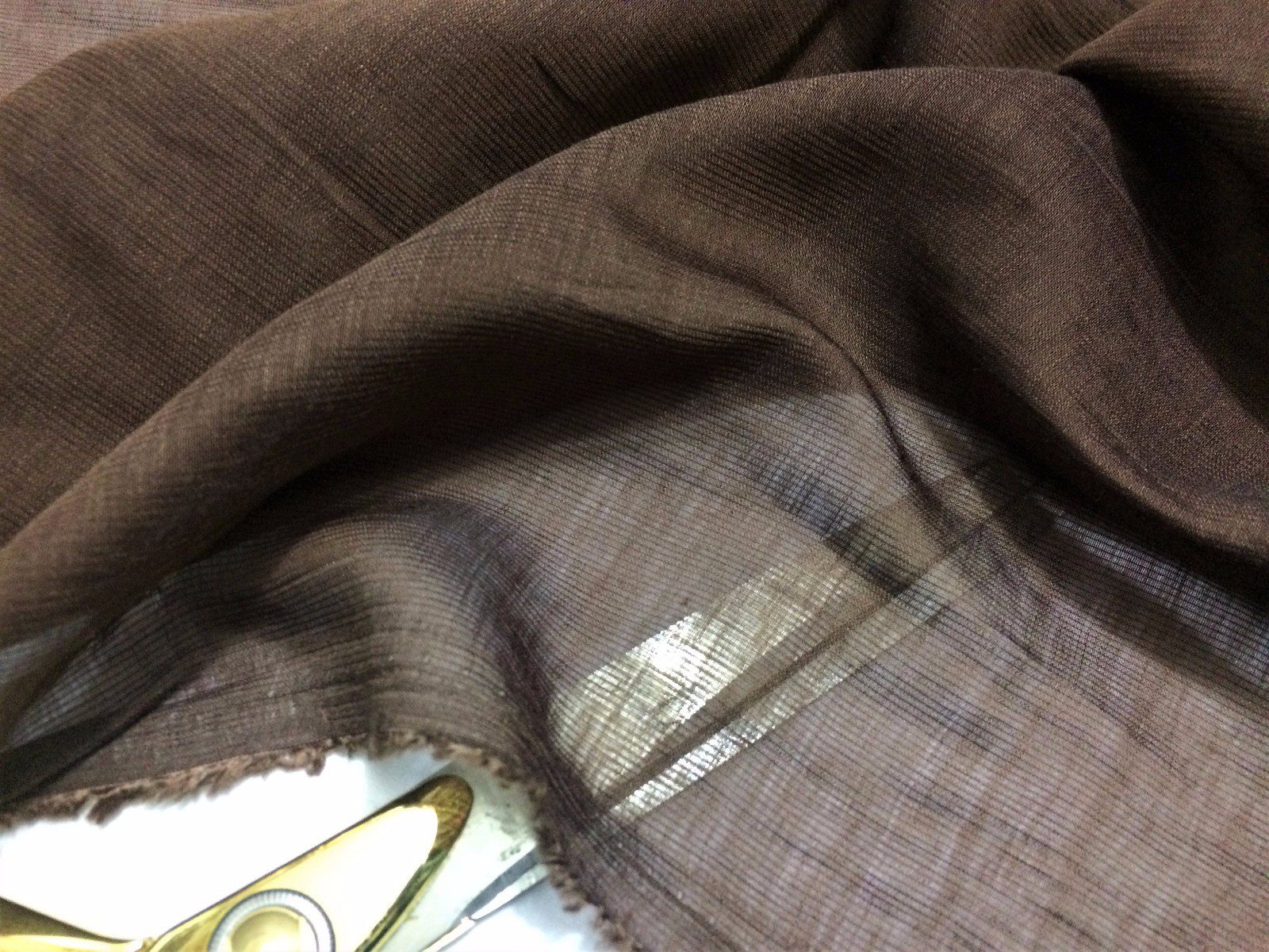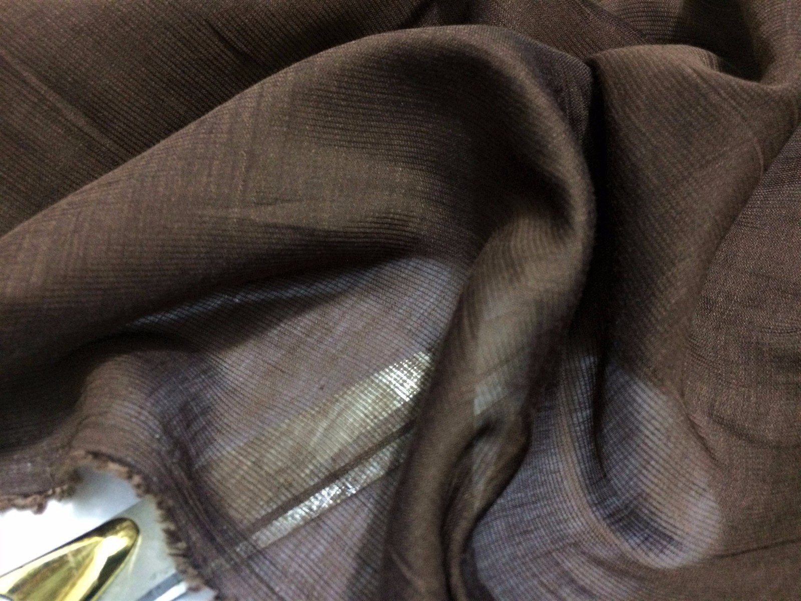 This luxurious brown silk chiffon fabric features a soft crinkle texture, offering both lightweight elegance and subtle movement. With its sheer quality and natural drape, it’s ideal for flowing dresses, scarves, evening wear, and delicate craft projects. The fine crinkled finish adds visual interest and texture to any design, making it a timeless addition to high-end fashion or accessories.