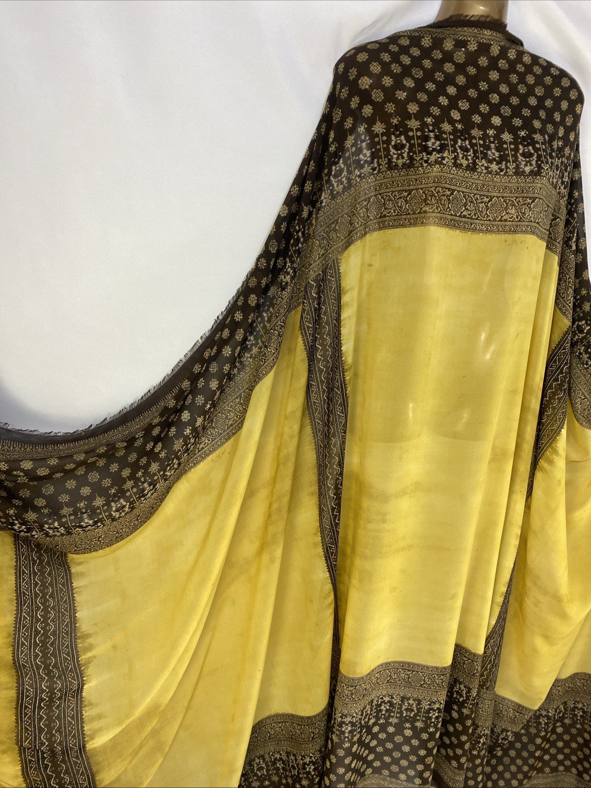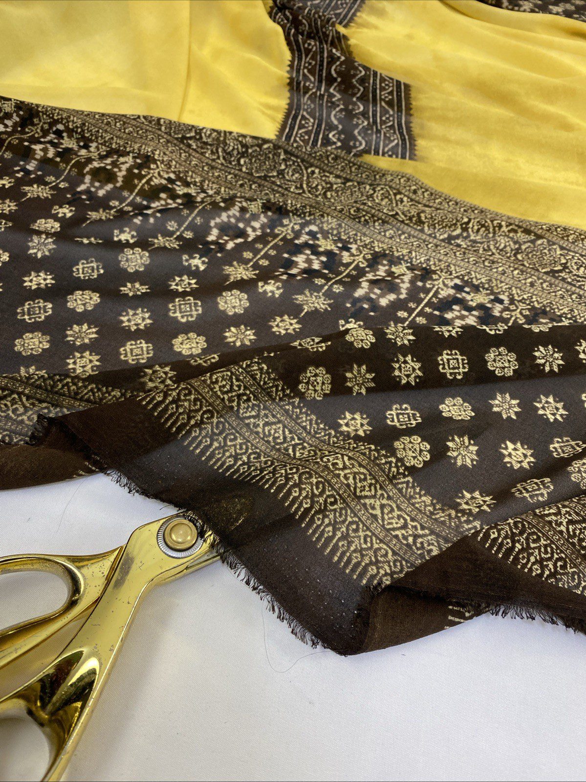 Crafted from premium chiffon material, this dress or craft fabric boasts a delightful yellow-brown hue that promises to add warmth and charm to your designs. Whether you’re envisioning a flowing dress or intricate crafts, the fabric’s light weight and exquisite print make it an exceptional choice for bringing your ideas to life. Enjoy and start your next project with this versatile and stunning fabric.