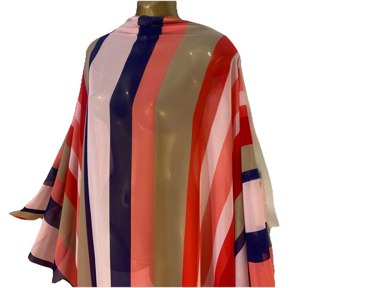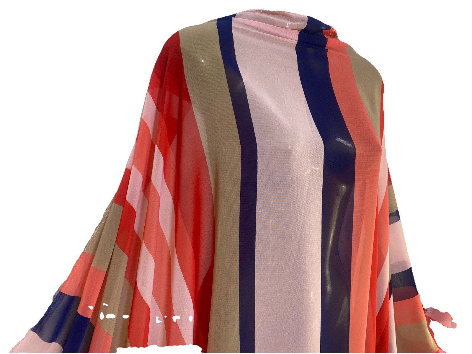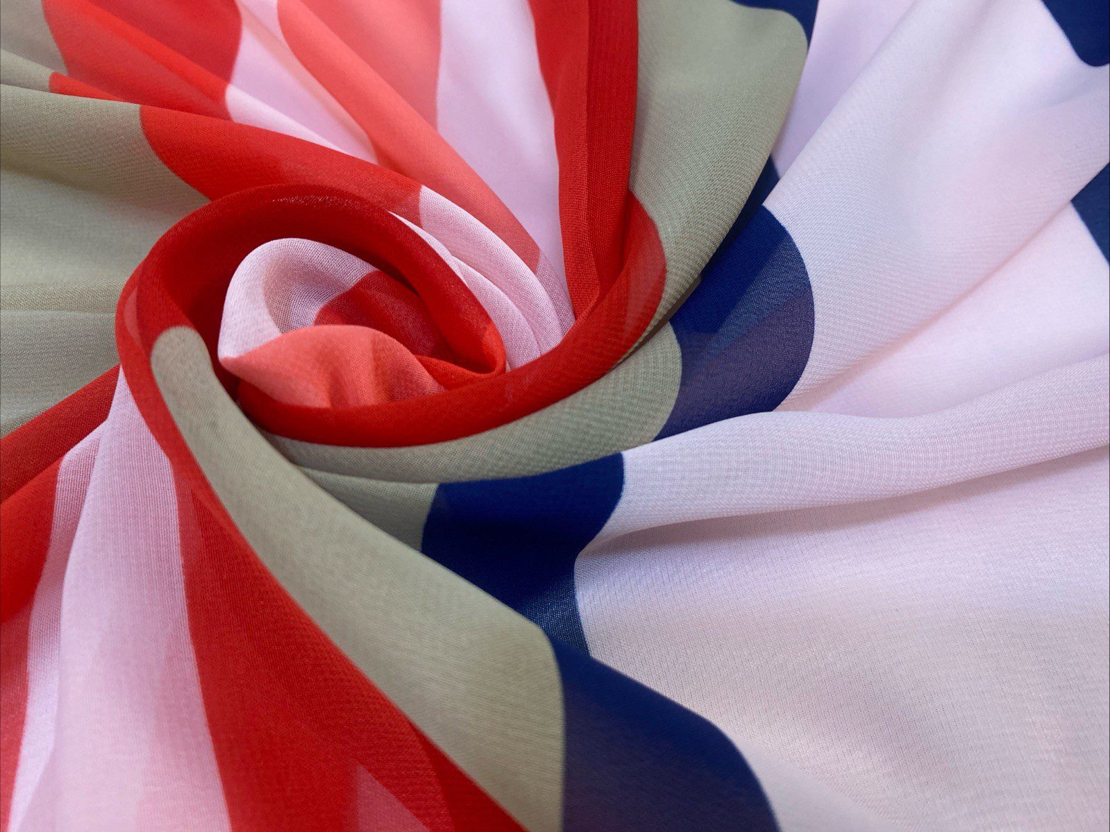 This beautiful chiffon fabric features a stylish striped print in navy, pink, red, and brown tones. It is ideal for a variety of projects, including a Chiffon Navy Pink Red Brown Stripe Print Fabric Dress/Craft/Curtain. Lightweight and semi-sheer, it drapes beautifully—making it perfect for flowy garments and creative craft projects.