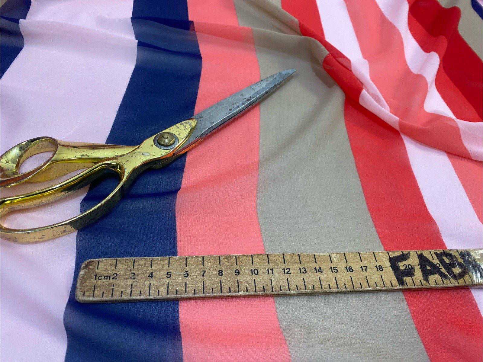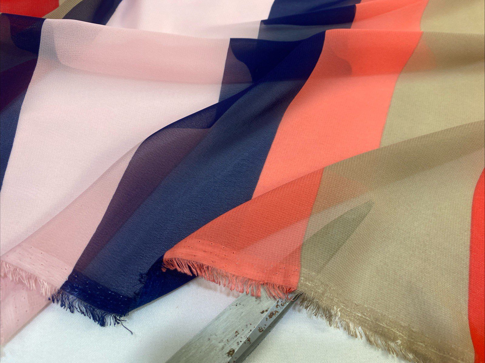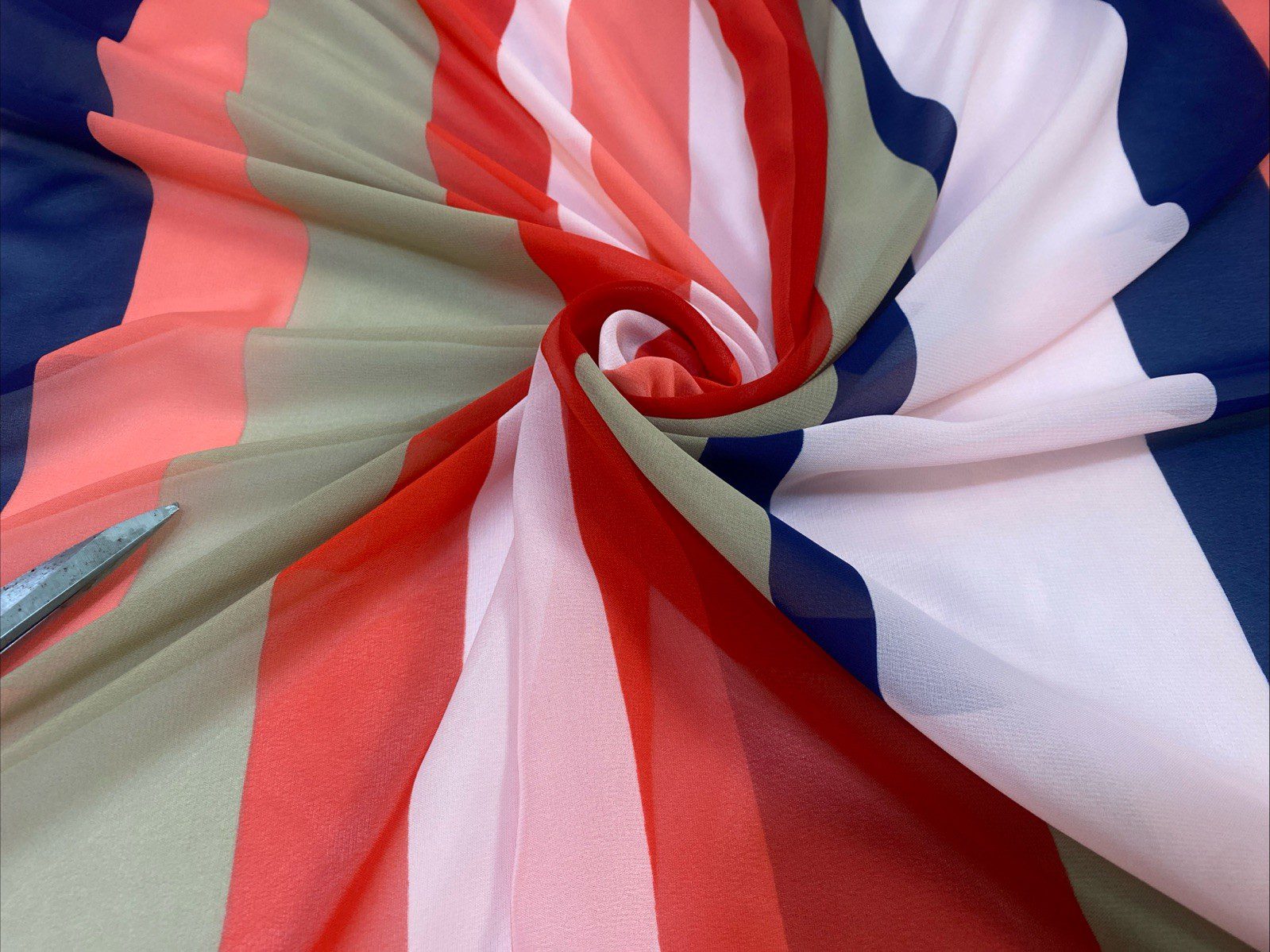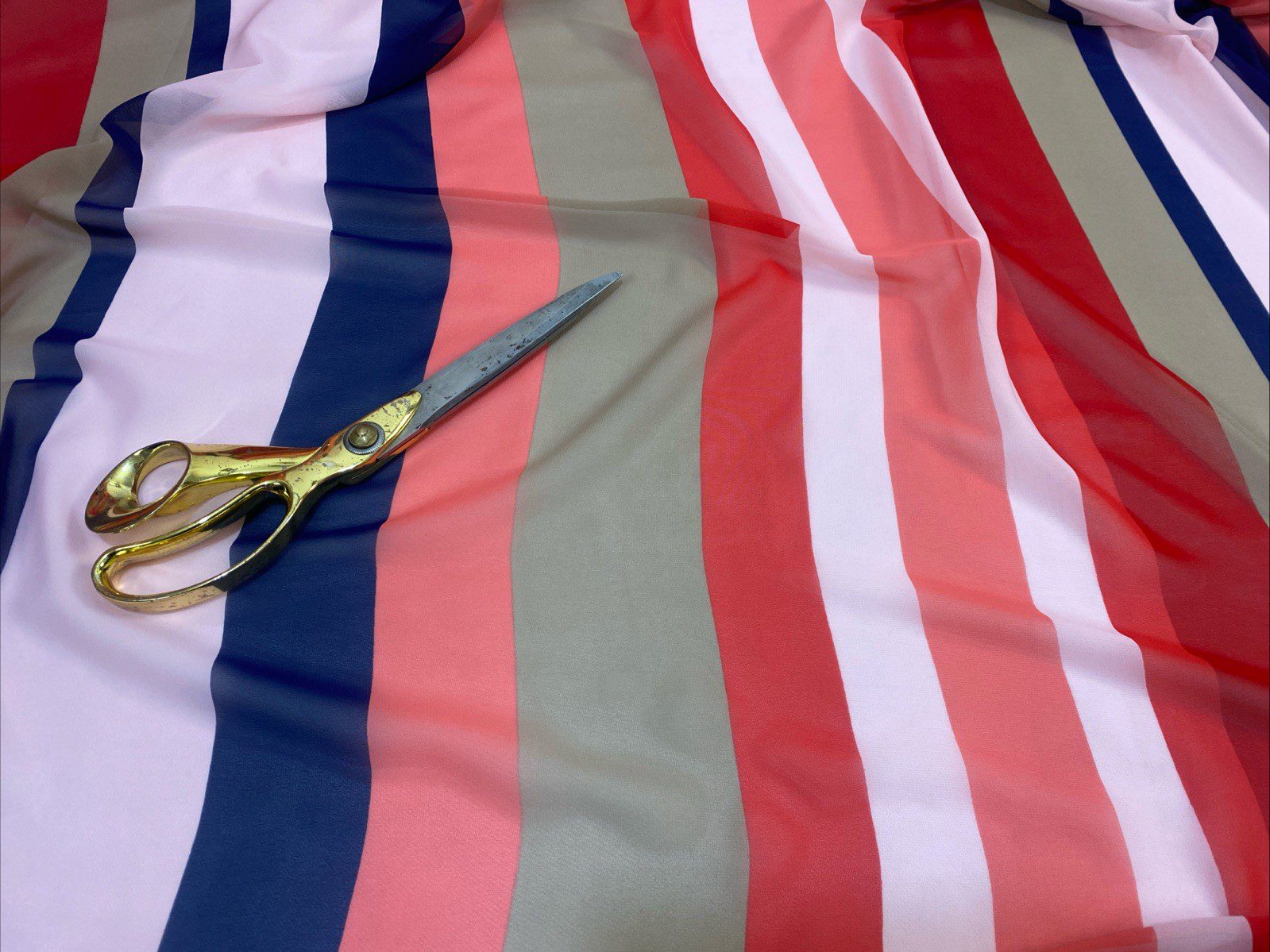 ✨ NEW Chiffon Striped Print Fabric – Navy, Pink, Red & Brown ✨