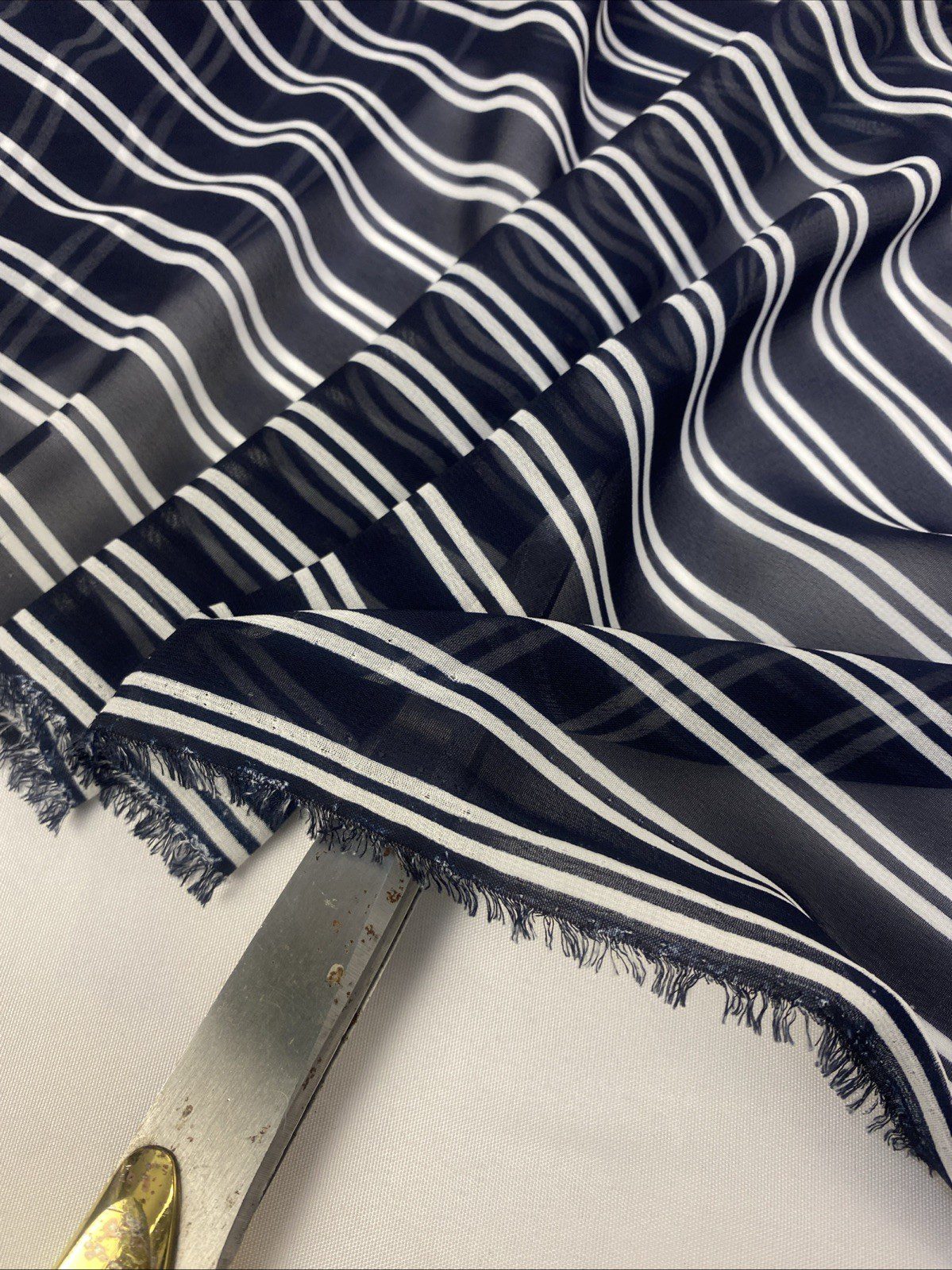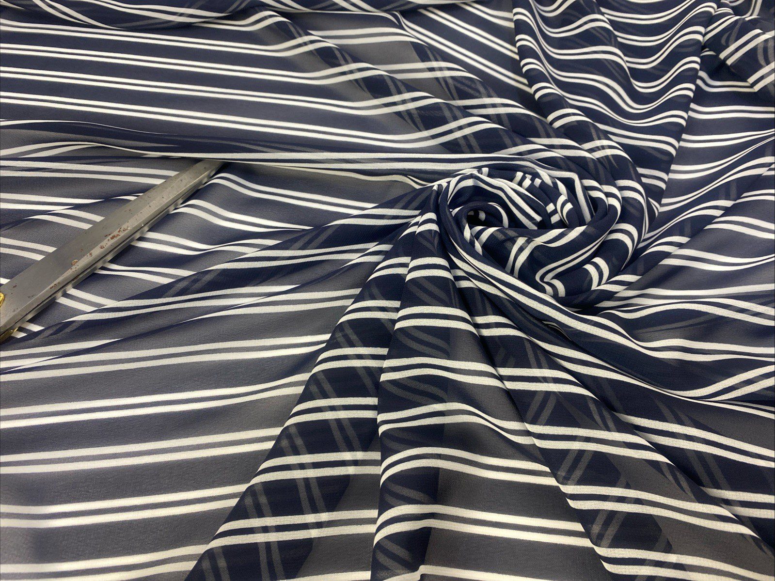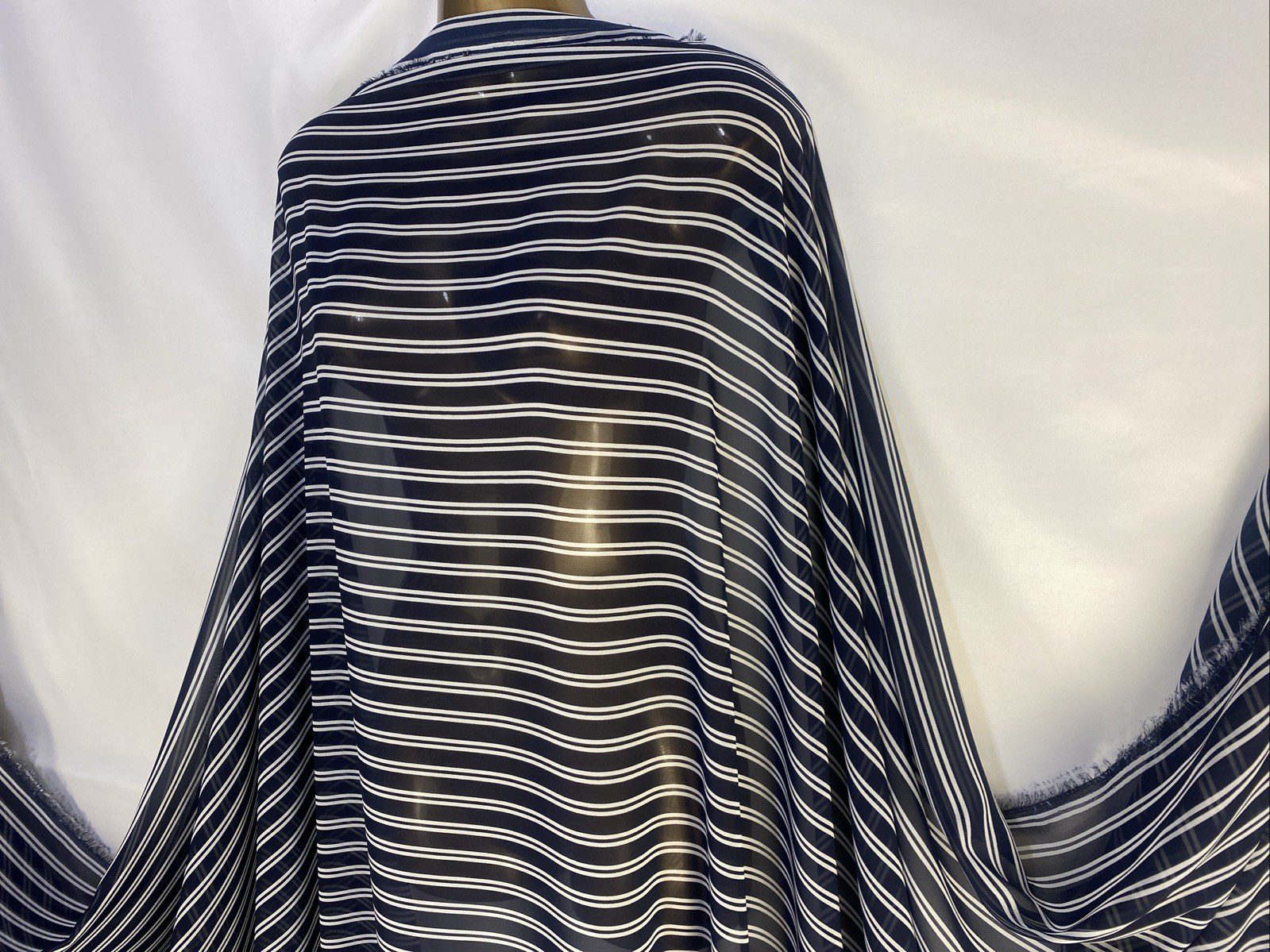 Dark Navy Striped Chiffon Georgette Fabric – Dressmaking/Crafts