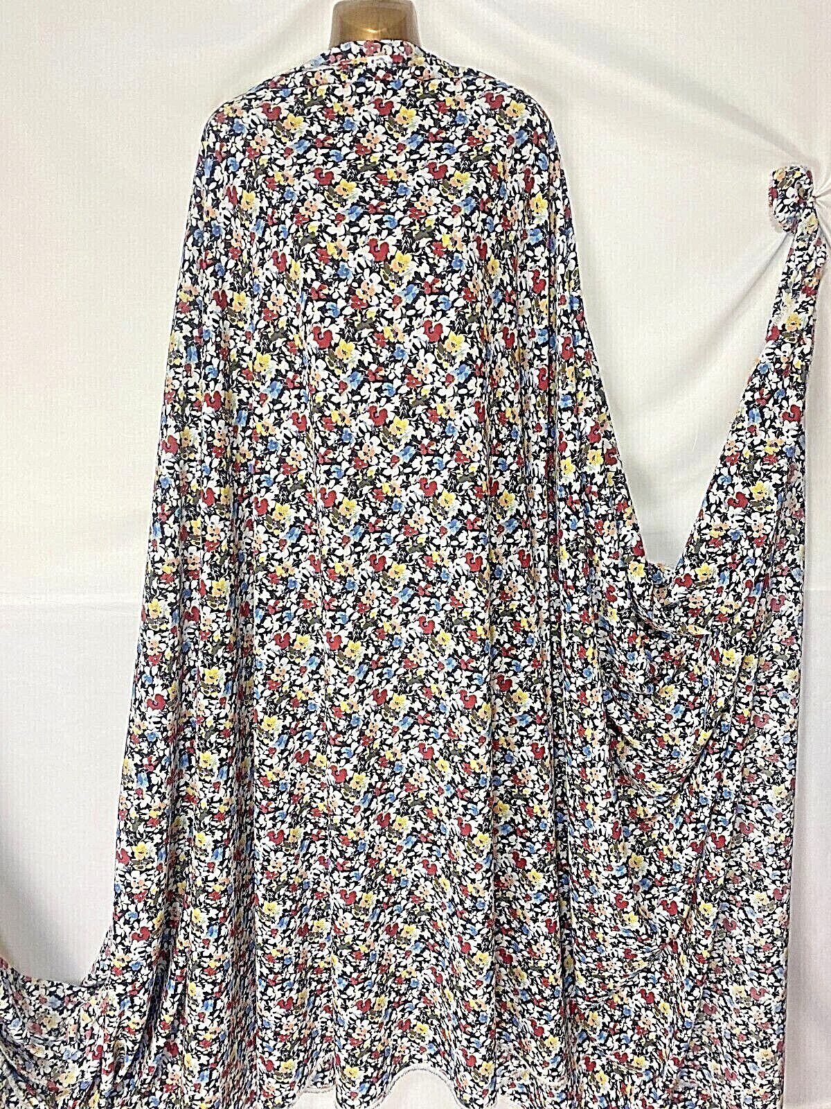Designer Smooth Polyester – Black Base with Multicolour Small Floral Print – Dress Fabric