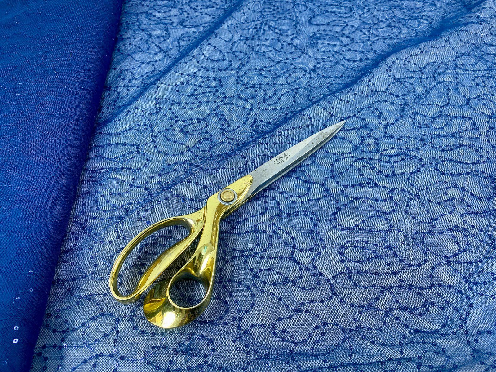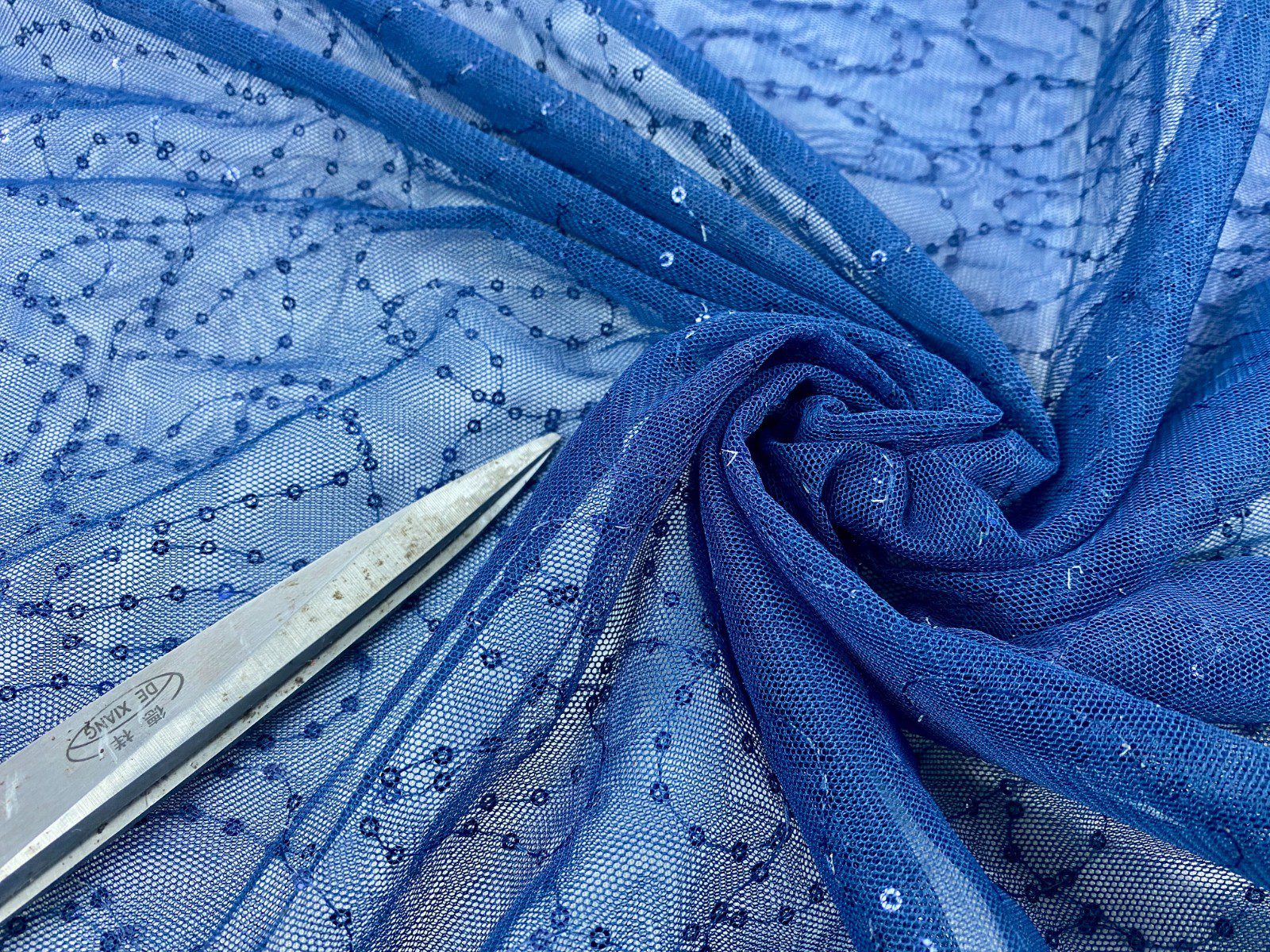 Embroidered Sequined Navy Blue Mesh Net Fabric–Curtain/Stage/Bridal/Costume