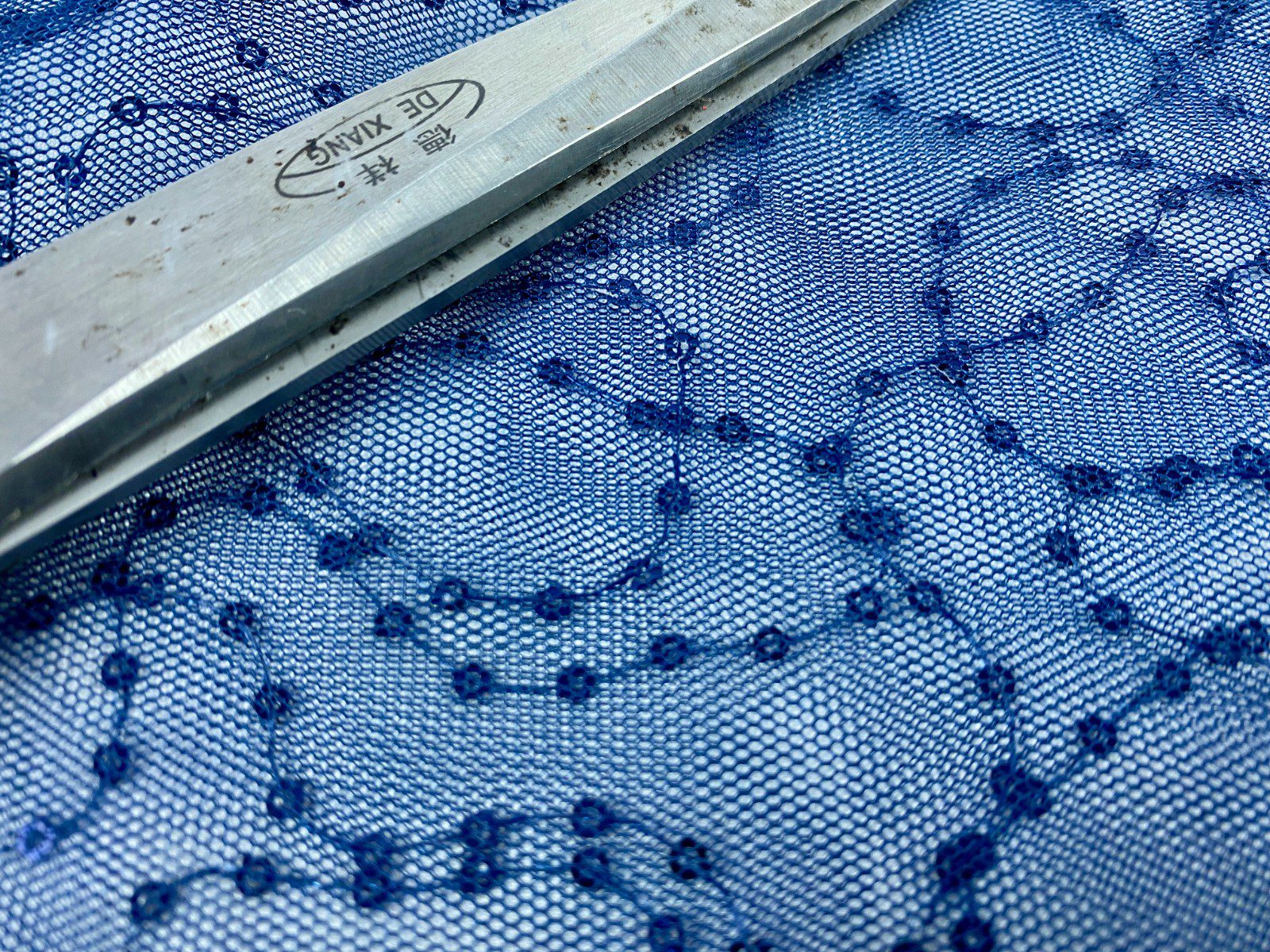 Embroidered Sequined Navy Blue Mesh Net Fabric
