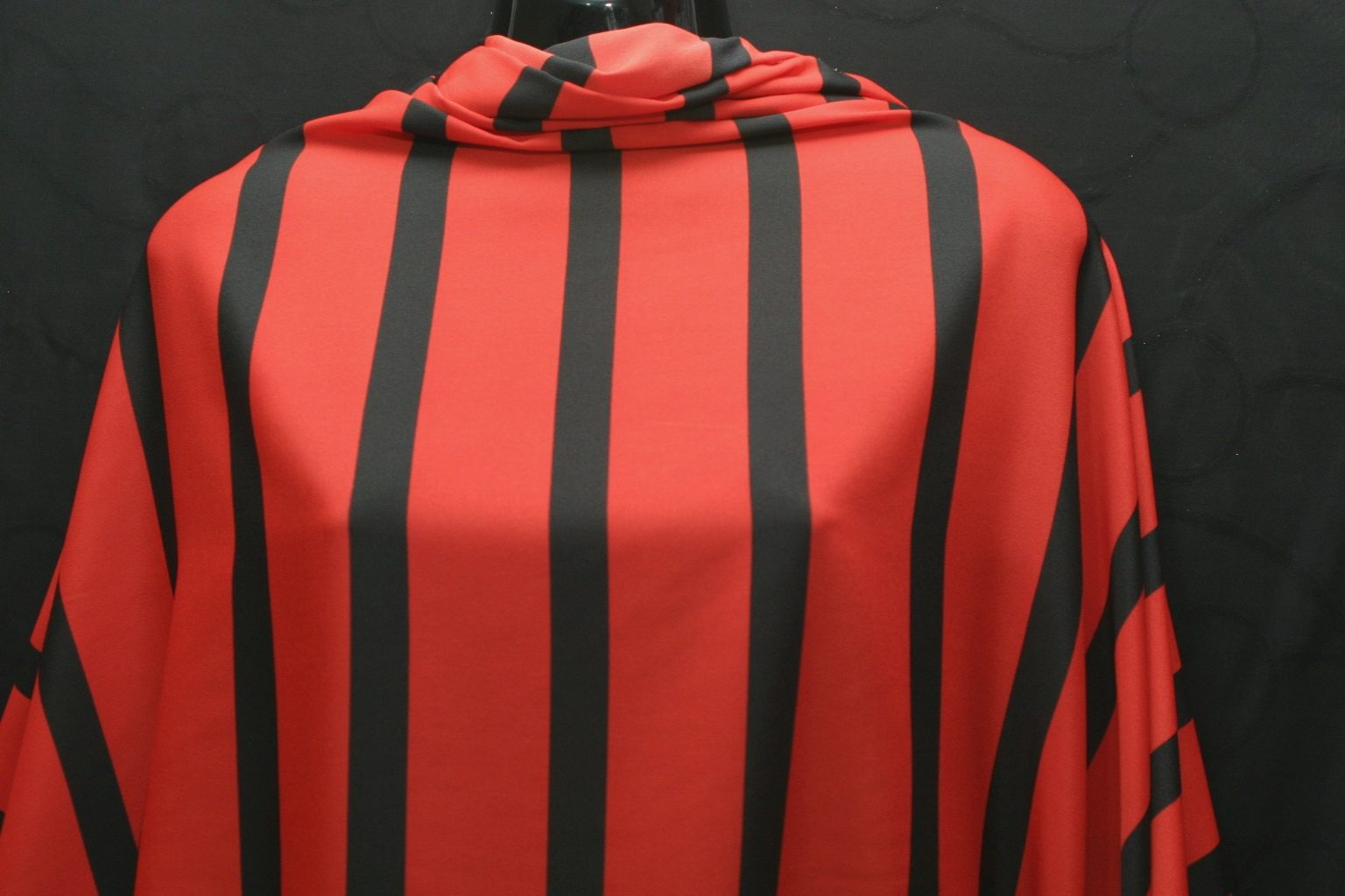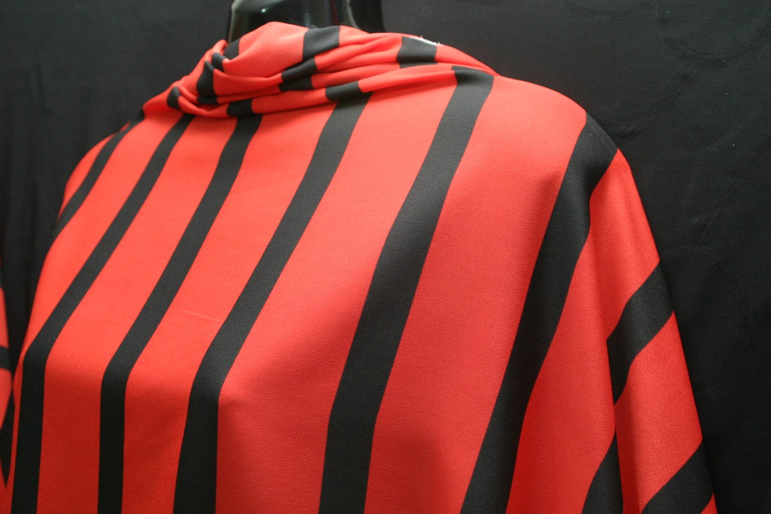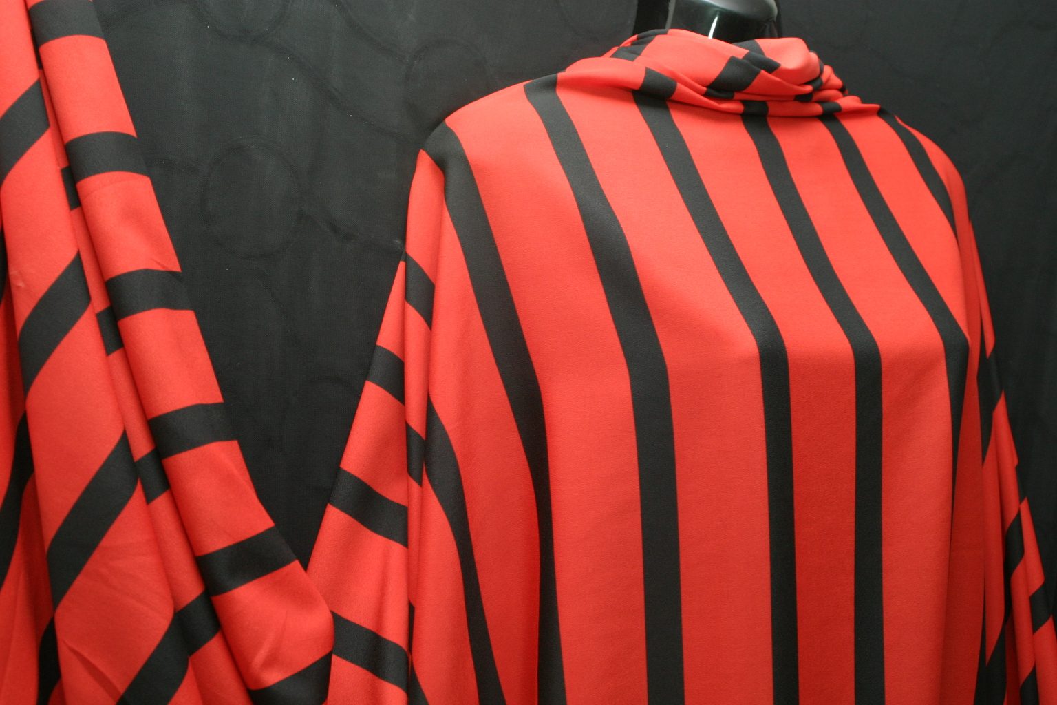 This fine quality crepe de chine fabric features a classic red and black stripe design, perfect for creating fluid, elegant garments. Lightweight with a smooth matte texture and gentle drape, it’s ideal for dresses, blouses, shirts, scarves, and creative craft applications. The subtle crepe texture adds movement and softness while maintaining structure, making it a favorite for both casual and formal wear.