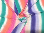 This airy and elegant georgette fabric features a crisp white base with vibrant multicolour vertical stripes, perfect for creating light, breezy dresses, blouses, scarves, and craft accessories. With its semi-sheer texture and fluid drape, it’s ideal for summer wear or layered styles that add movement and colour to your wardrobe or creative projects.