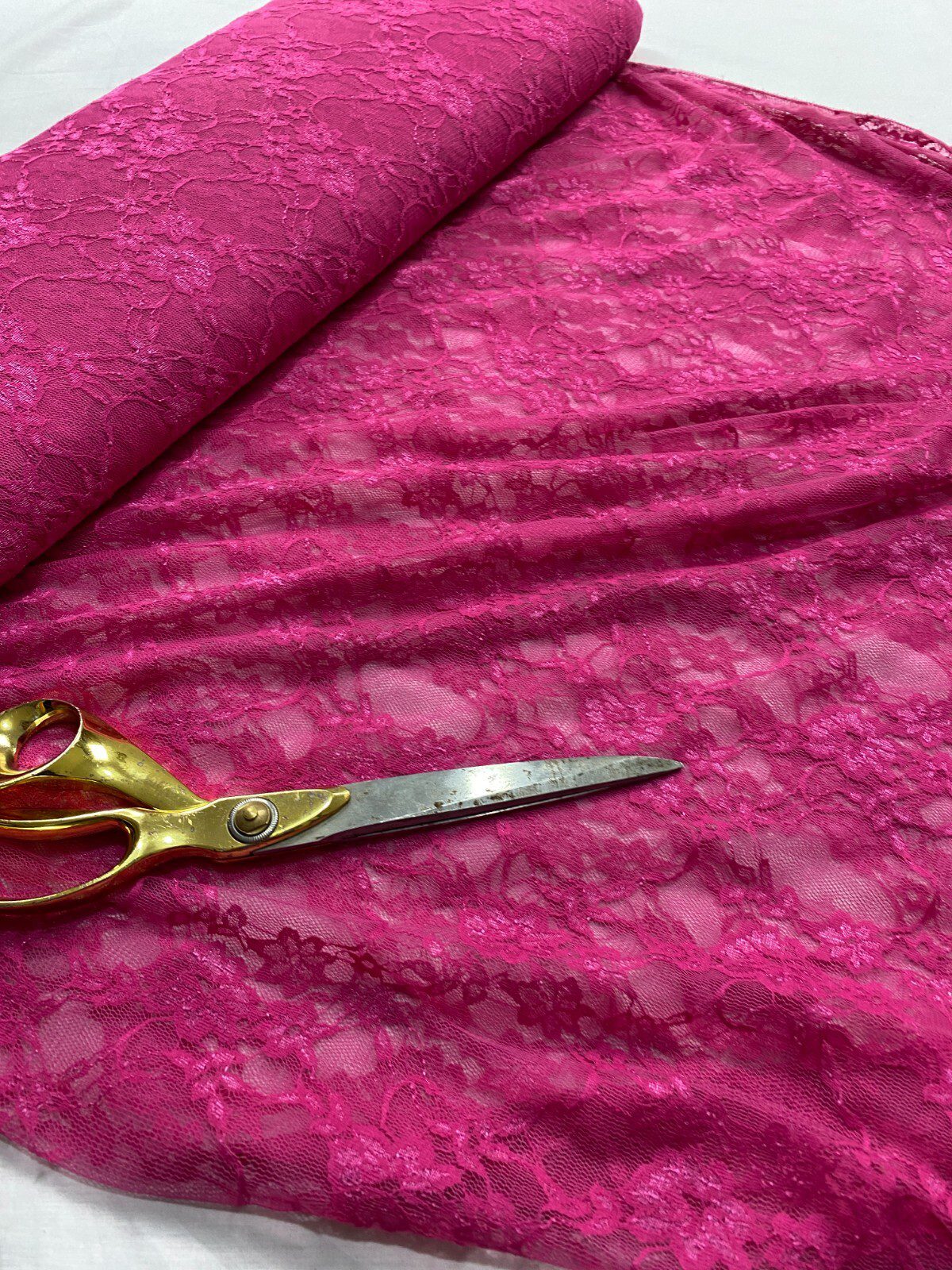 This high-quality lace net fabric is made from a soft and durable nylon-spandex blend, offering both stretch and elegance. With a delicate open-knit structure, it’s ideal for bridal overlays, eveningwear, costumes, and a wide range of craft projects. Its 60” width makes it excellent value for larger garments and layered designs. Lightweight with good recovery, it drapes beautifully while offering comfort and style.