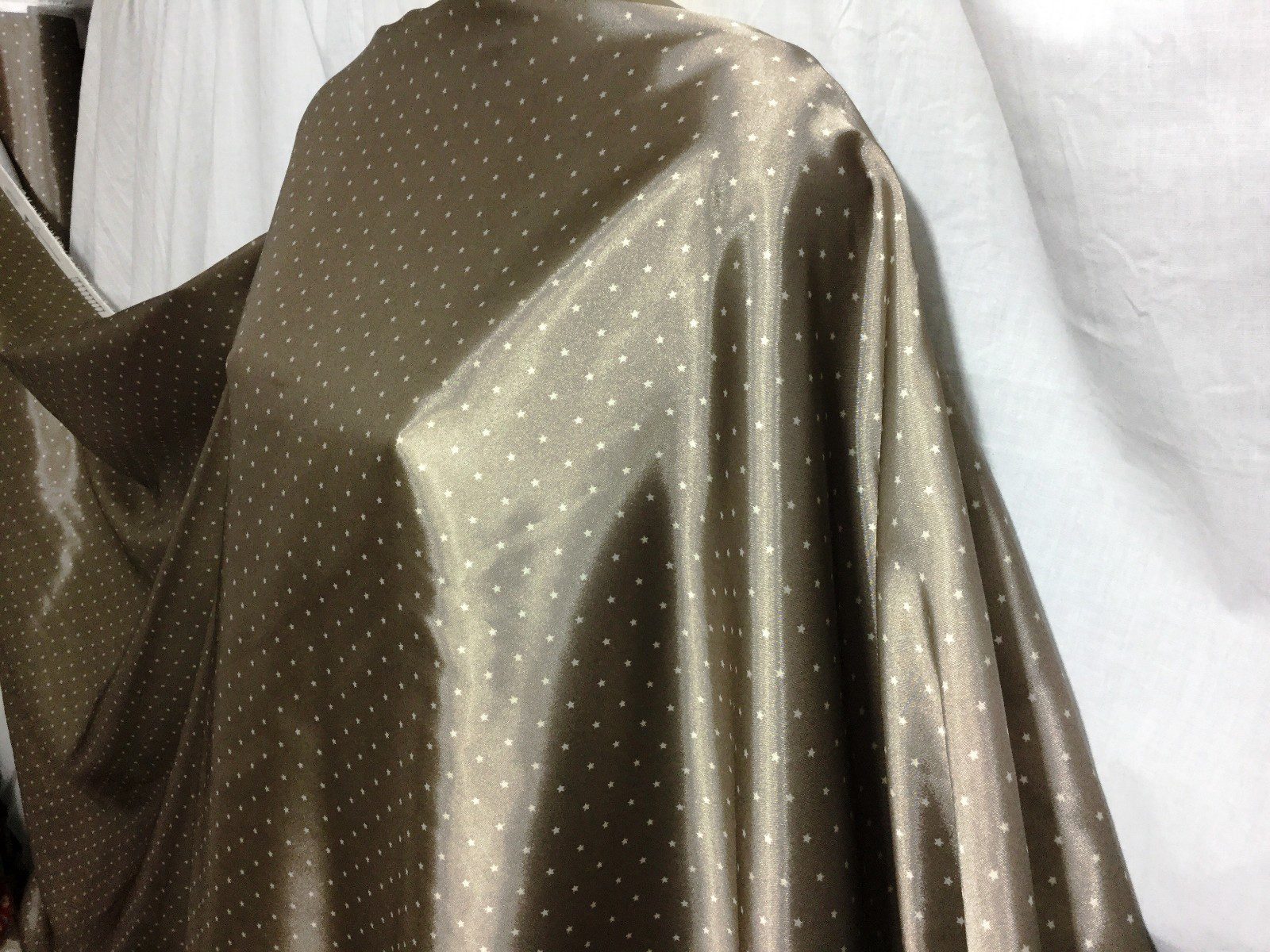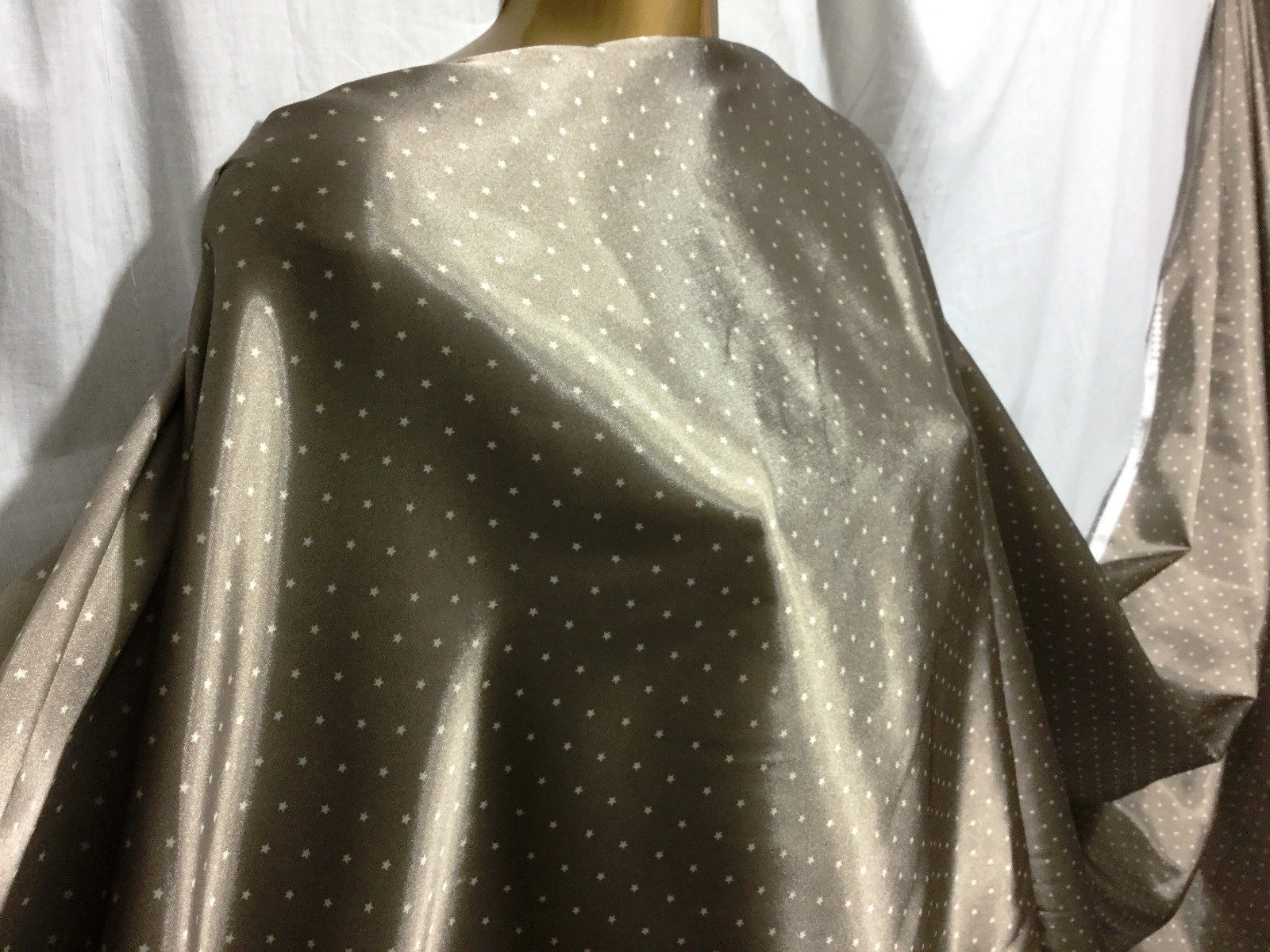 Design: Ivory stars on a taupe satin base