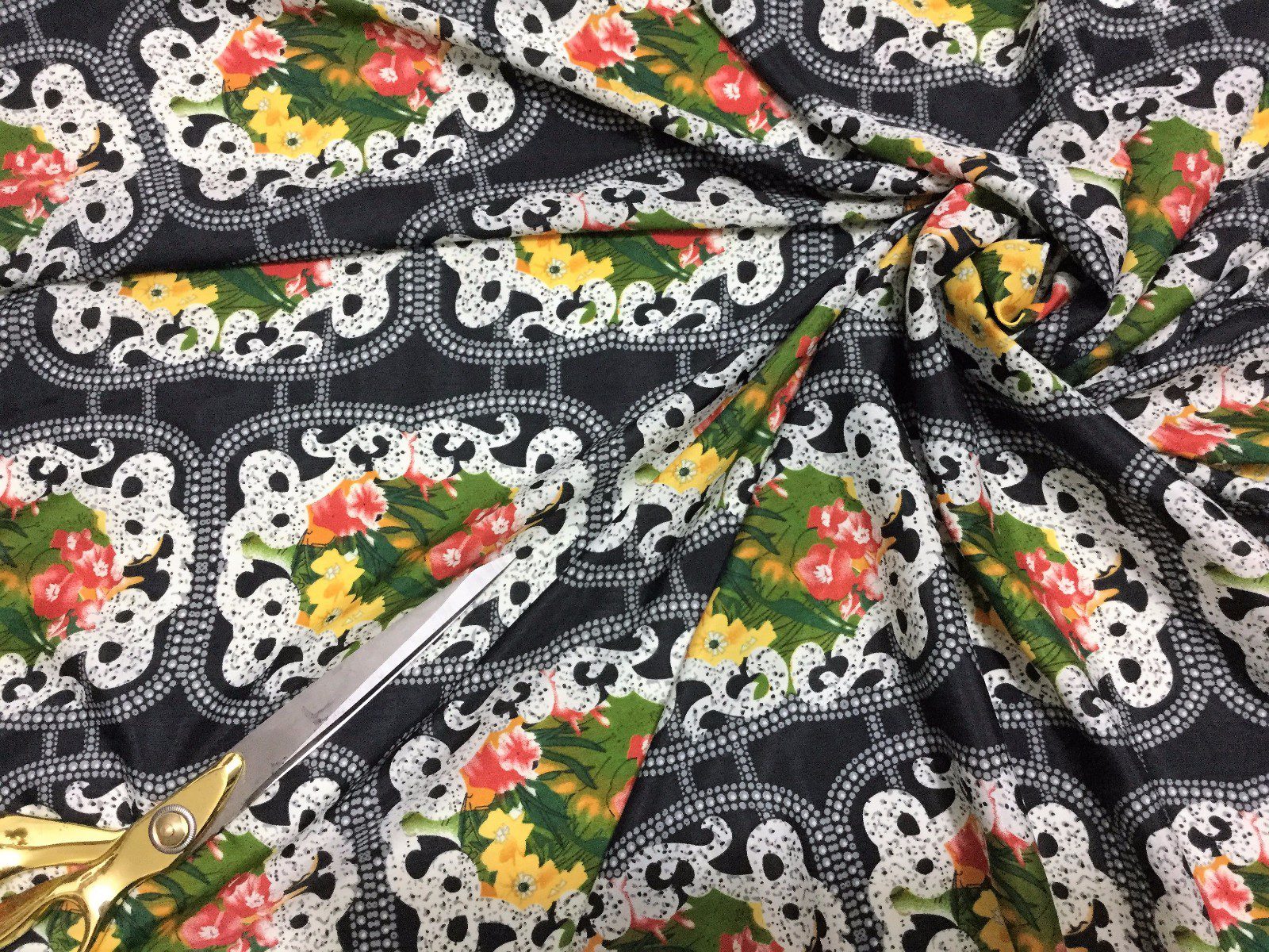 This elegant lightweight polyester fabric features a timeless floral-damask print, blending classic pattern work with soft, breathable comfort. With a smooth finish and fluid drape, it’s ideal for creating dresses, blouses, scarves, and decorative craft projects. Perfect for both everyday wear and special occasion pieces, this fabric offers subtle sophistication and versatility.