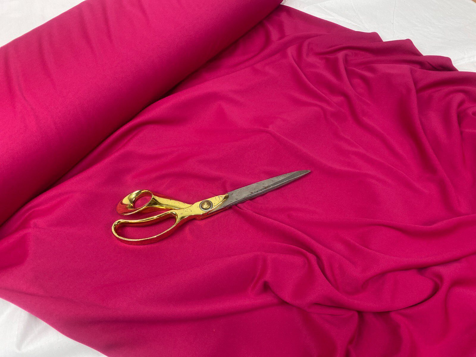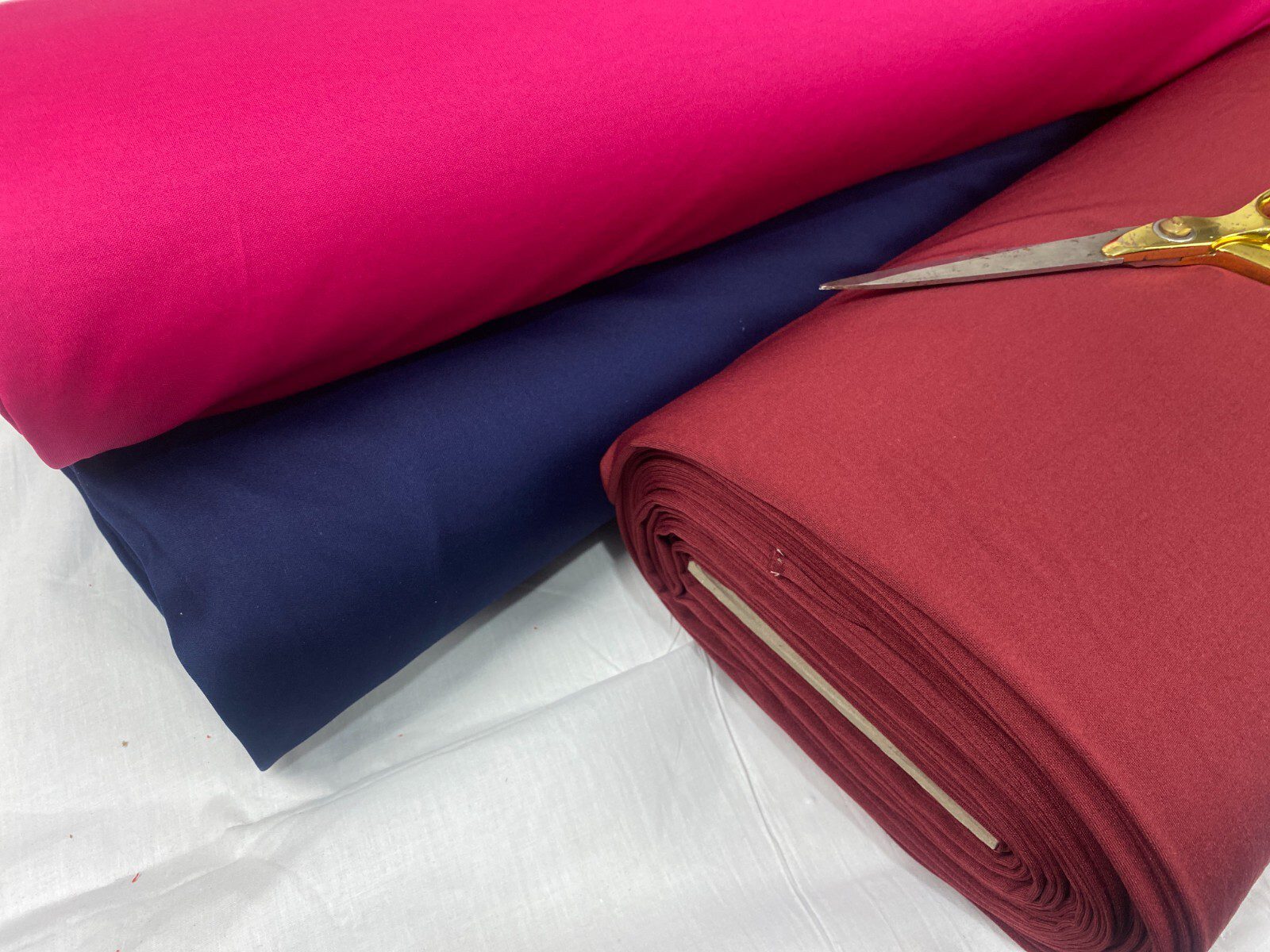 This high-quality stretch polyviscose jersey fabric offers a smooth finish, soft feel, and excellent drape. With just the right amount of stretch, it’s ideal for comfortable, close-fitting garments and versatile craft uses. Available in stunning solid colours including Navy Blue, Bright Pink, and Maroon, this fabric is perfect for both casual and statement pieces.