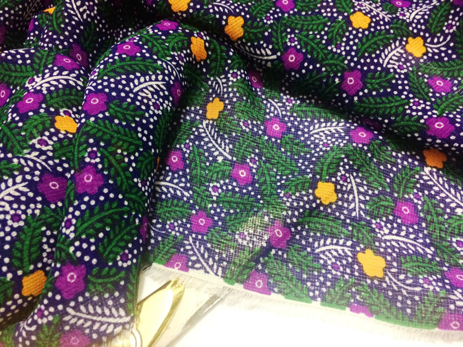 This vibrant crinkle georgette fabric showcases a bold multi-colour floral African-inspired print, perfect for creating eye-catching dresses, tops, scarves, and expressive craft projects. The lightweight fabric has a soft crinkled texture and beautiful drape, making it ideal for warm-weather wear or layering. A standout choice for fashion and creative sewing.