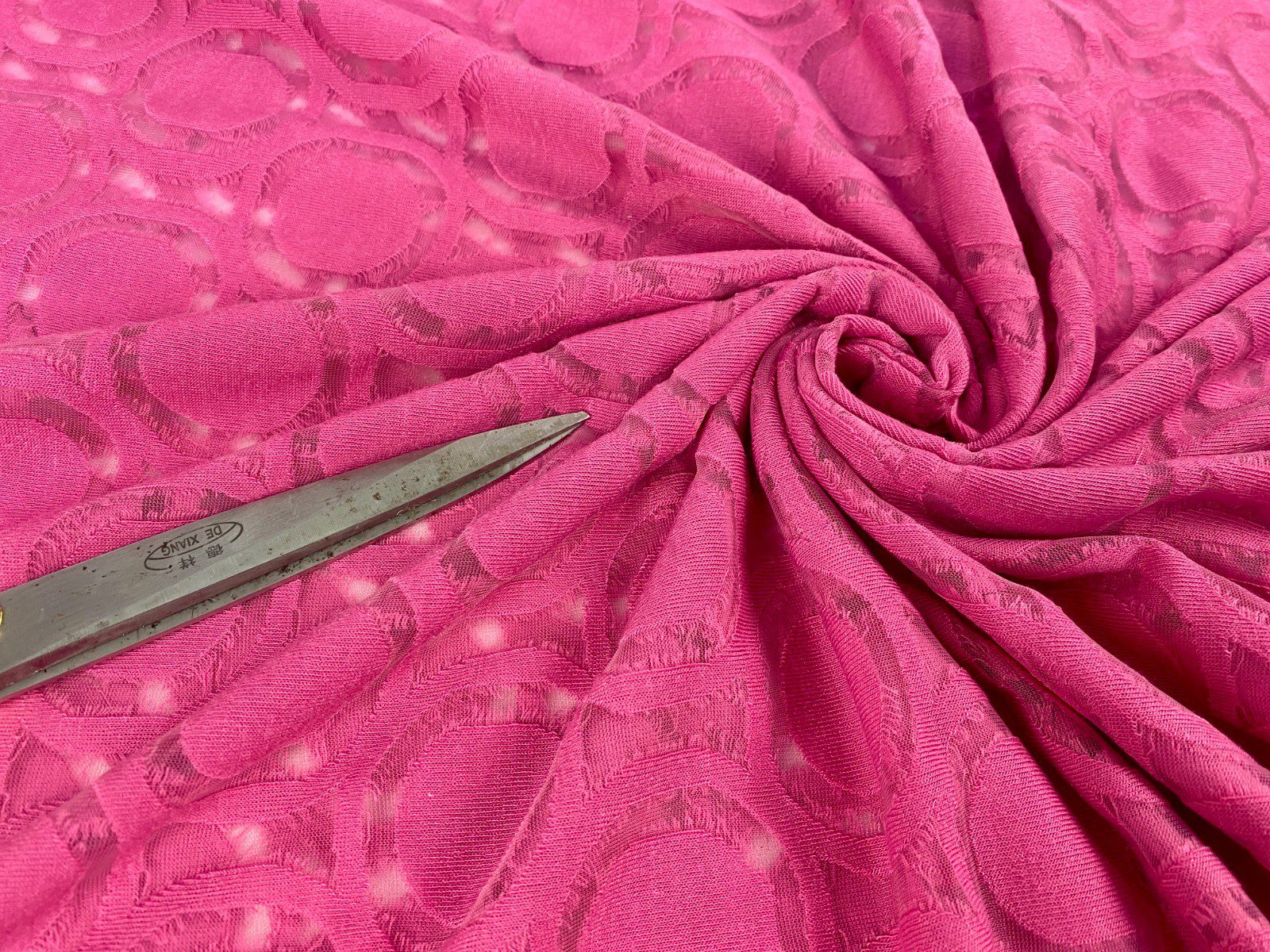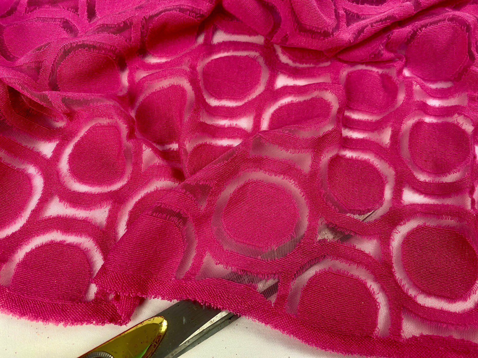 Fuschia Pink Stretch Burnout Circles Devore Bridal/Craft/Dress Fabric