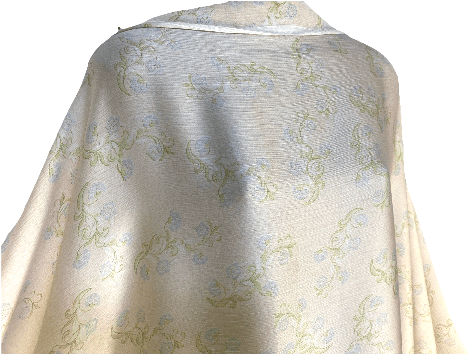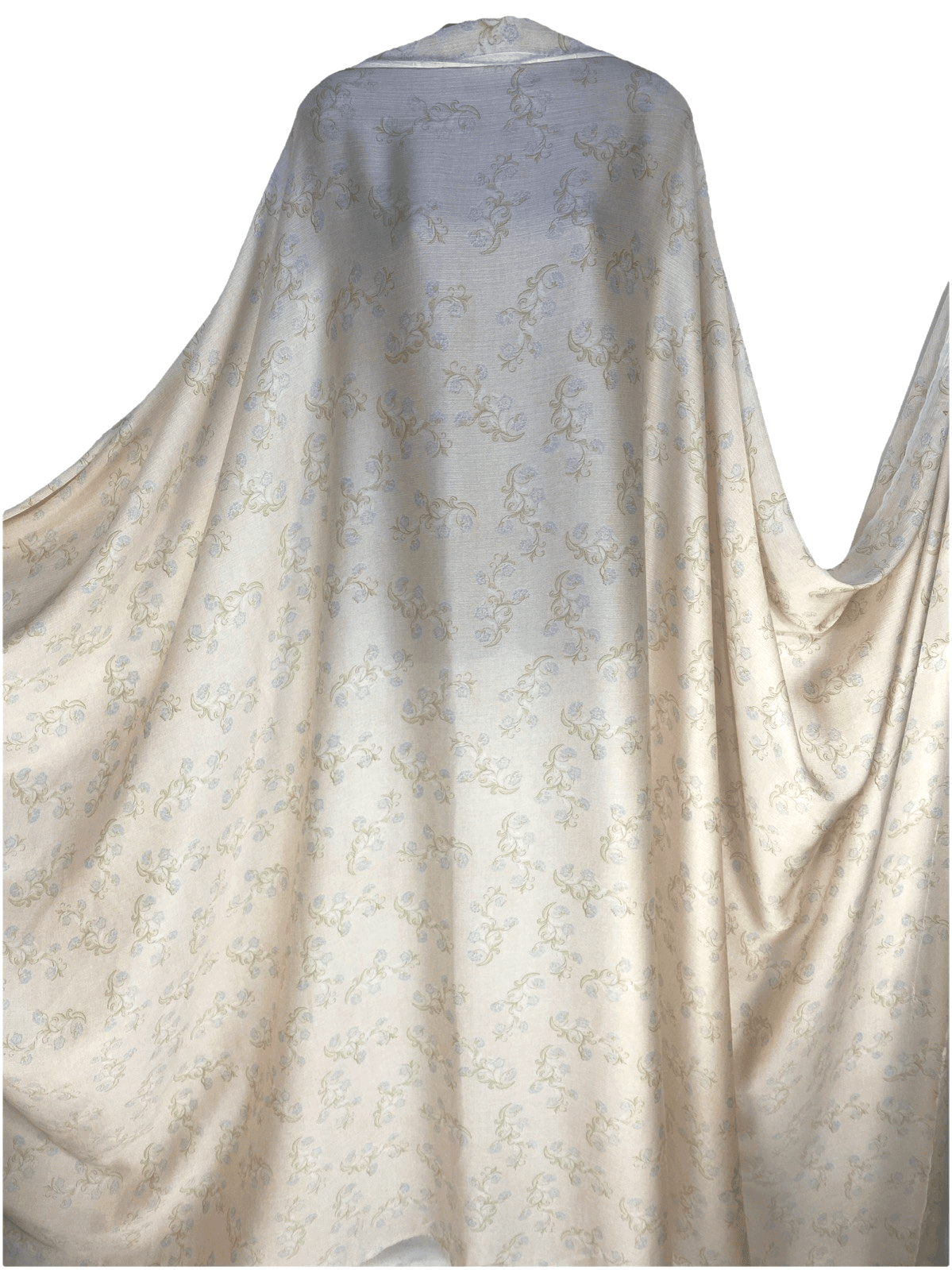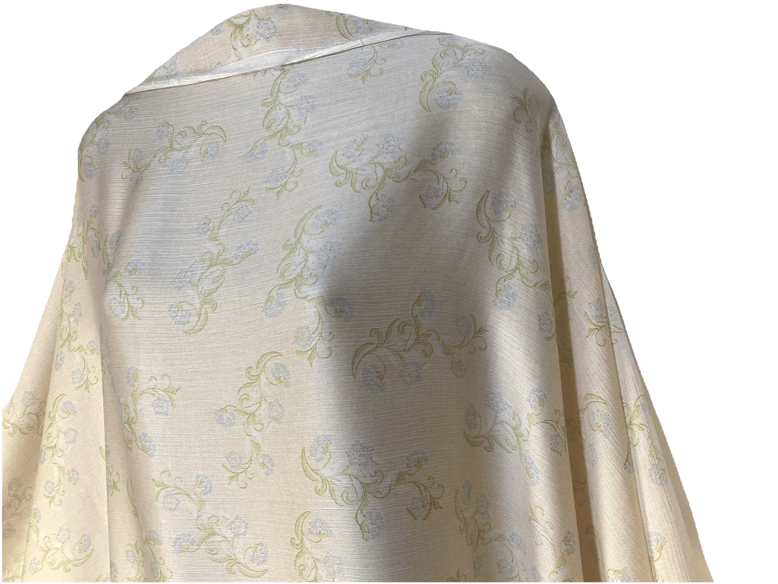 Add a breezy, elegant touch to your next sewing project with this stunning crinkle polyester fabric, perfect for summer dresses, skirts, blouses, and more. Featuring a soft pale peach background with delicate blue and green floral print, this lightweight fabric drapes beautifully and is easy to care for.