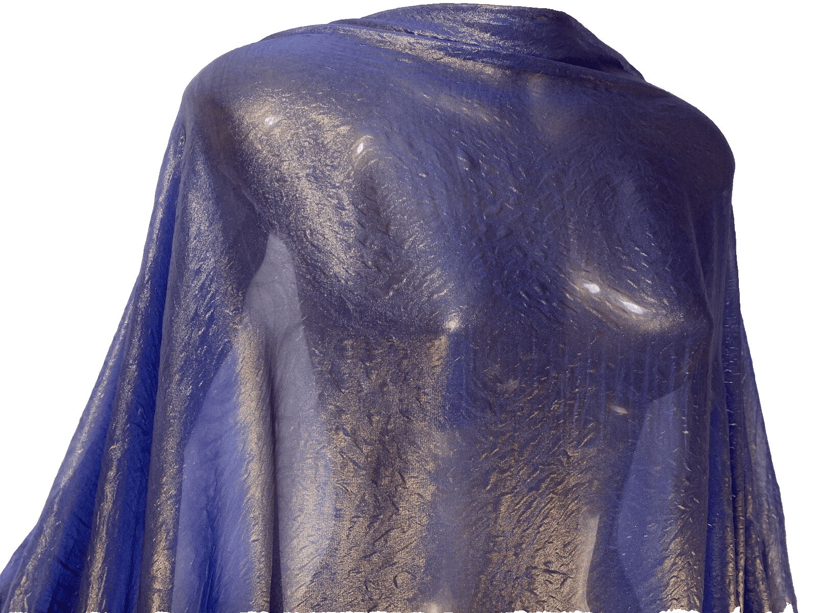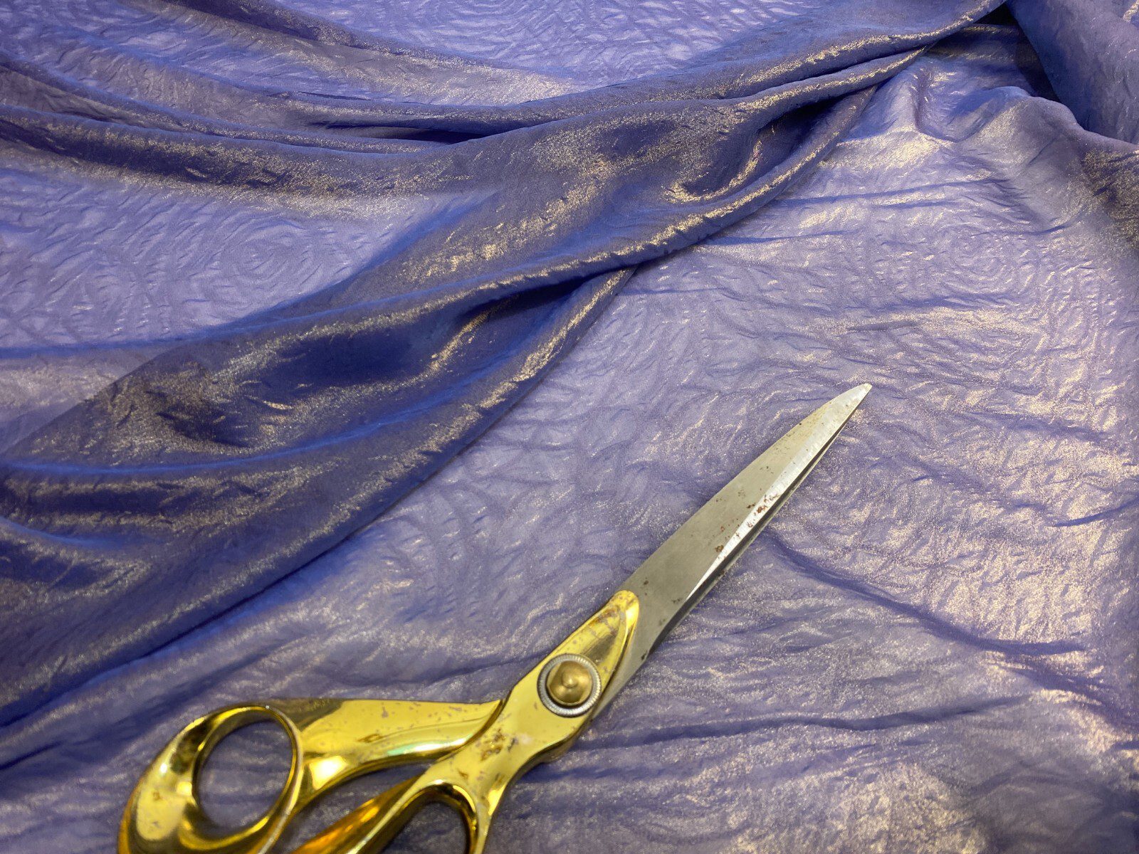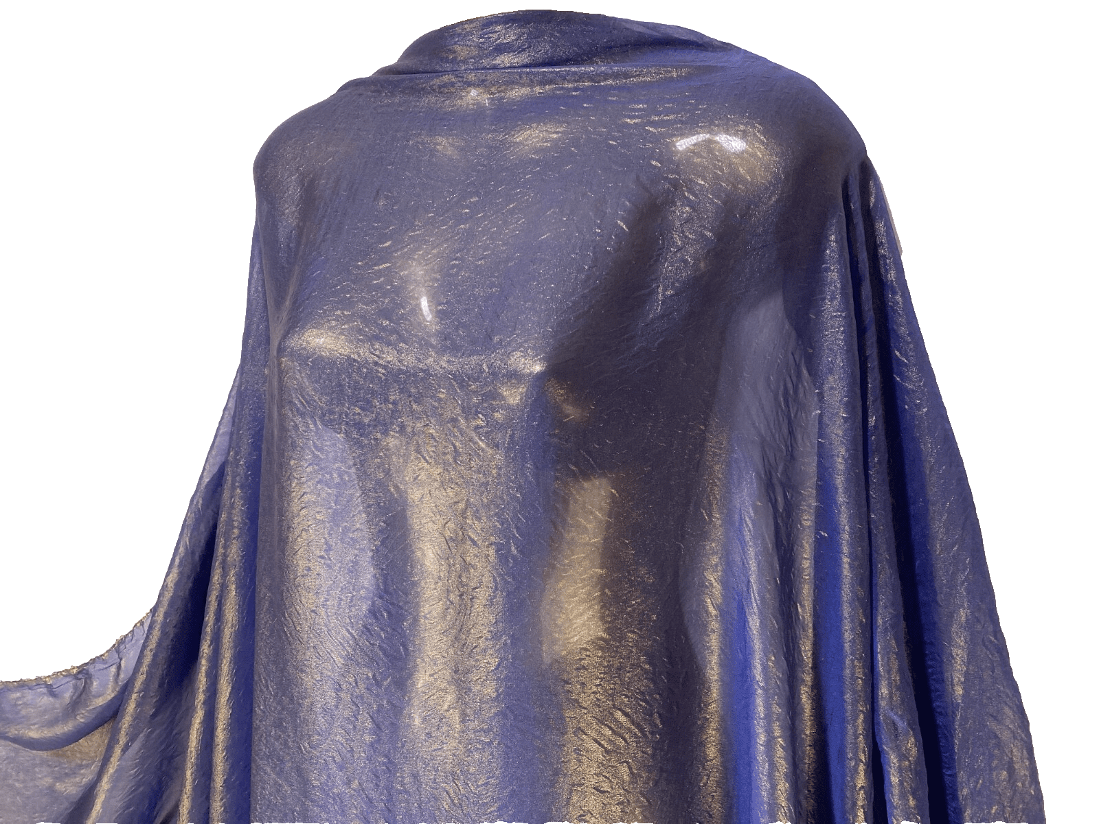Add luxury and shimmer to your creations with this eye-catching Two Tone Crushed Chiffon Fabric. Featuring a unique purple and gold iridescent sheen, this lightweight material shimmers beautifully as it moves, making it ideal for eveningwear, bridal accents, scarves, draping, crafts, and more.