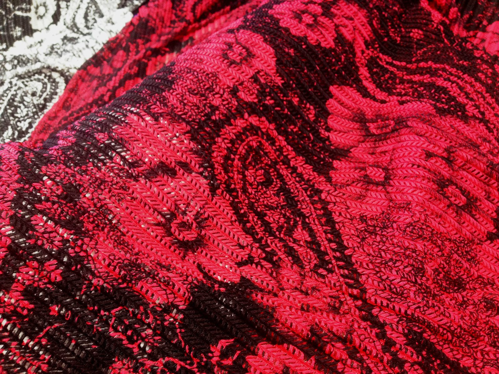 This designer-quality stretch jersey lace fabric features an intricate floral and paisley crochet-style pattern, offering both elegance and flexibility. Made with a soft, stretchy base, it’s ideal for figure-hugging dresses, tops, eveningwear, bridal accents, and craft projects. The open lace design adds texture and breathability, while the built-in stretch ensures comfort and ease of movement.