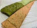 This is a designer fabric with beautiful stitched on With Sequinned Floral Design.