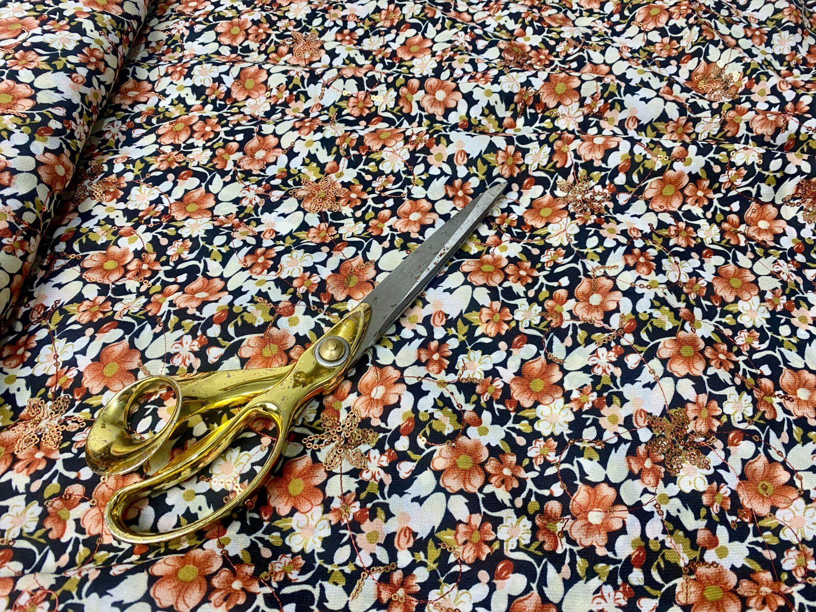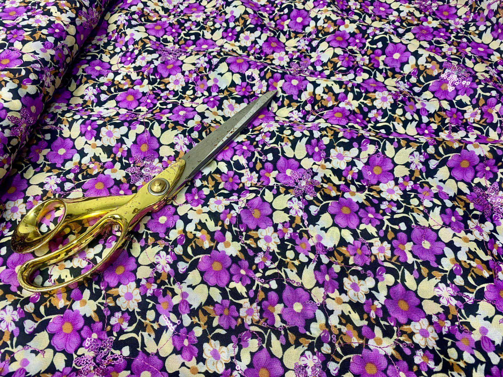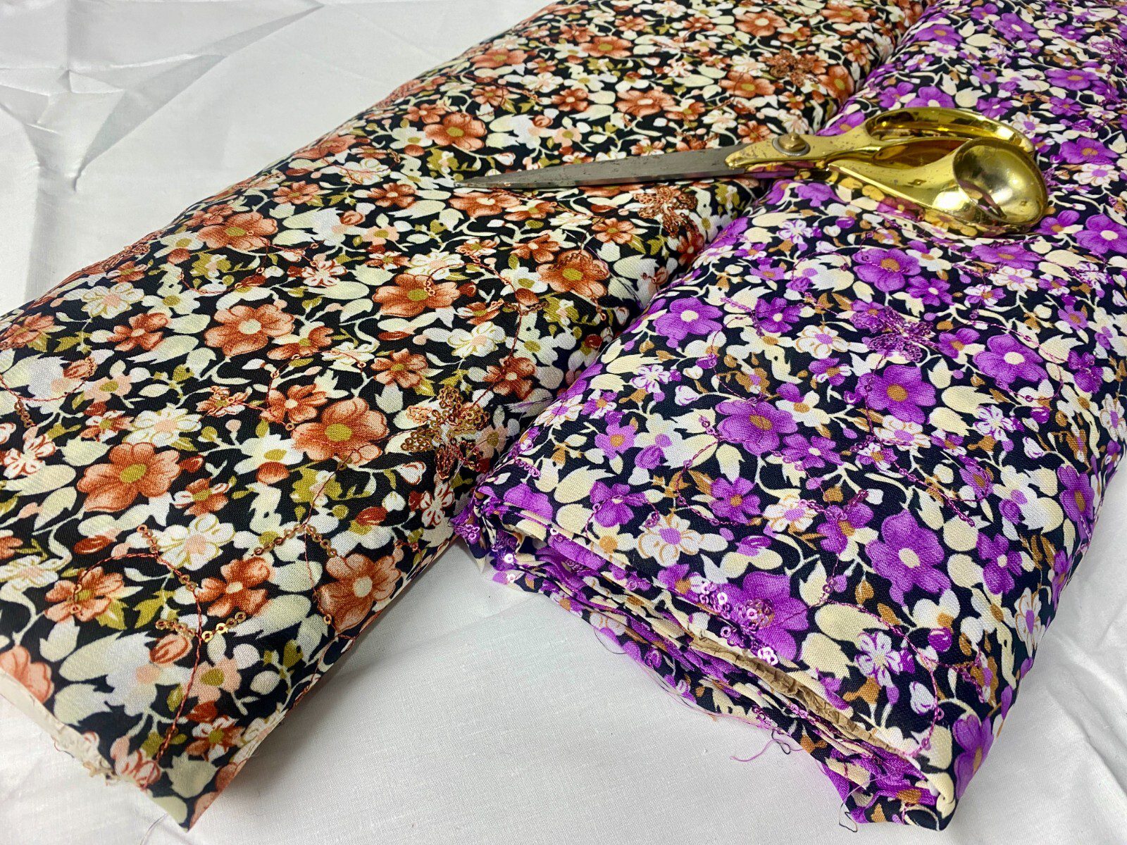 Sequinned Embroided Floral Poly Cotton Dress/Crafts Fabric