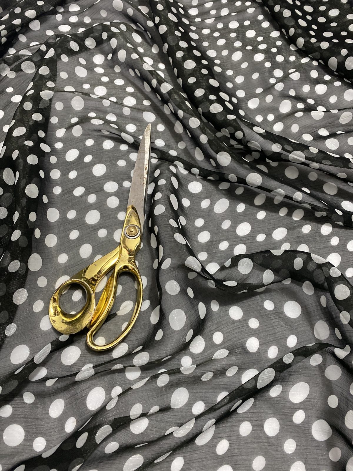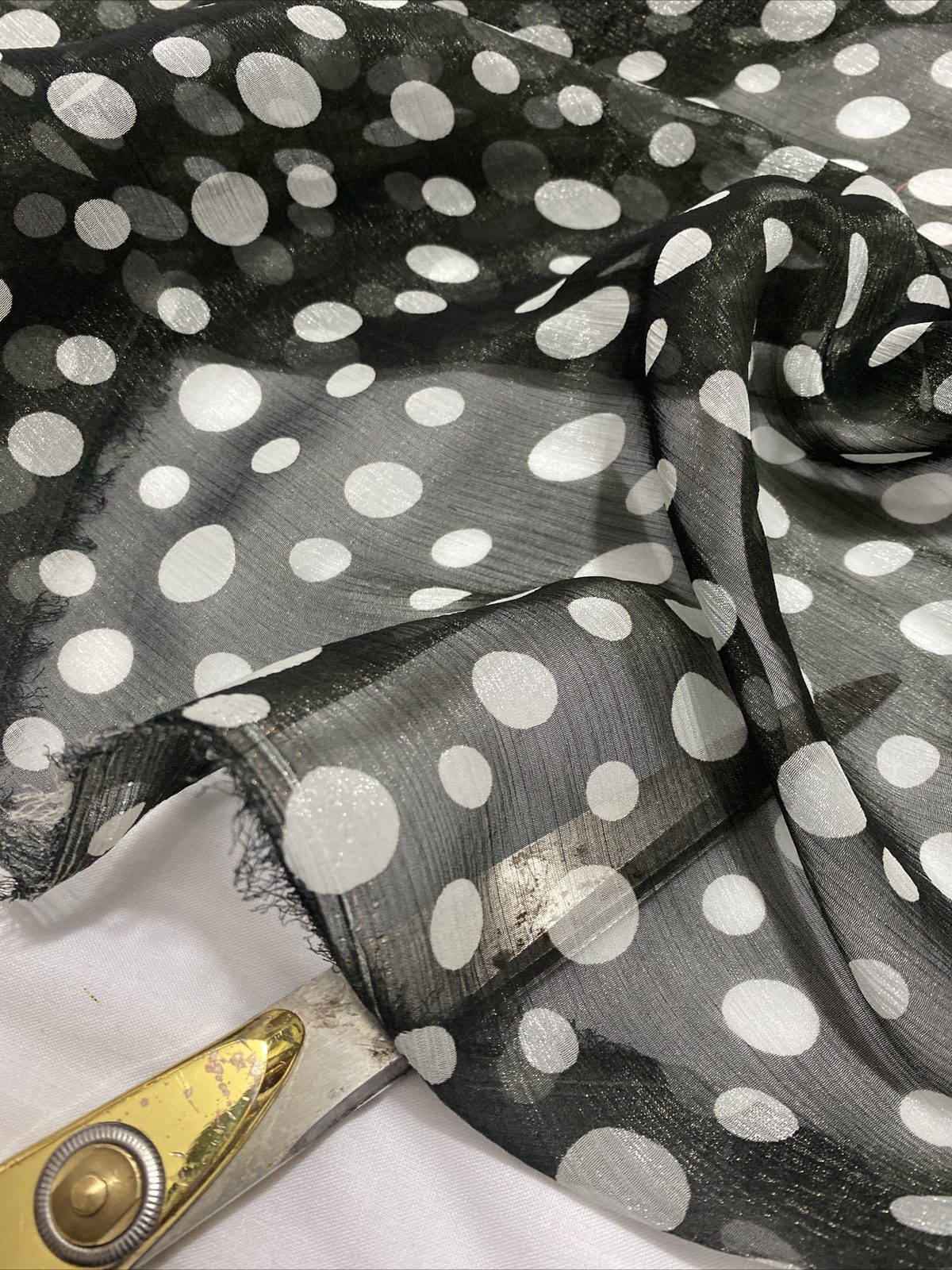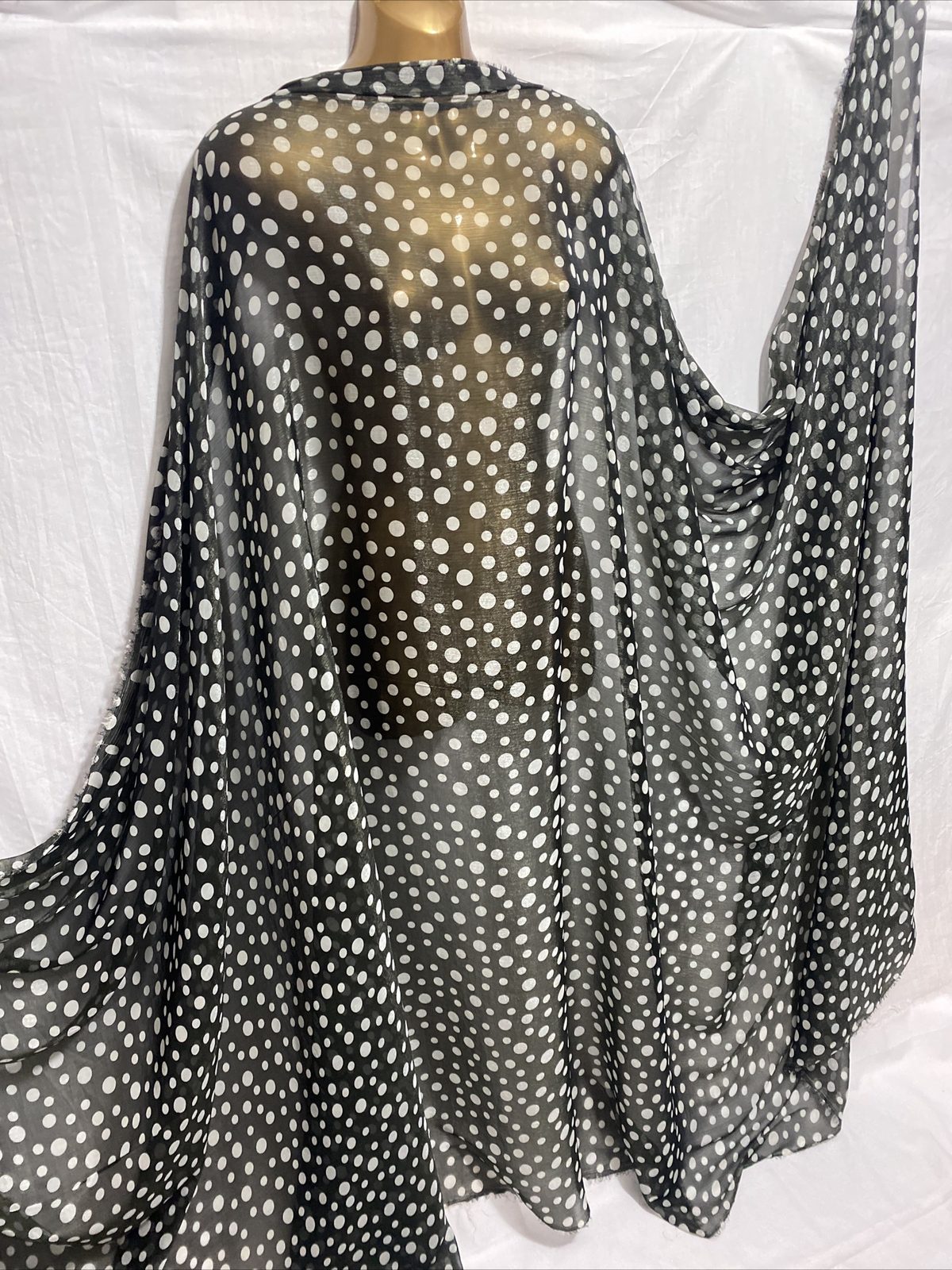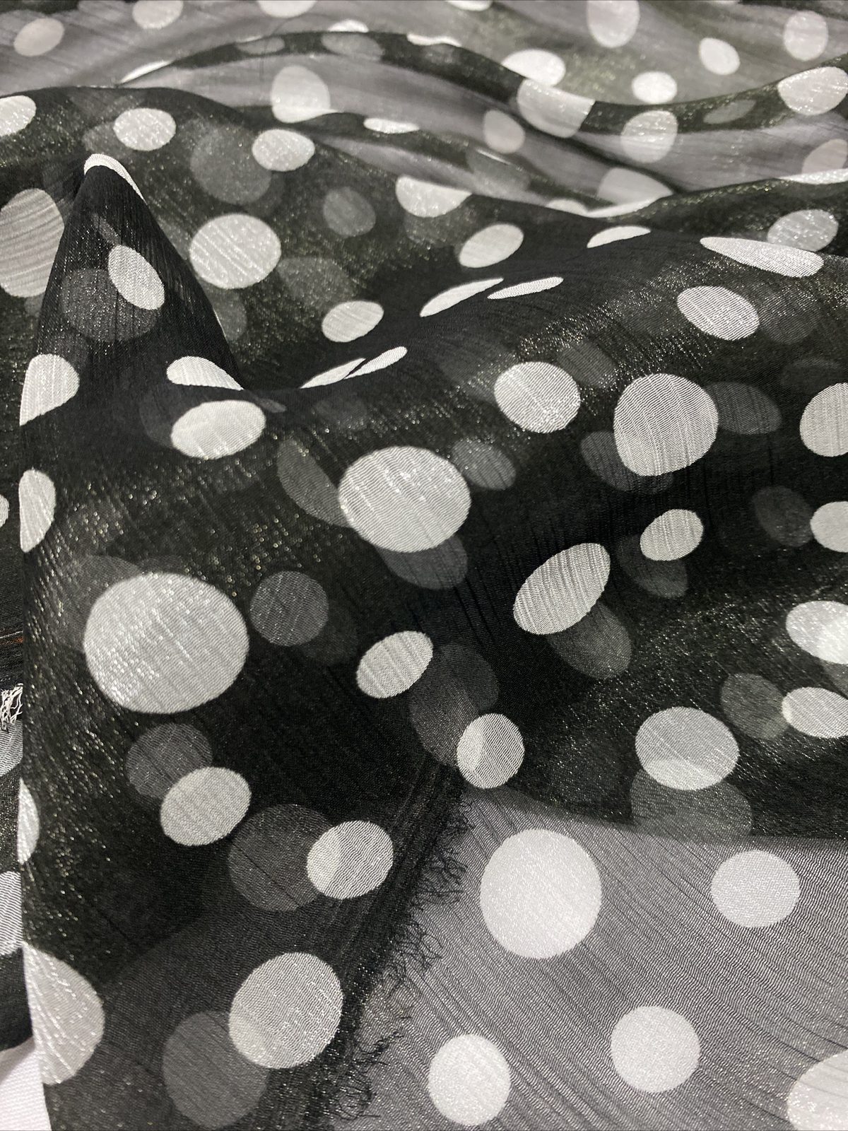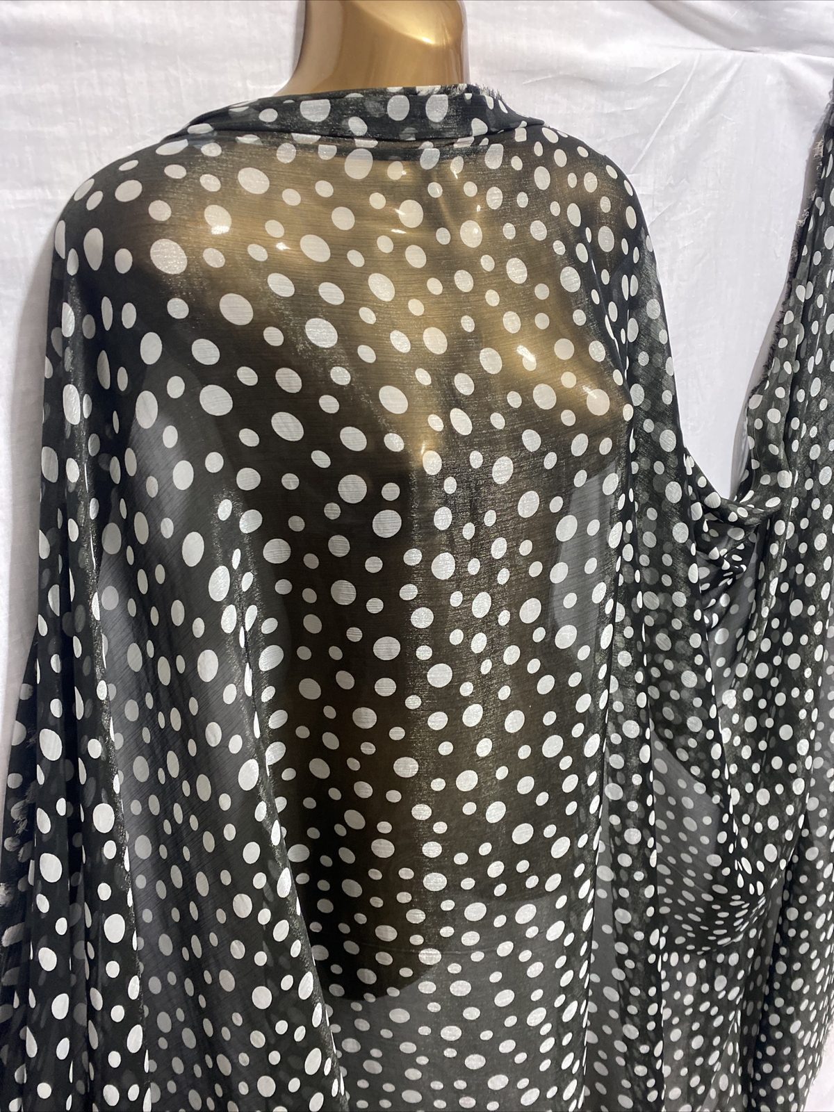 This elegant silky chiffon organza fabric features a soft and stylish spotted print, perfect for both fashion and interior uses. Lightweight and semi-sheer with a crisp, airy feel and subtle sheen, it’s ideal for dresses, overlays, scarves, crafts, and light curtains. The combination of shimmer and texture makes it a great choice for decorative and occasion wear.