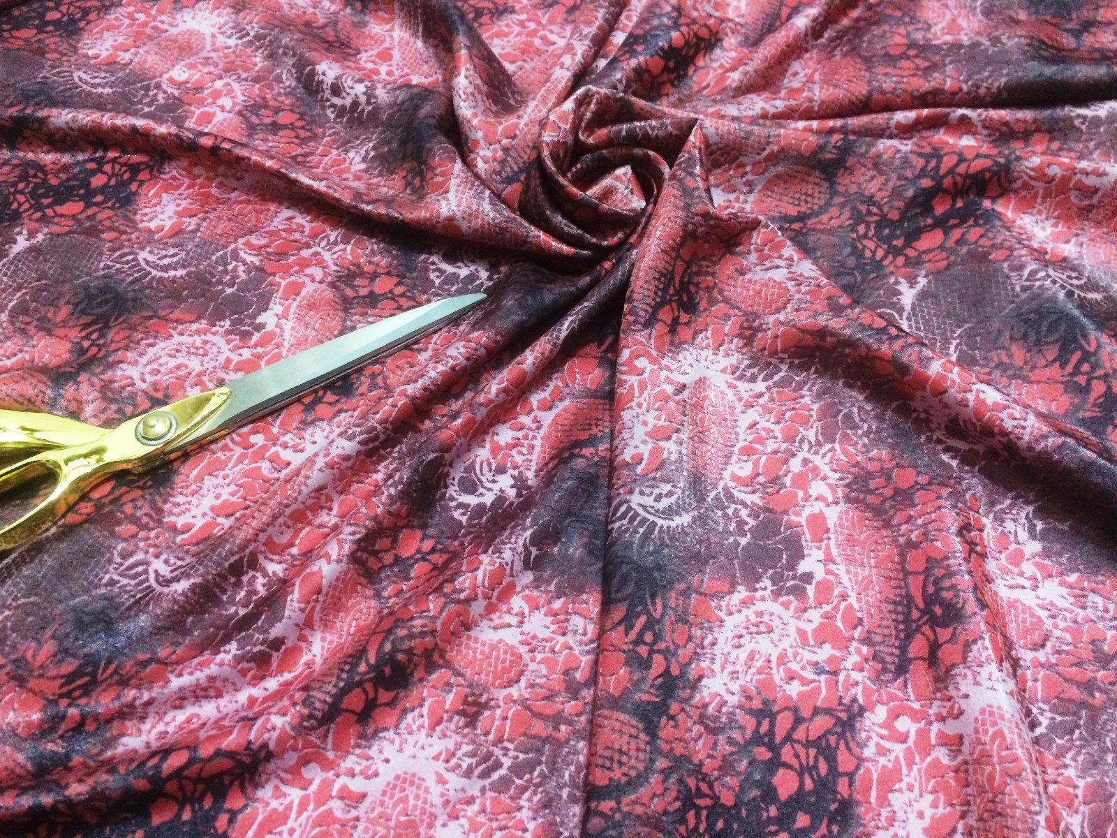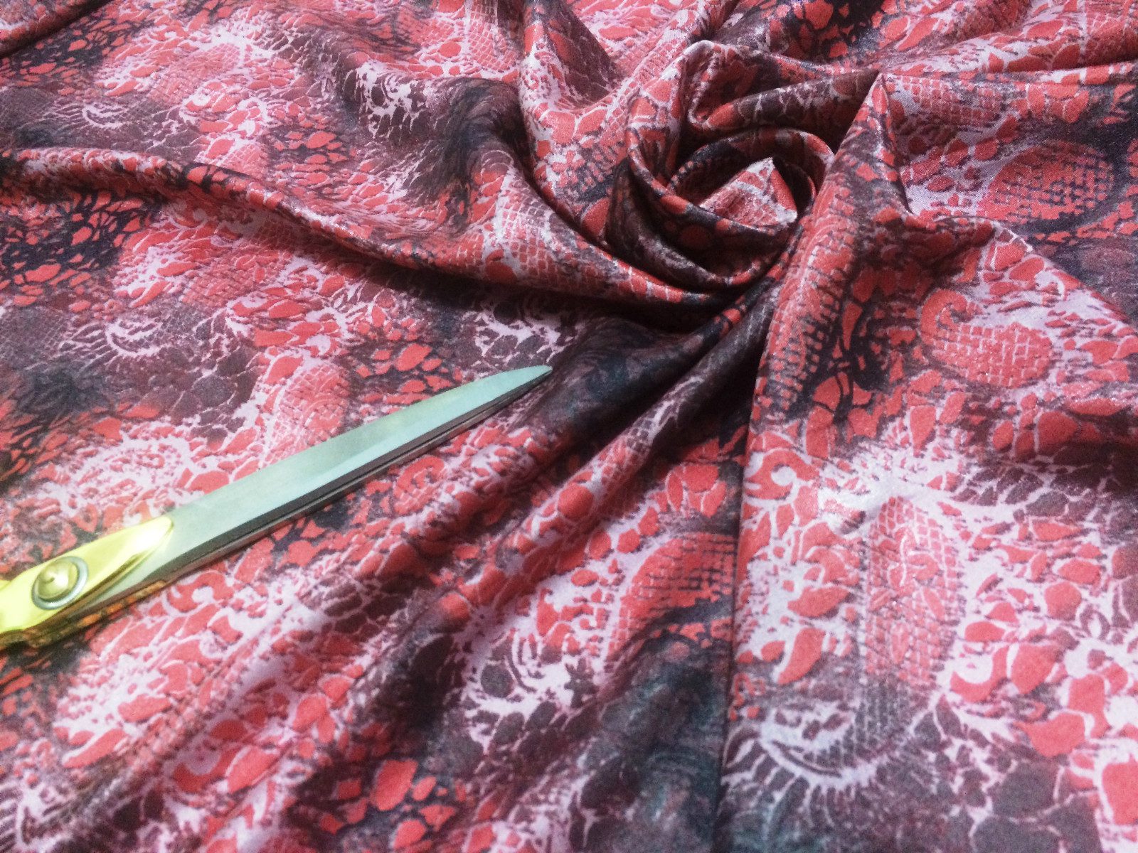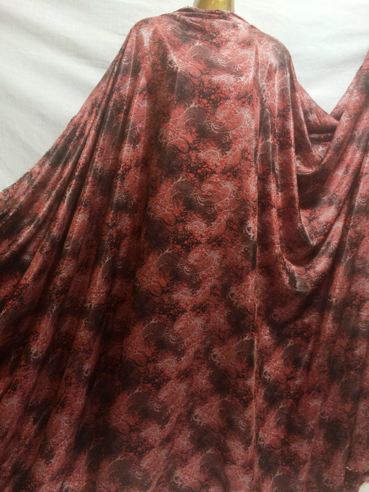 This silky rayon blend fabric features an elegant paisley print in rich coral red and charcoal tones, perfect for creating flowy dresses, blouses, skirts, and sophisticated craft projects. Soft to the touch with a gentle drape and lightweight feel, this fabric offers the breathability of rayon with the ease of sewing and fluidity ideal for transitional and year-round garments.