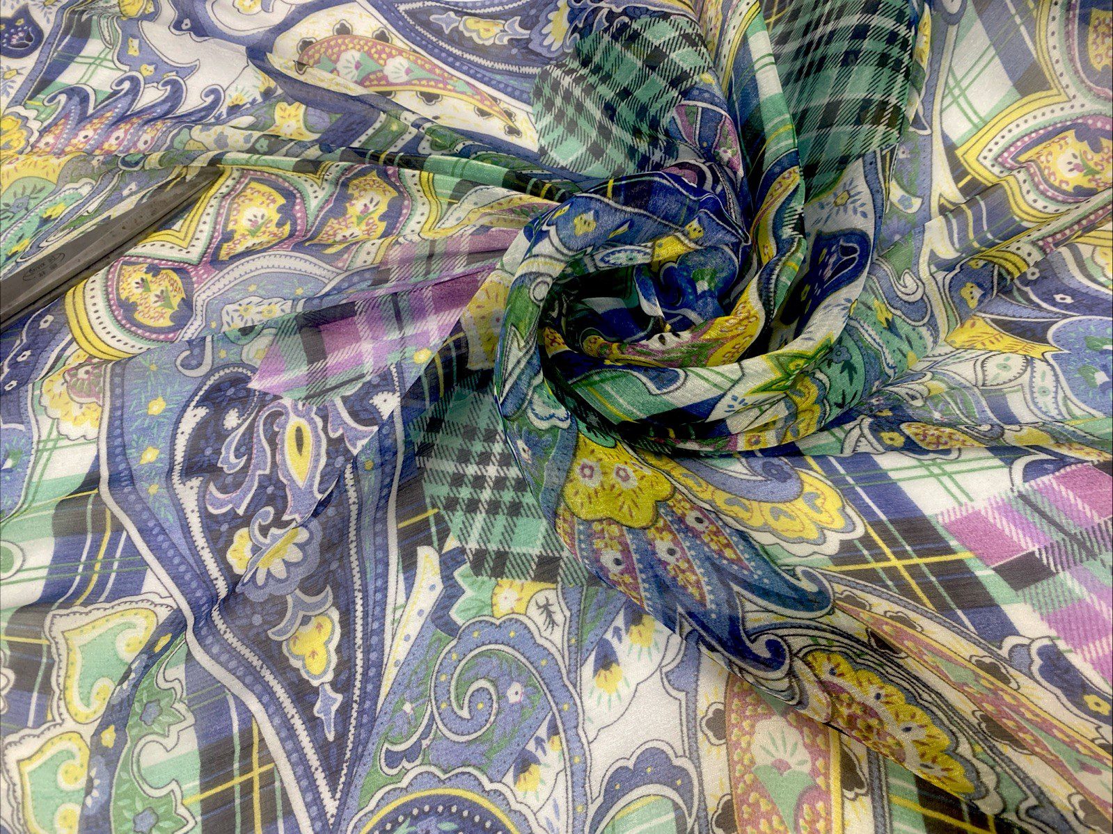 This elegant silky shimmer chiffon organza fabric features a soft drape and eye-catching paisley abstract design. Lightweight and semi-sheer with a subtle shine, it’s perfect for flowing dresses, glamorous overlays, or decorative curtains. Ideal for both fashion and home décor projects that need a touch of sophistication.