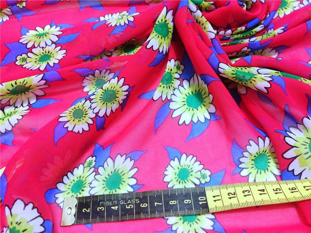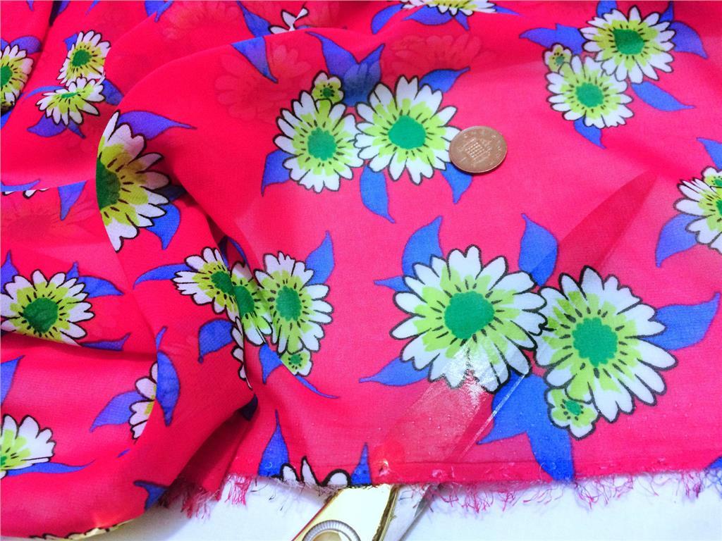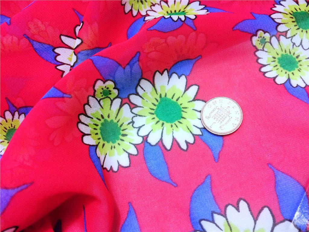 This beautiful cerise chiffon fabric features a delicate daisy floral print on a soft, floaty base—perfect for light, airy dresses, blouses, scarves, and creative craft projects. With its sheer, smooth finish and graceful drape, this fabric is ideal for adding a playful yet feminine touch to your spring/summer makes.