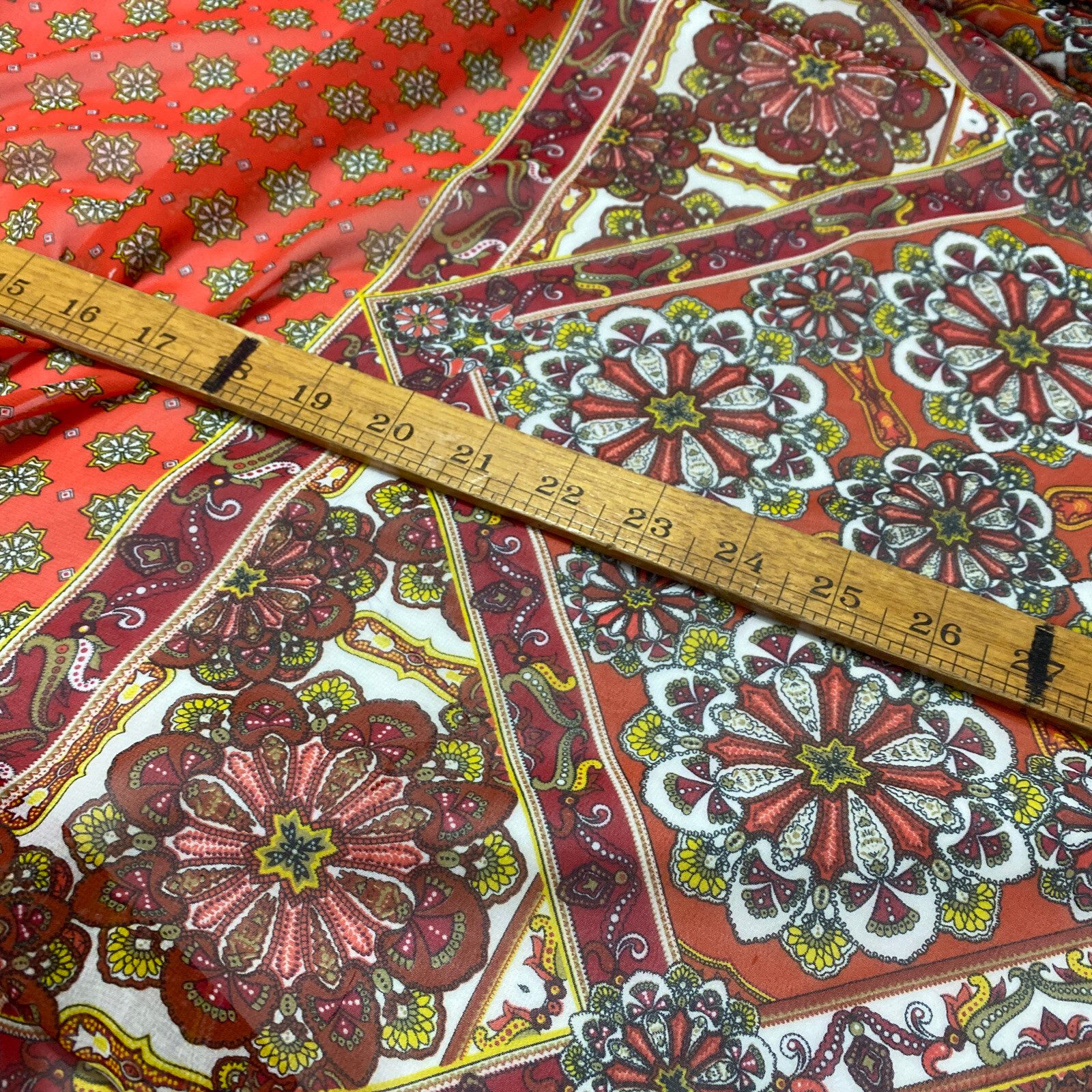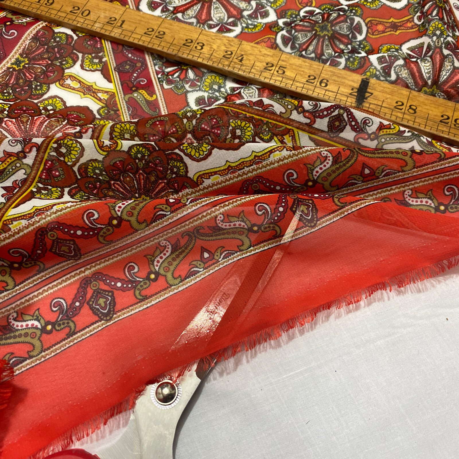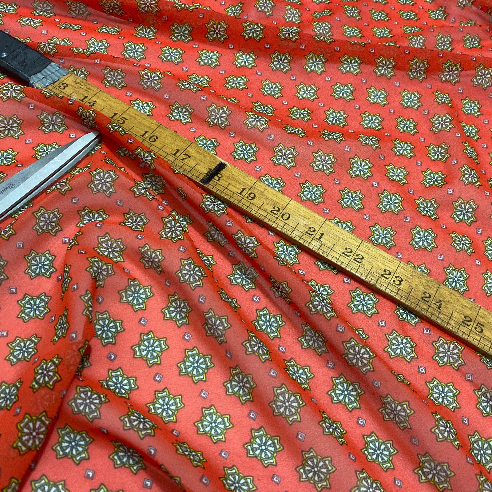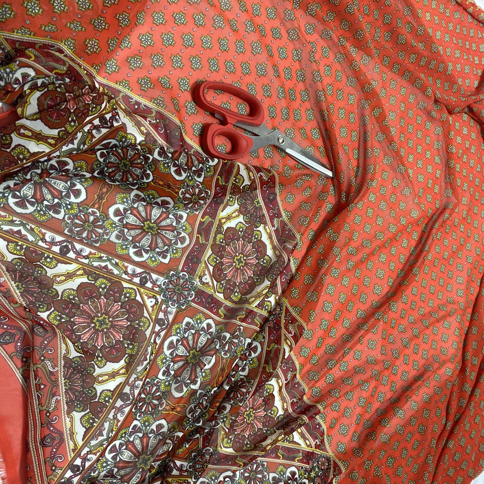 Add a touch of elegance to your clothing and craft projects with this stunning smooth chiffon fabric from Cheapest Fabrics UK. The fabric features a beautiful floral damask print in an orange base colour, perfect for creating exquisite designs. The fabric is made of synthetic fibres and is suitable for a range of apparel projects, including dresses, loungewear, and saris.This versatile fabric is also ideal for interfacing, lining, and drapery projects, as well as costume and kimono designs. With a width of 58″-60″, this light fabric is perfect for all your crafting needs. Order now and enjoy this must-have fabric for all your flower-themed projects.