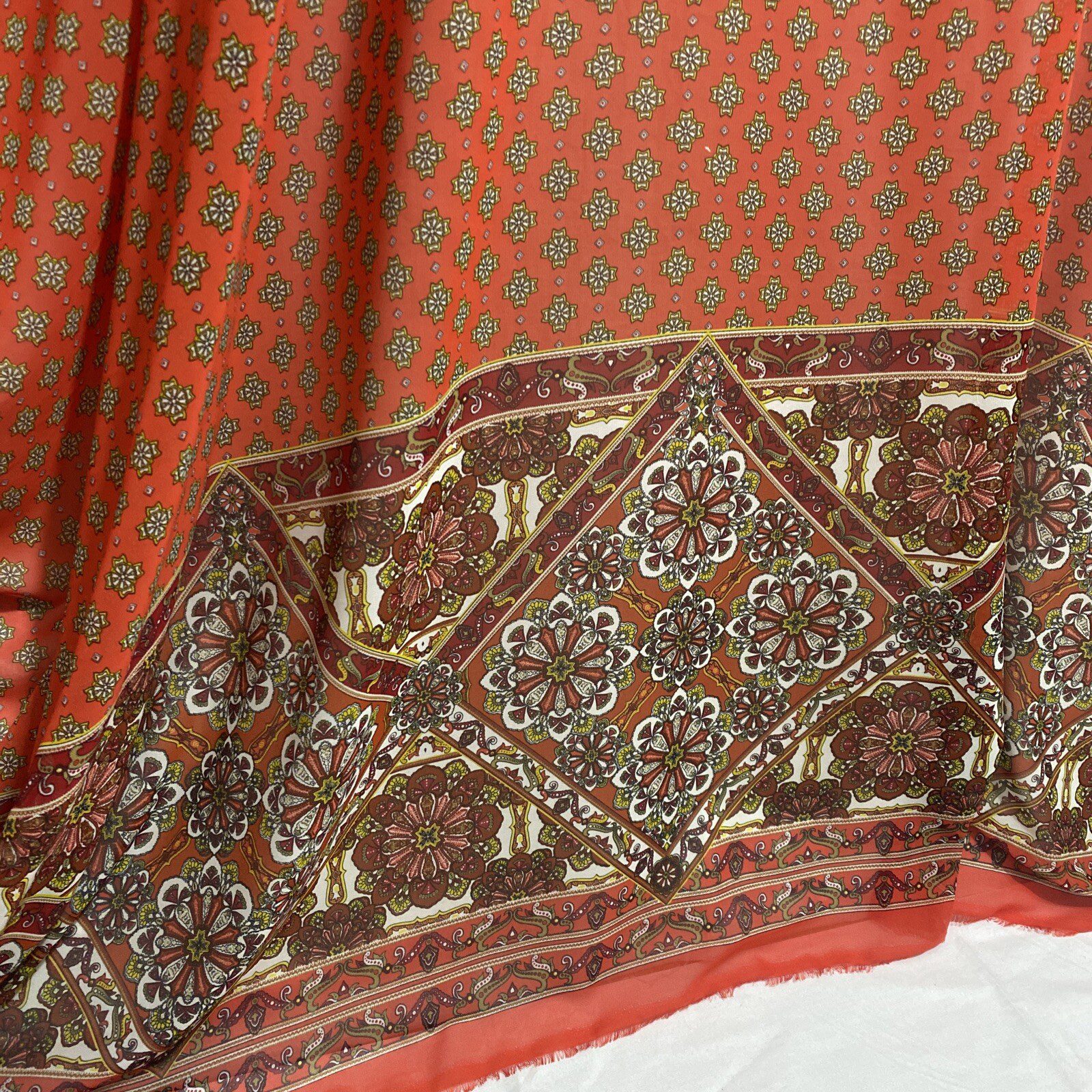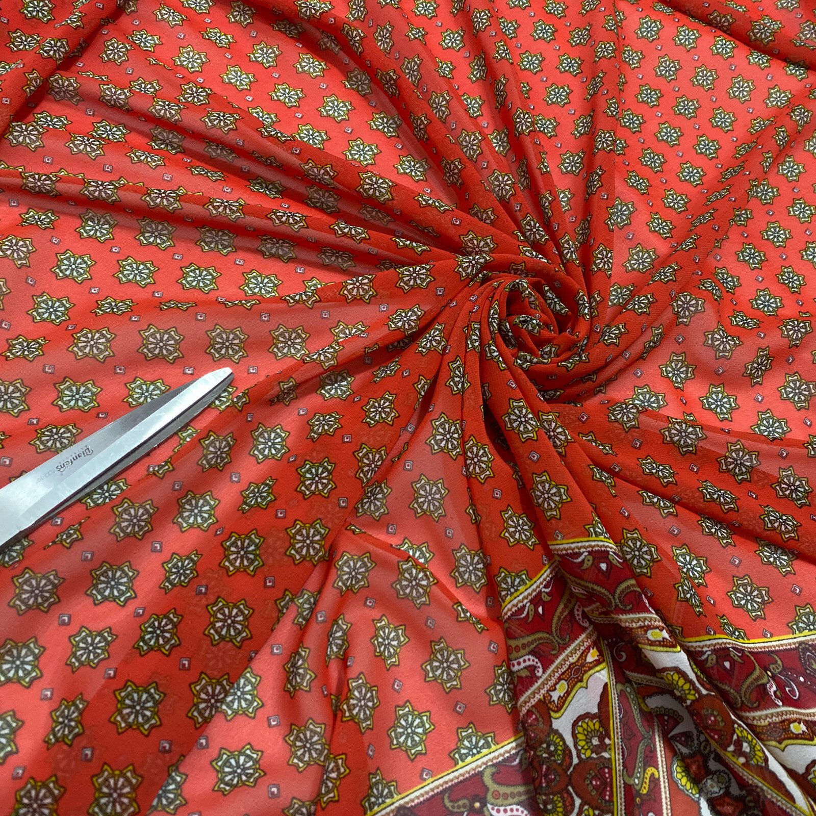 Smooth Chiffon Floral Border Damask Print Dress/Crafts Fabric