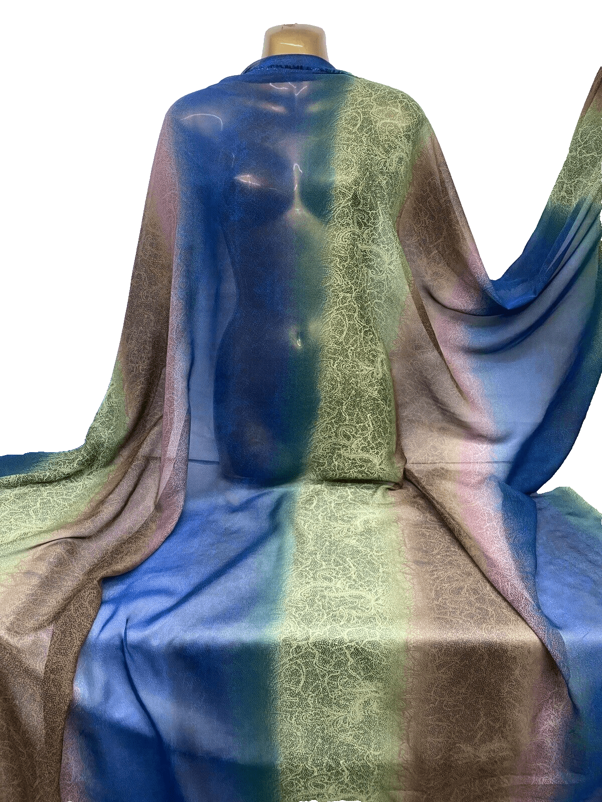 Bring a touch of African-inspired elegance to your next project with this stunning chiffon fabric. The multicoloured striped pattern and light fabric weight make it perfect for a range of crafting and apparel projects, from dresses and table tops to accessories and drapery. With a width of 58″-60″ and yardage of your choice, this fabric is ideal for both everyday clothing and special occasions.