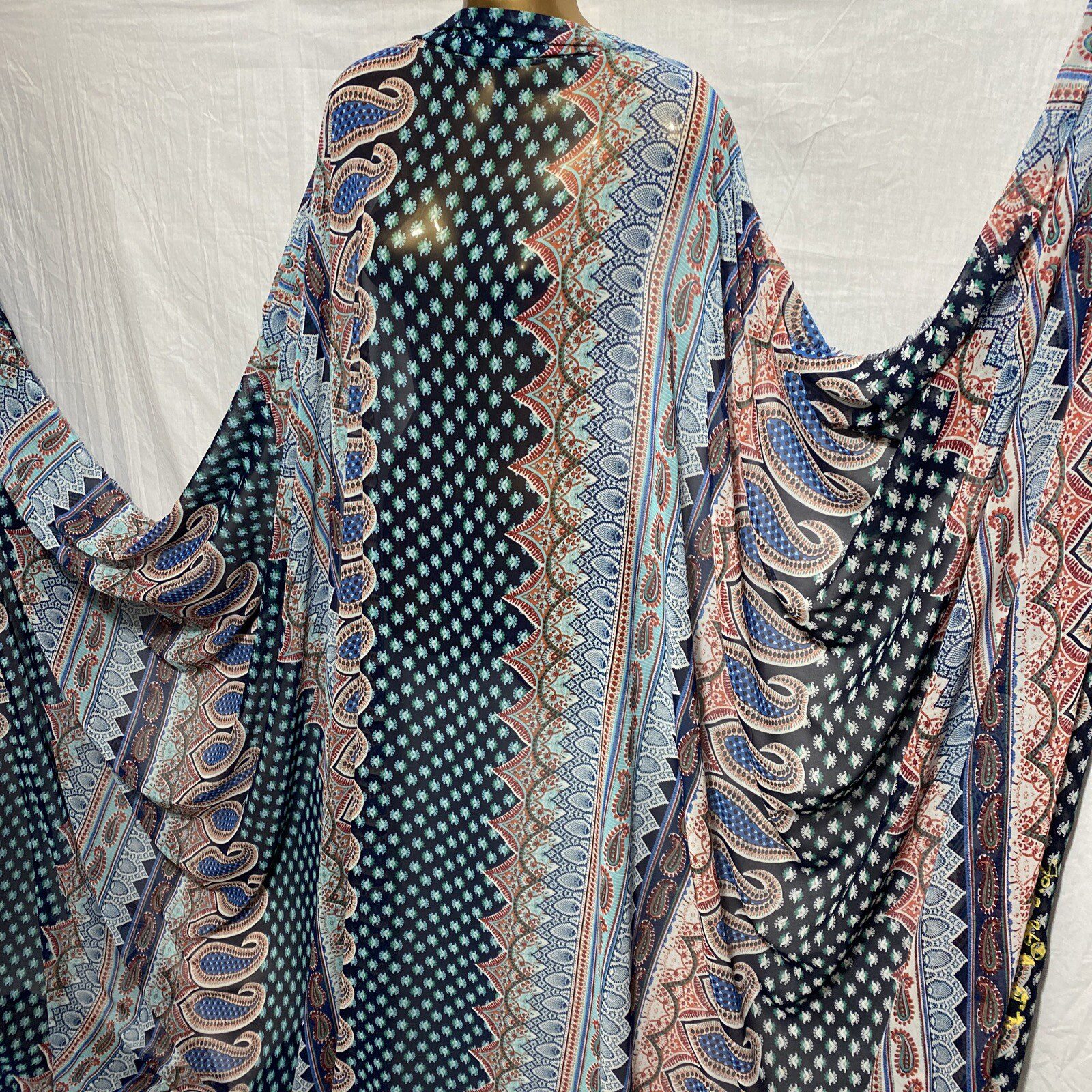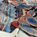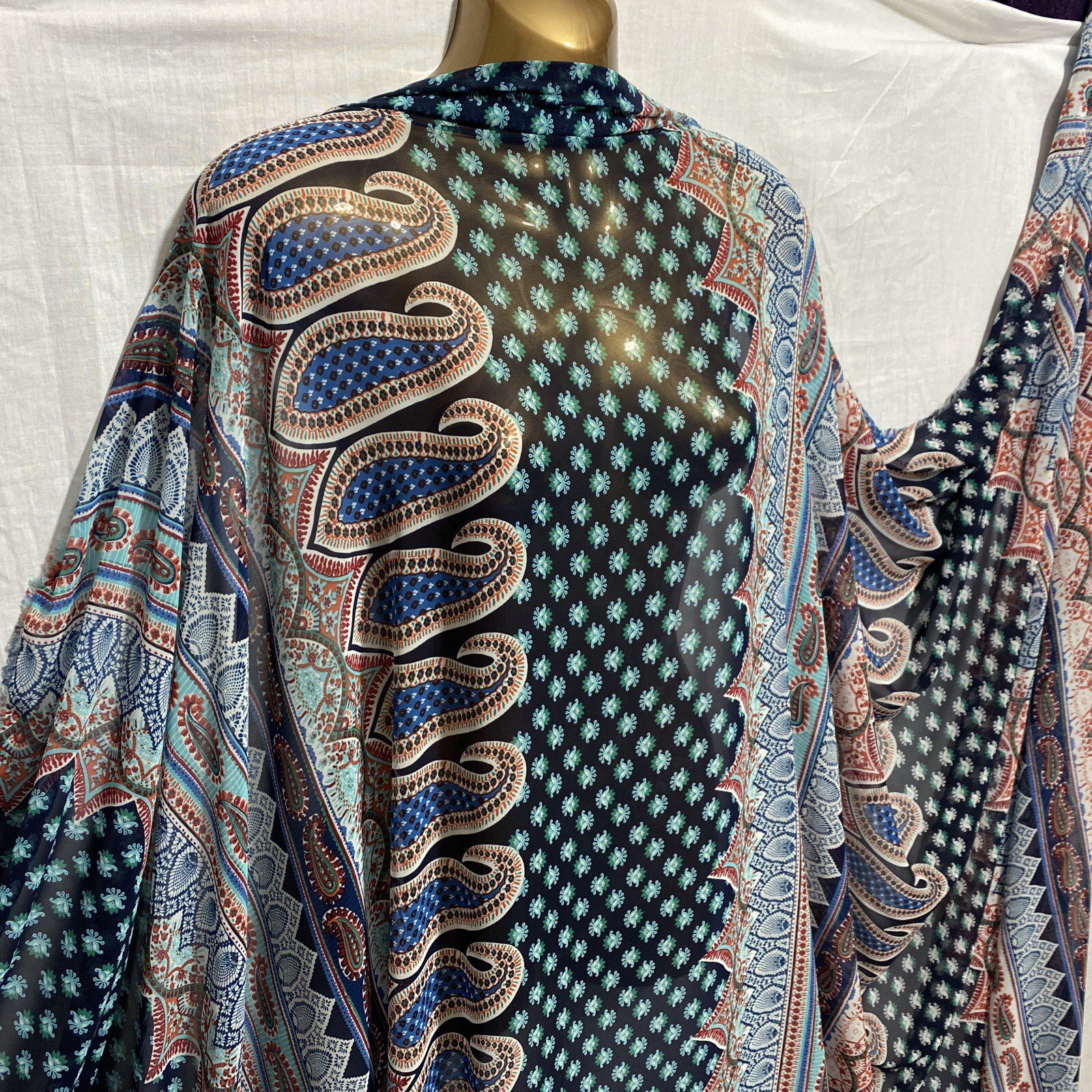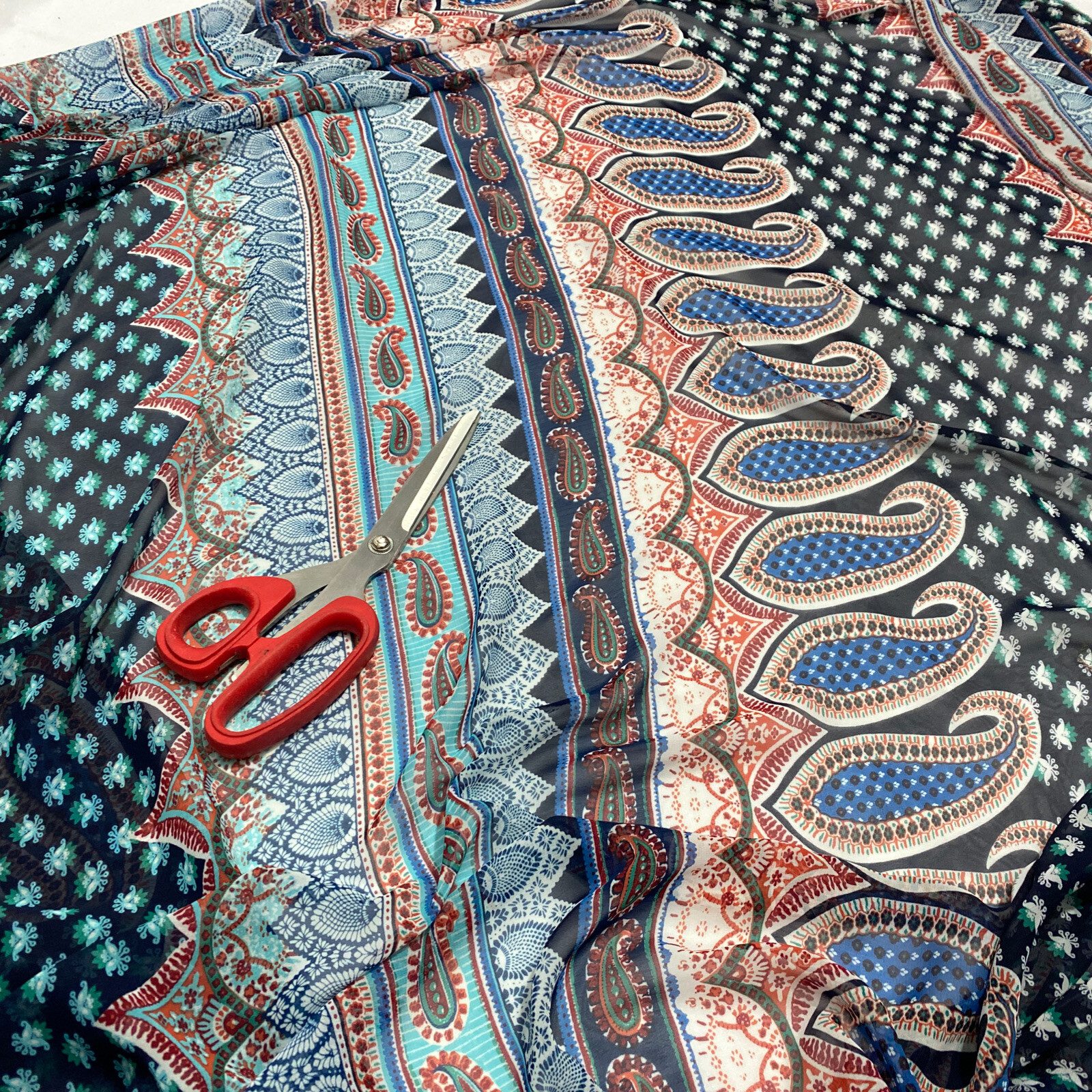 This lightweight smooth chiffon fabric features a bold and expressive Multicolour Ethnic Print 1, inspired by traditional motifs with a modern twist. Its semi-sheer finish and soft, flowing drape make it ideal for dresses, scarves, kaftans, blouses, and creative craft projects. A great choice for statement fashion pieces and cultural-inspired designs.