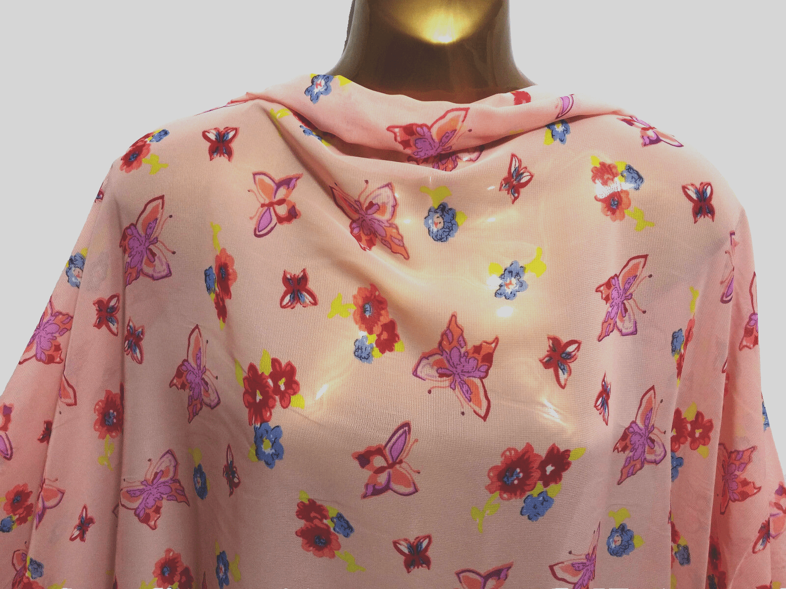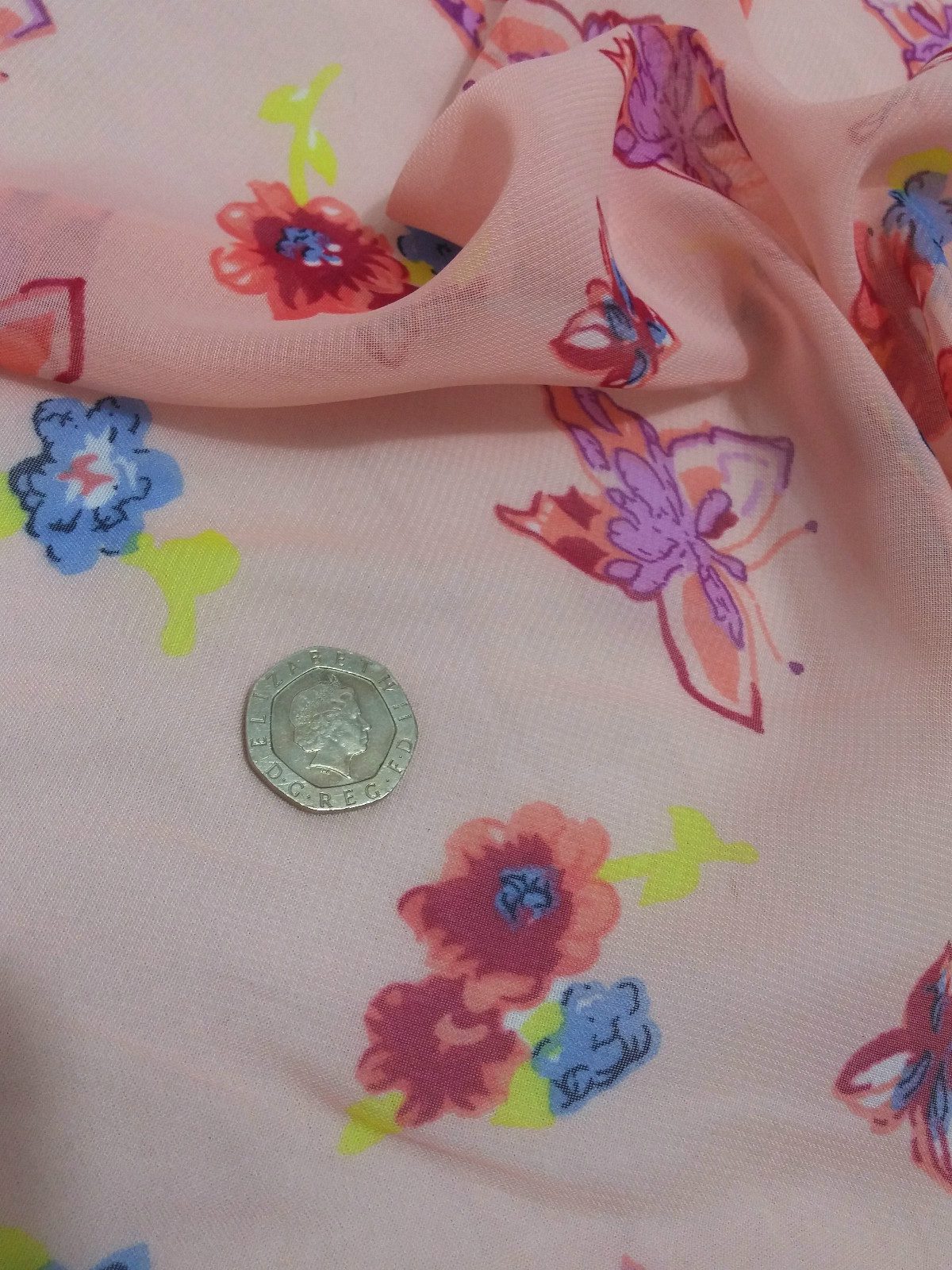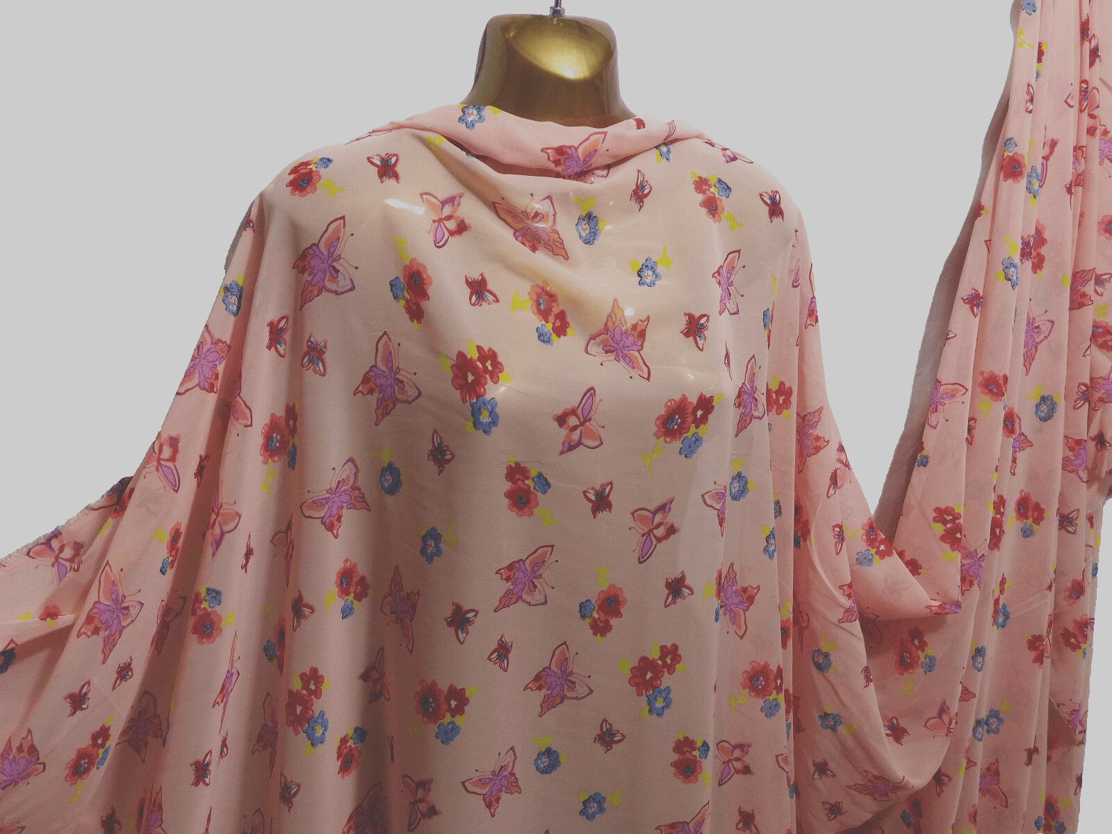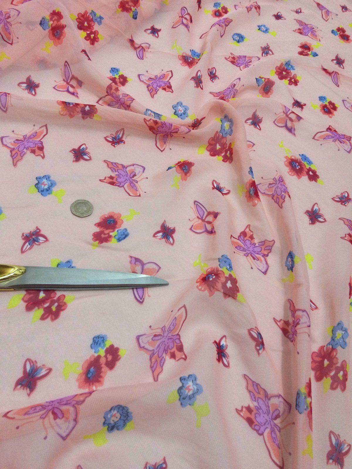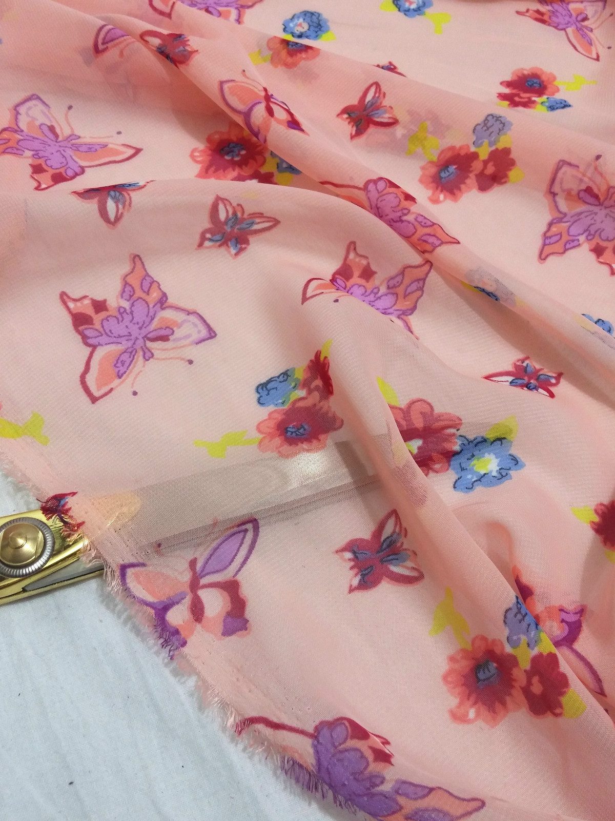 Smooth Chiffon Pink *Butterflies*Floral Print Dress/Crafts Fabric