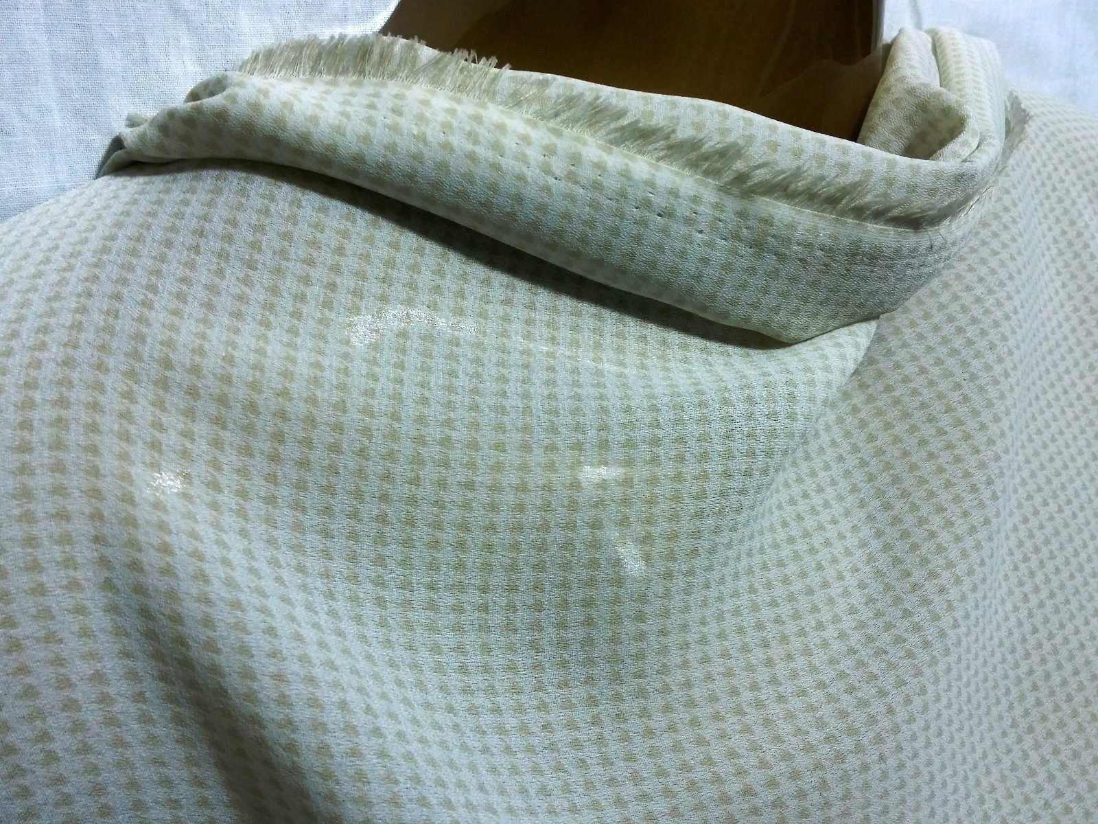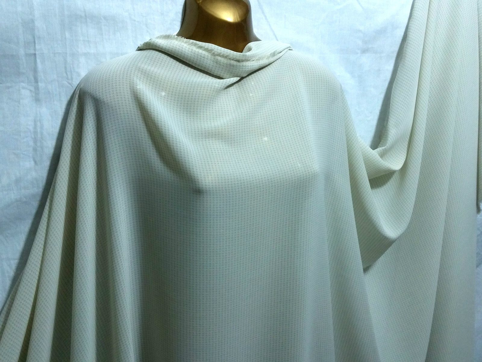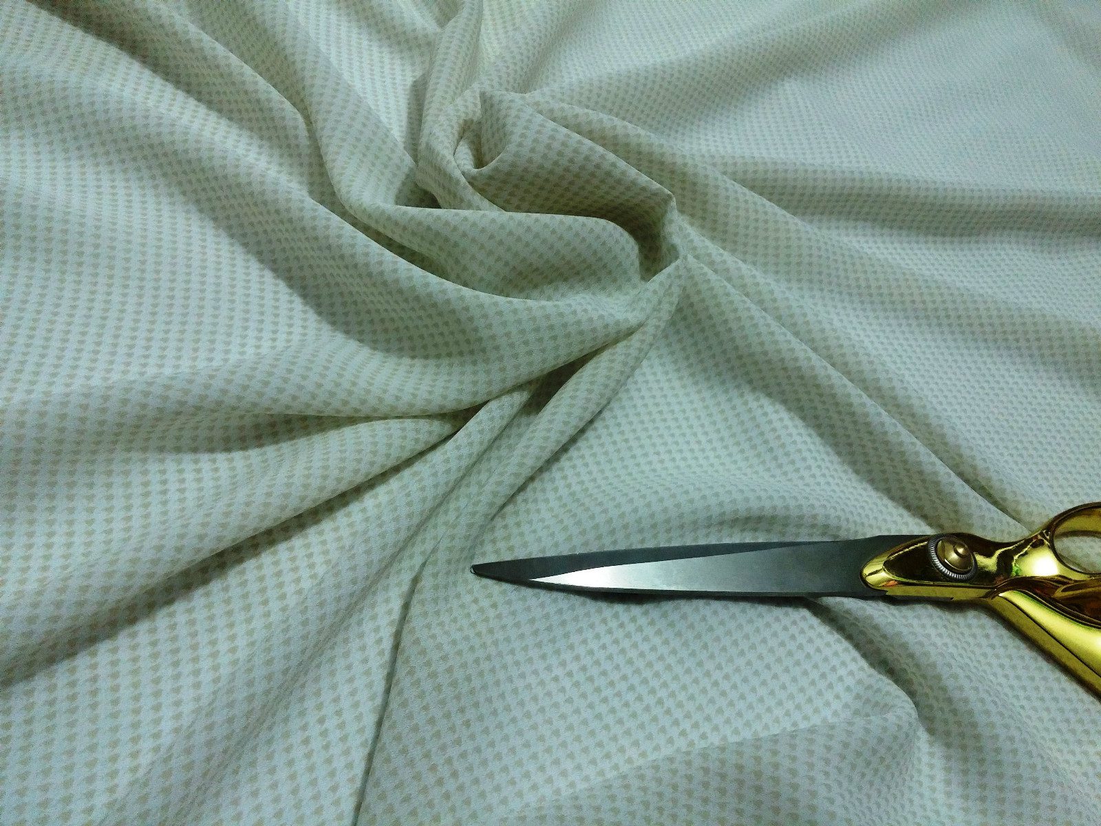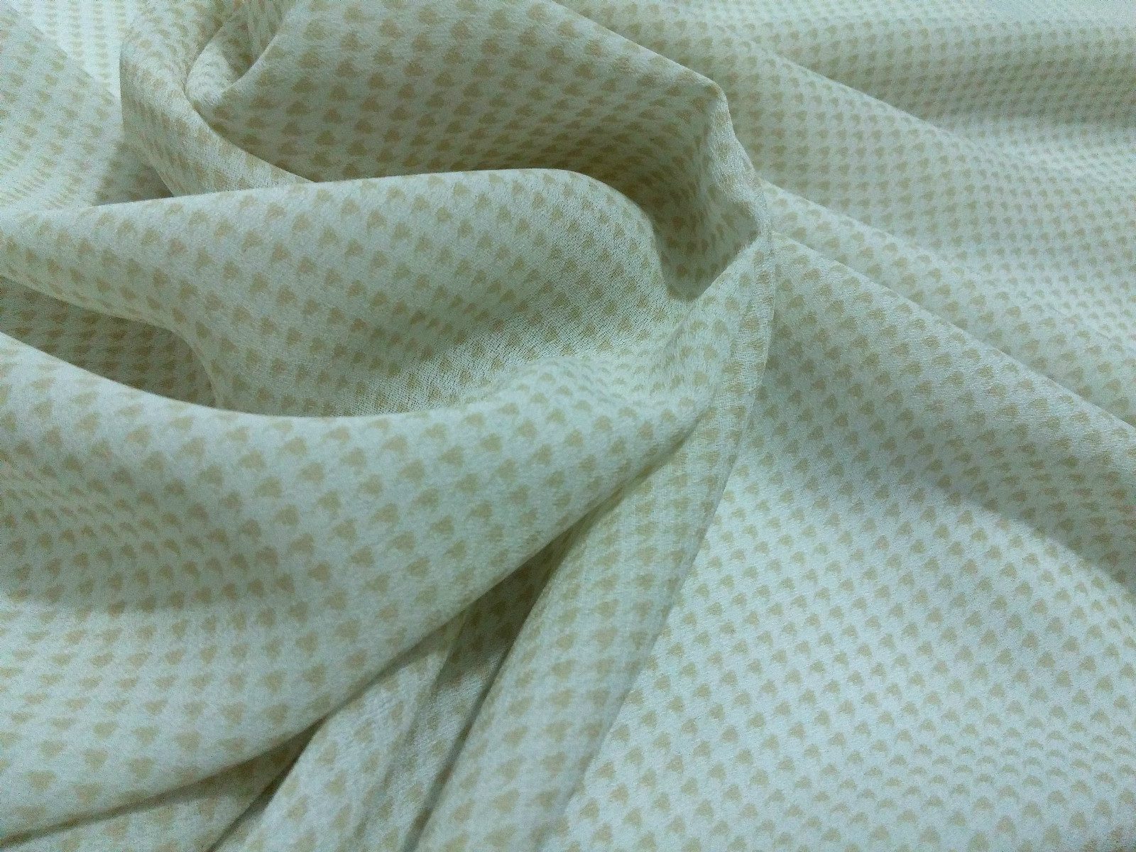 This elegant smooth chiffon fabric features a refined beige and cream dogtooth print, offering a modern twist on a timeless pattern. Lightweight and semi-sheer with a soft, flowing drape, it’s perfect for creating stylish dresses, blouses, scarves, and layering pieces. The subtle colour palette adds a touch of sophistication to both casual and occasionwear.