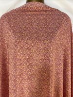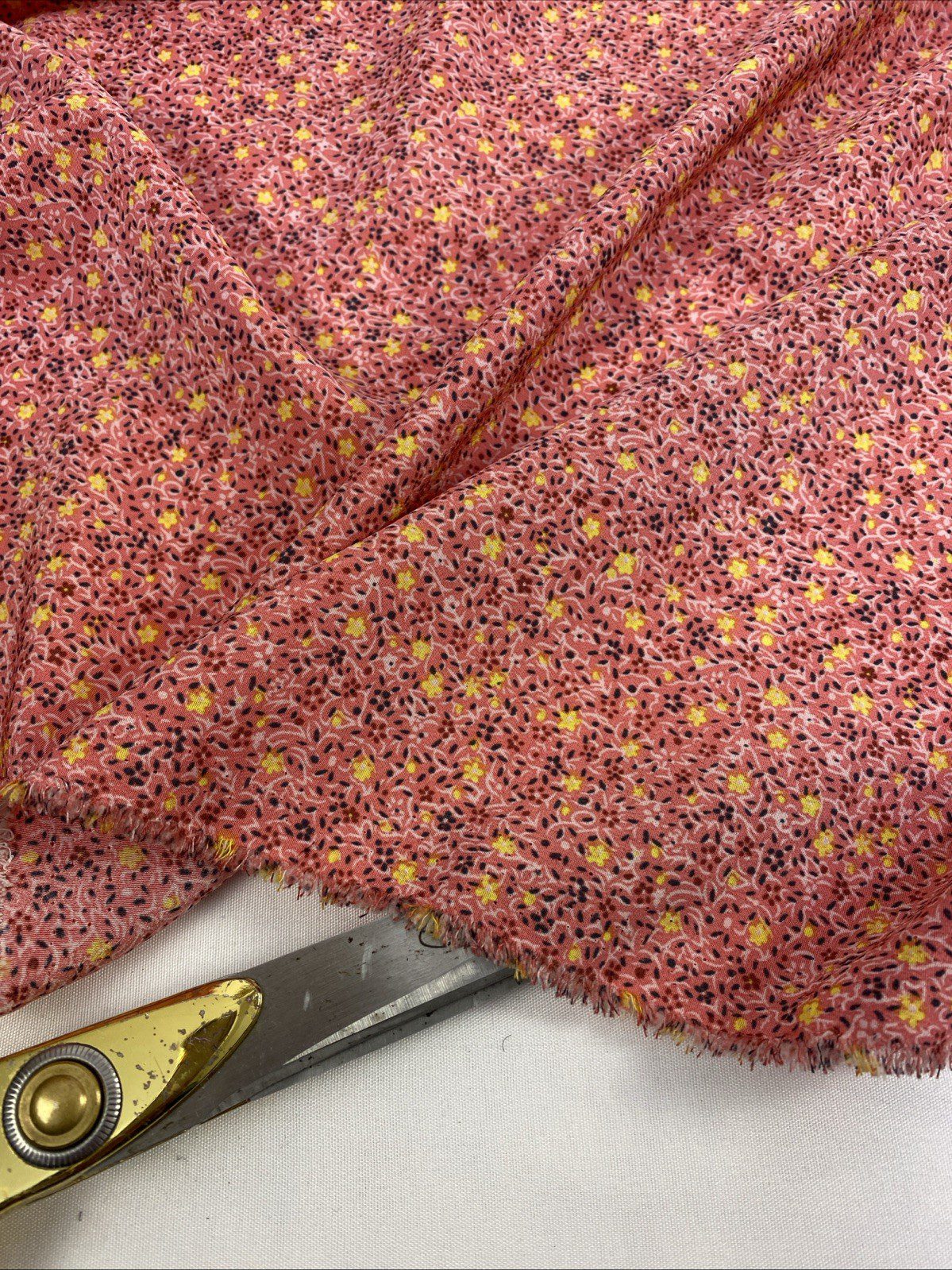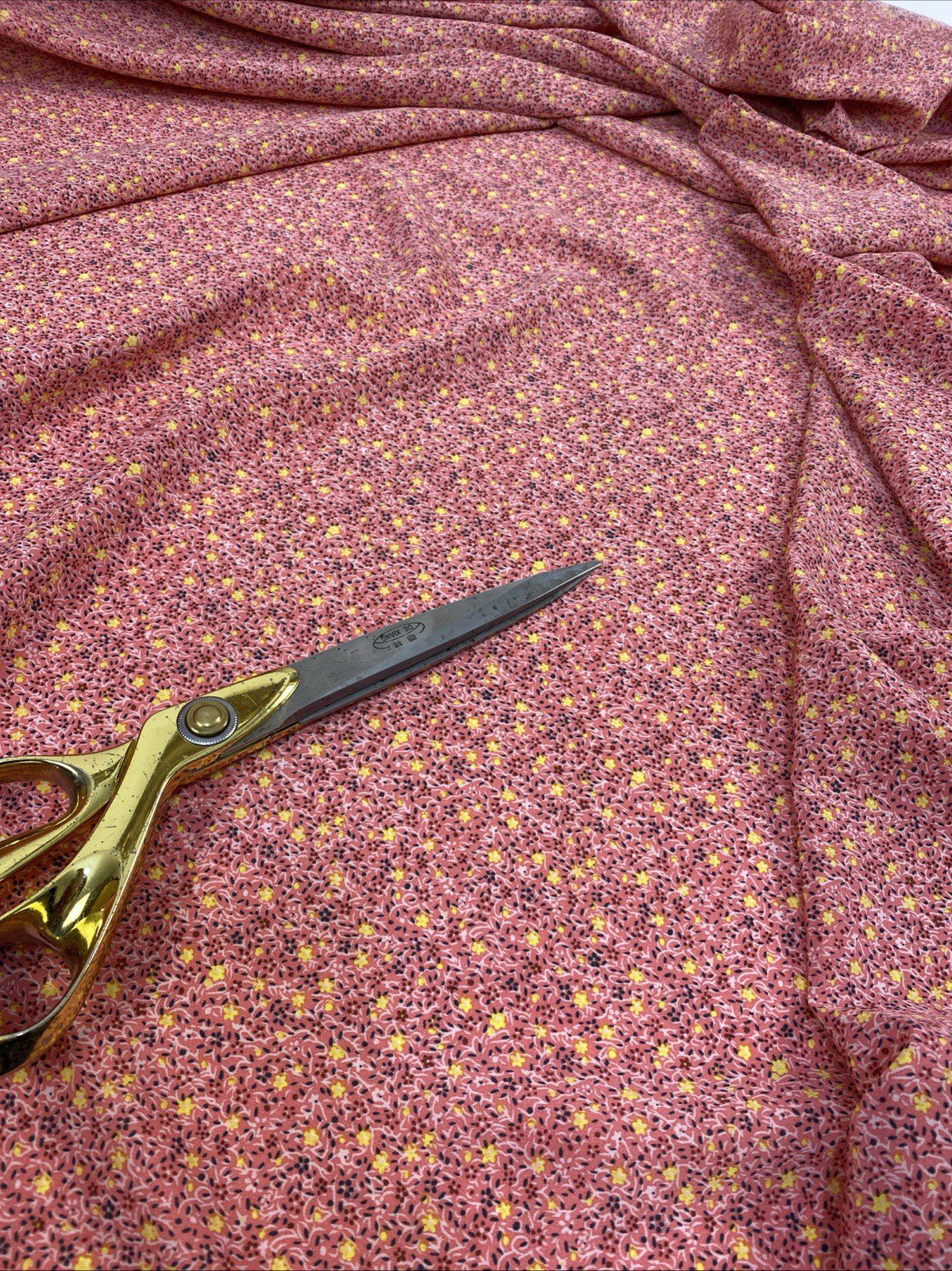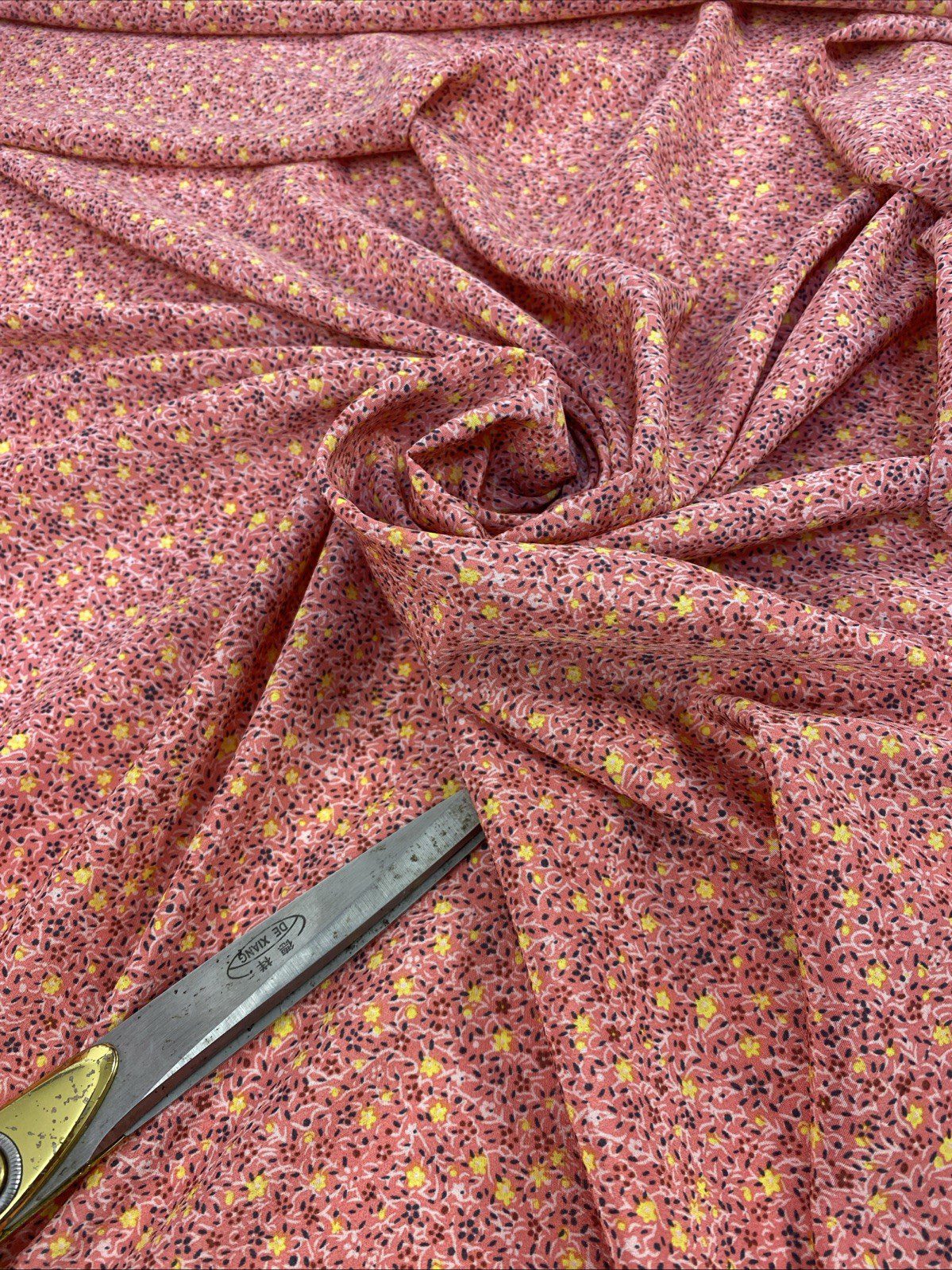 Craft your next project with our medium-weight poly crepe de chin fabric, boasting a vibrant pinkish red base with yellow floral prints. Ideal for a wide array of creations, it is versatile for everything from apparel – including dresses, sportswear, and everyday clothing – to accessories such as bags, hats, and gloves. The synthetic fibre content ensures durability, while the African theme adds a touch of cultural flair to your designs.