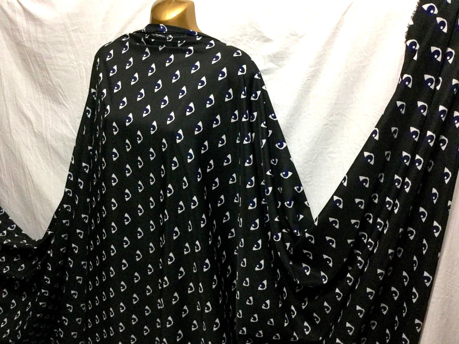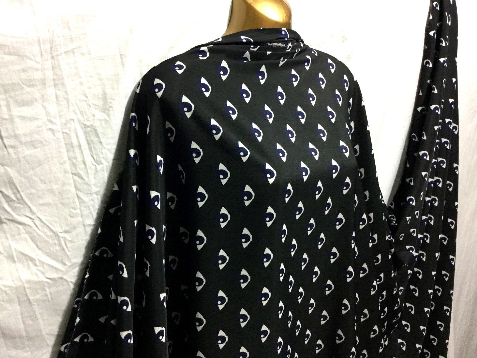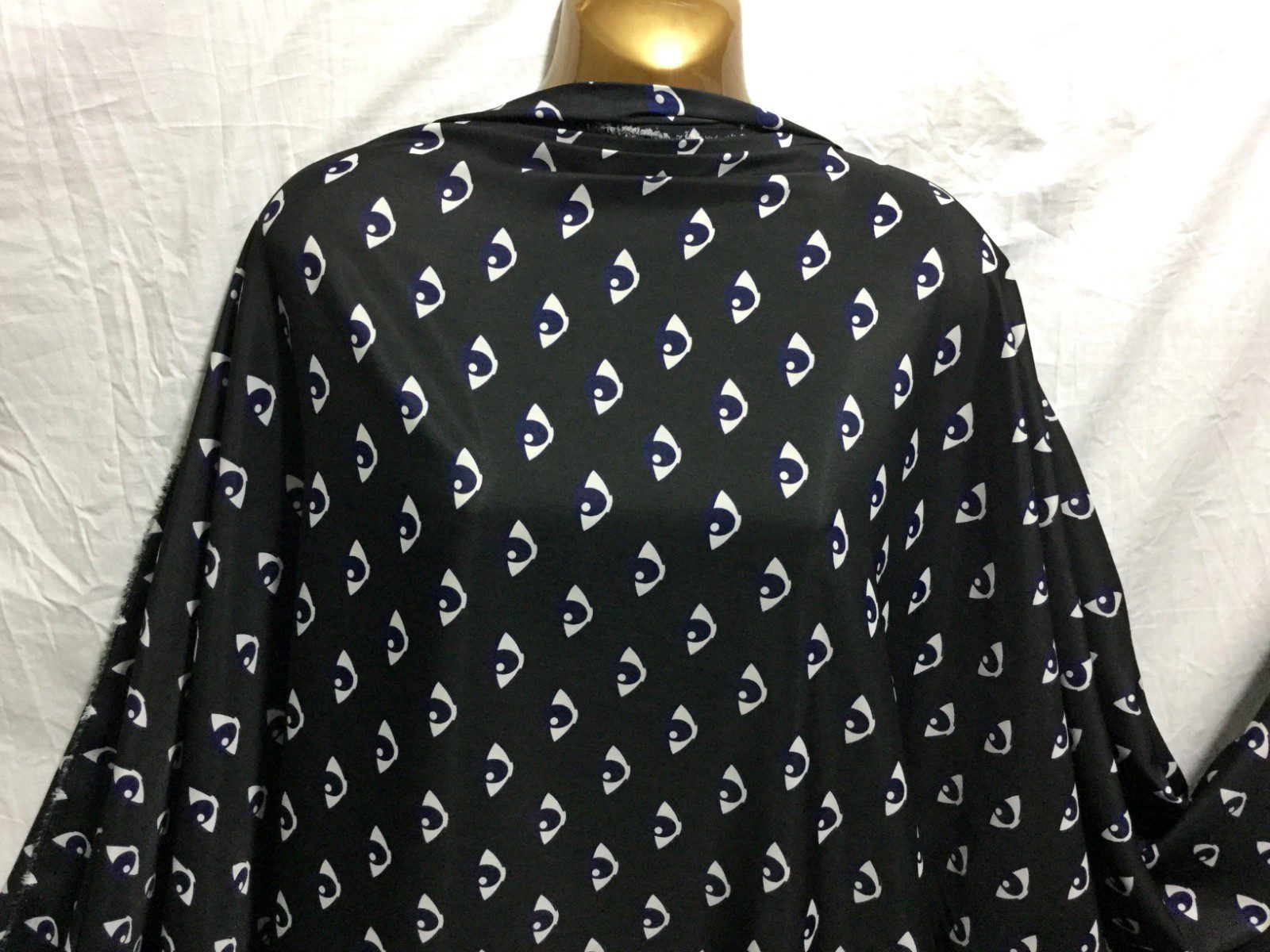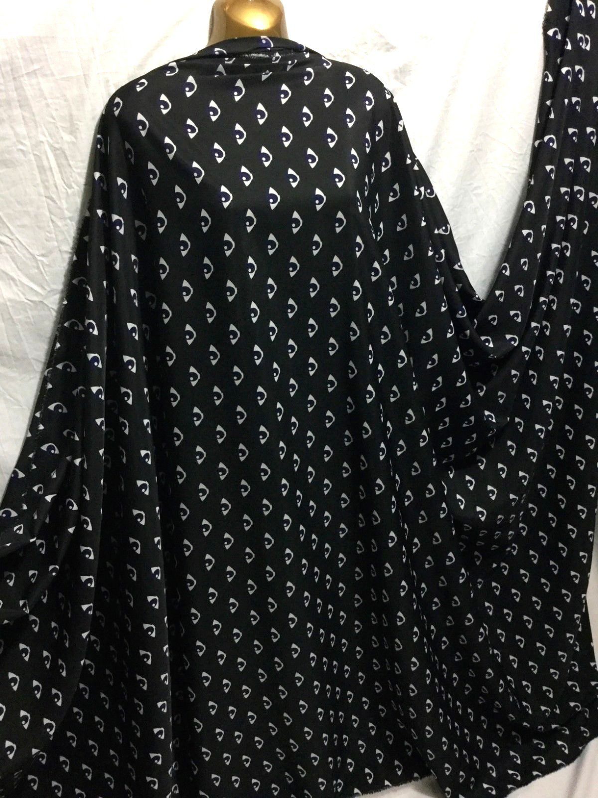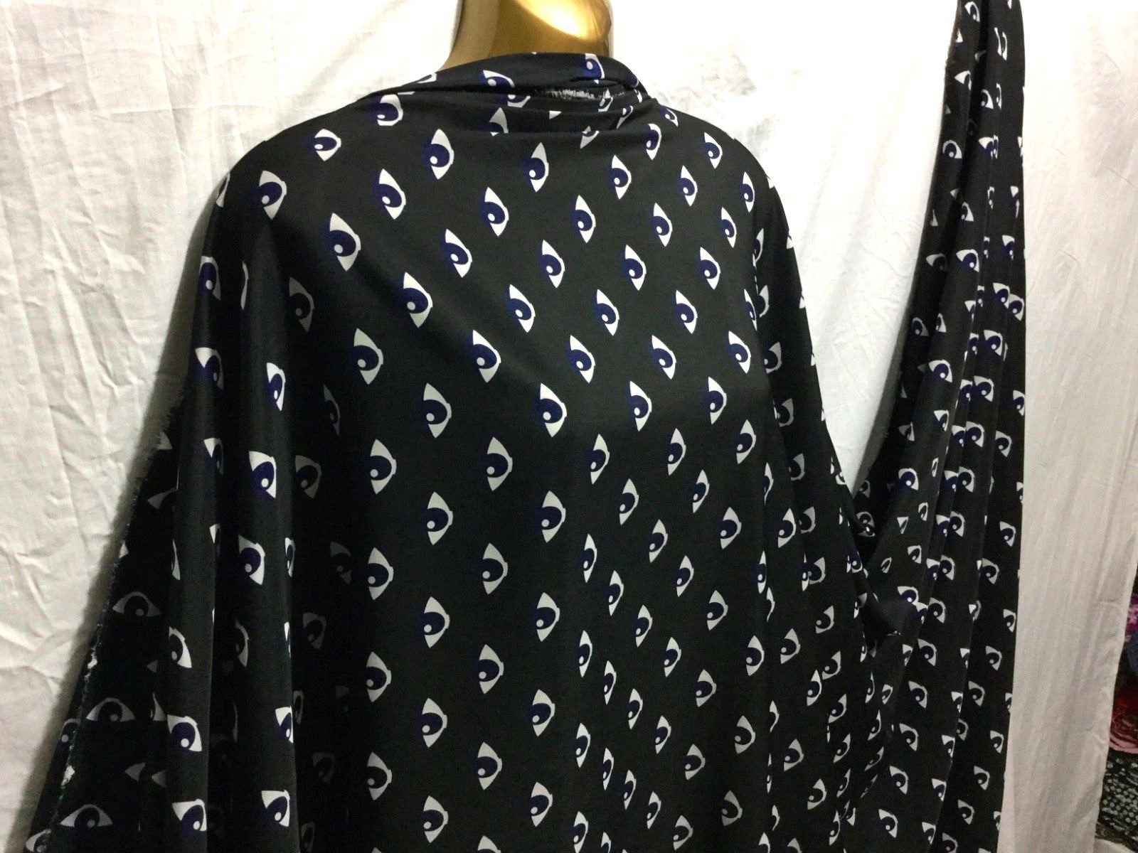 This elegant smooth polyester fabric features a sophisticated designer print set against a rich black base, perfect for standout dresses, blouses, scarves, and premium craft projects. The fabric offers a soft, fluid drape with a subtle sheen, making it ideal for garments that require comfort, movement, and style. Its bold contrast and detailed pattern make it a go-to for fashion-forward creations.