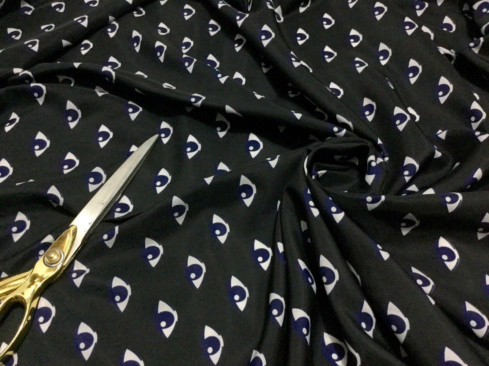 Smooth Polyester Black Base Designer Print Dress/Craft Fabric