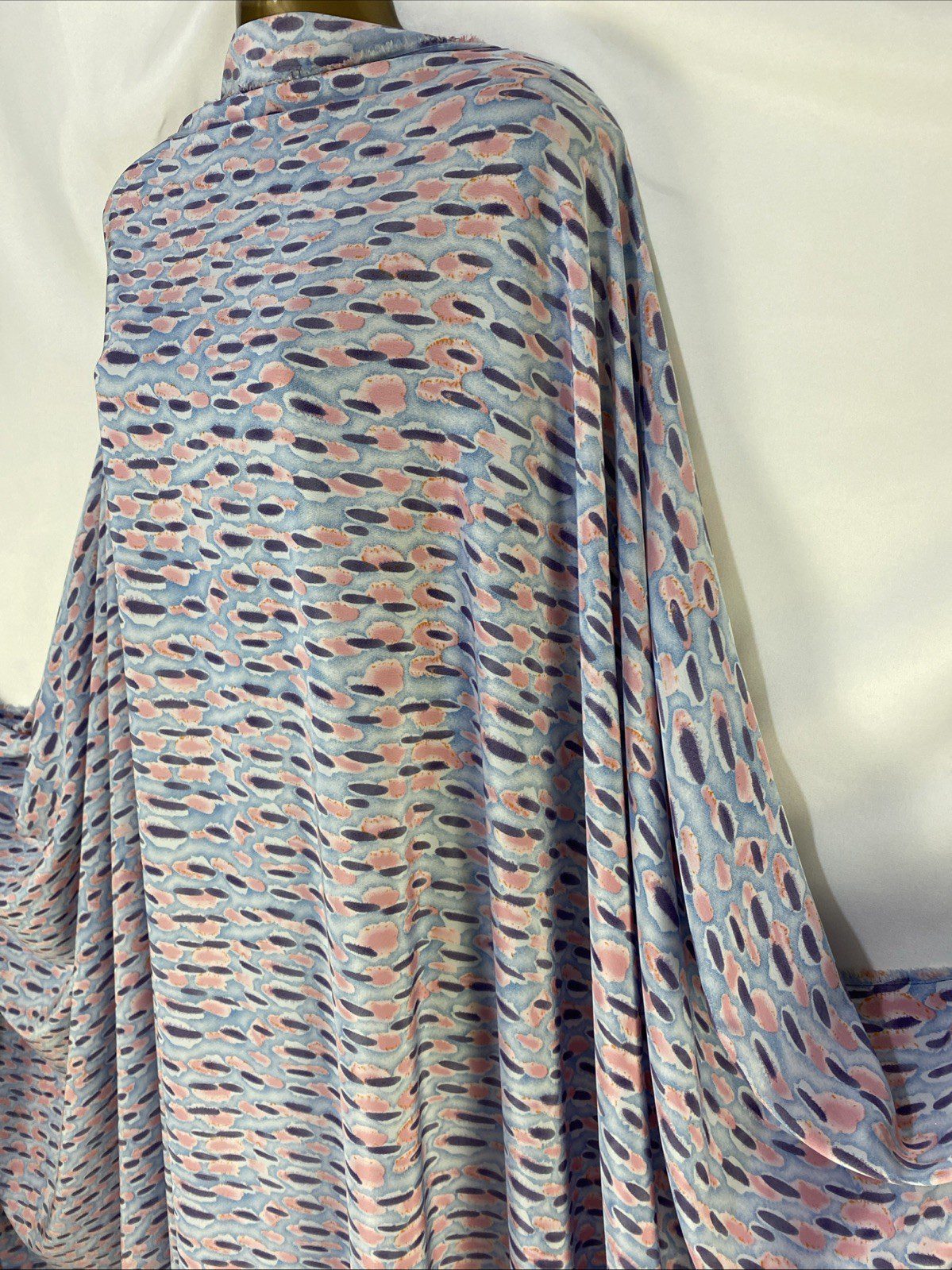 This beautiful fabric features a stunning floral pattern and is made from high-quality polyester material. It is perfect for creating dresses, bags, hats, gloves, and more. The fabric is medium-weight and comes in a yard length.