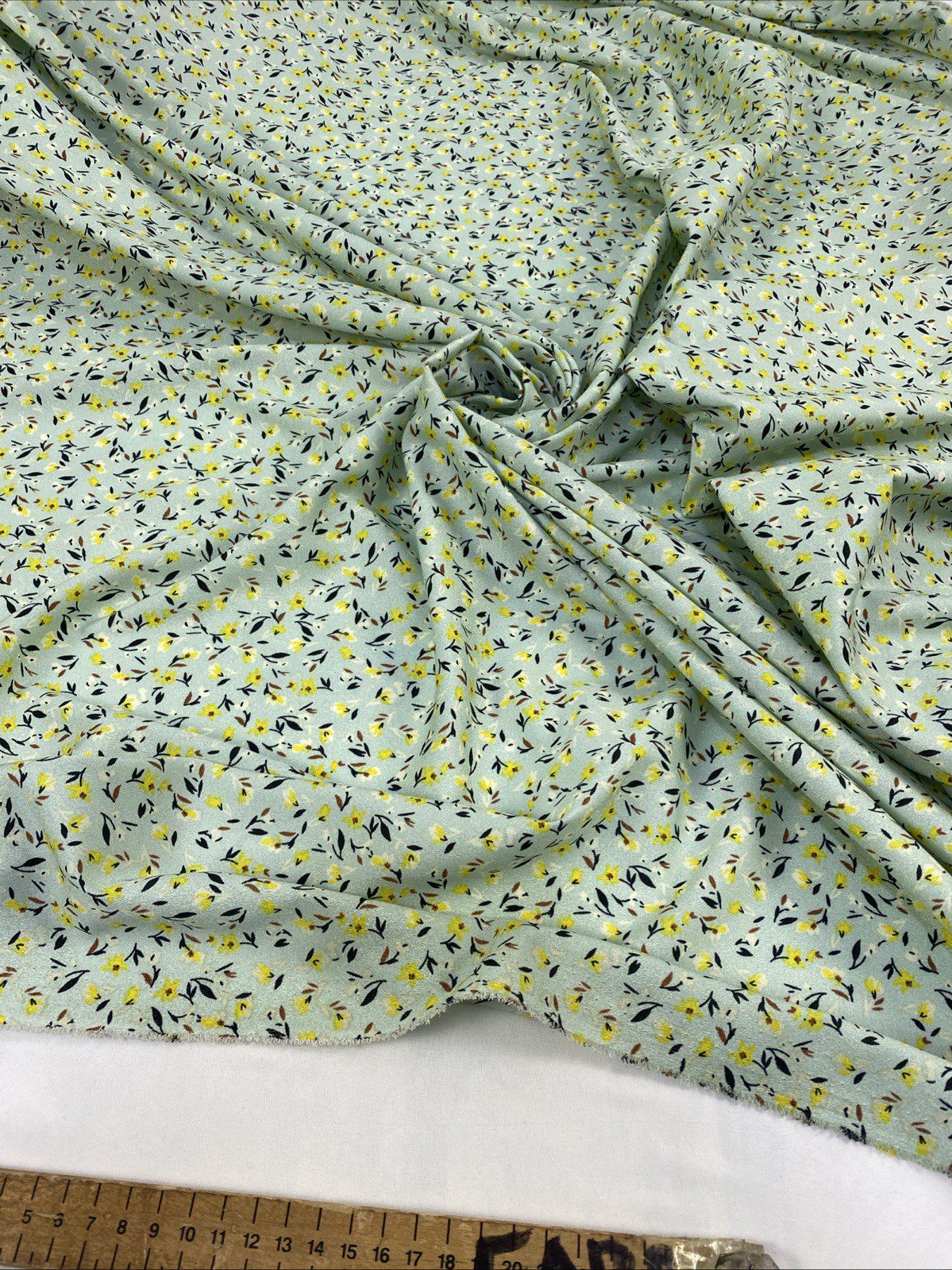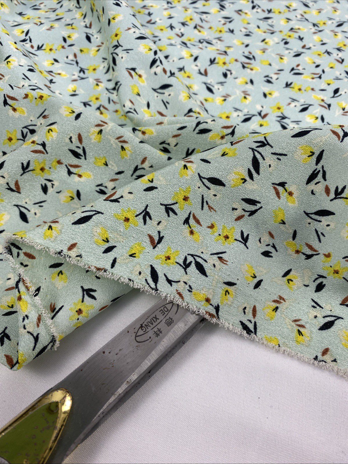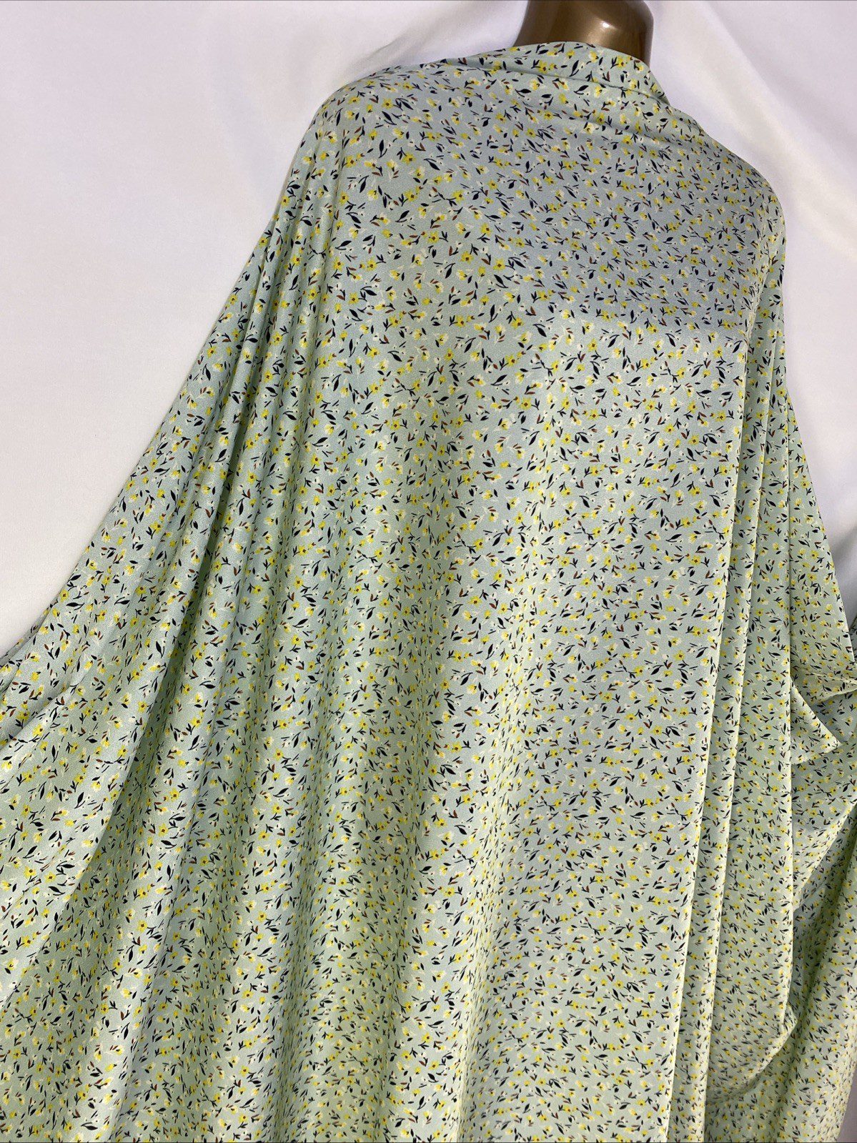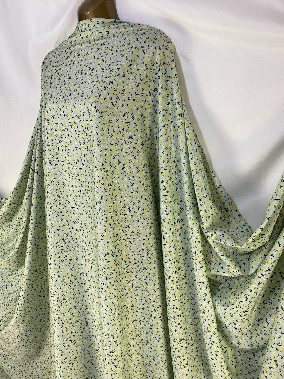 This beautiful fabric features a stunning floral pattern and is made from high-quality polyester material. It is perfect for creating dresses, bags, hats, gloves, and more. The fabric is medium-weight and comes in a yard length.