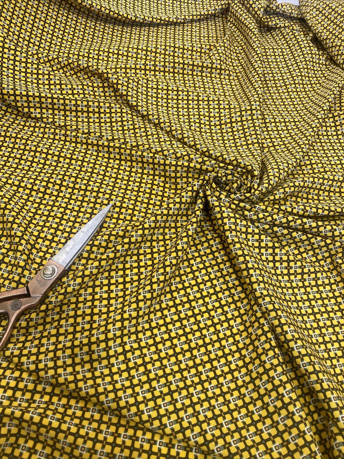 This smooth and soft medium-weight polyester fabric features a bold and modern geometric print, perfect for contemporary dressmaking and stylish craft projects. With a lightly structured drape and matte finish, it’s easy to sew and ideal for dresses, skirts, blouses, tunics, and home accessories like cushion covers and panels.