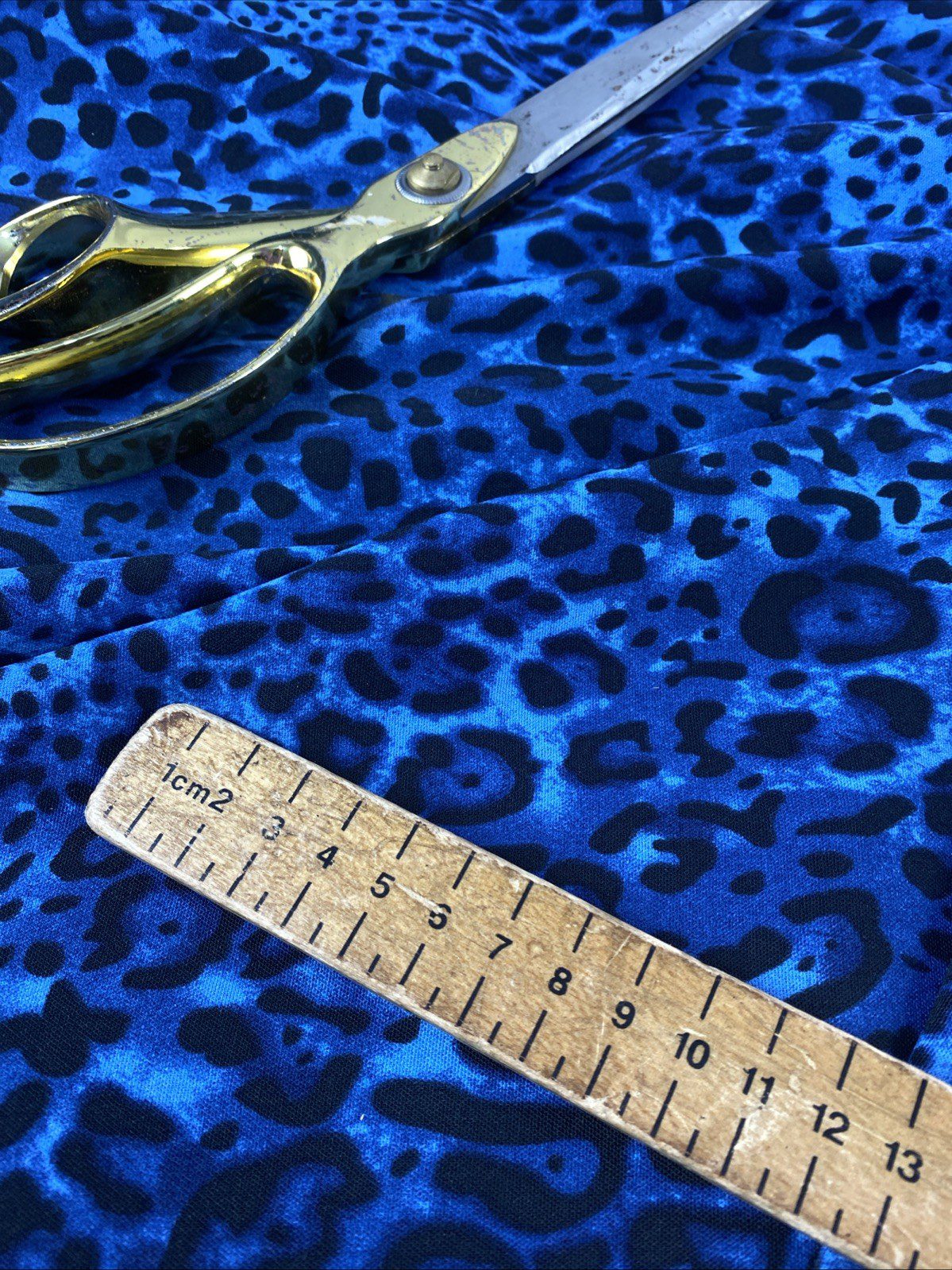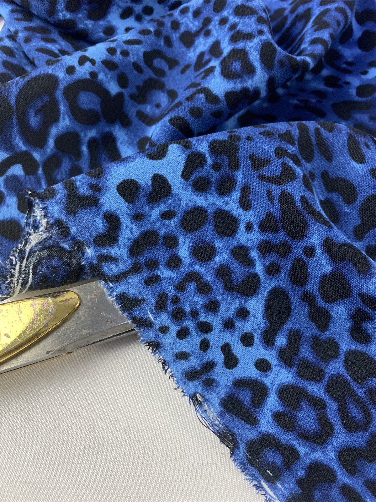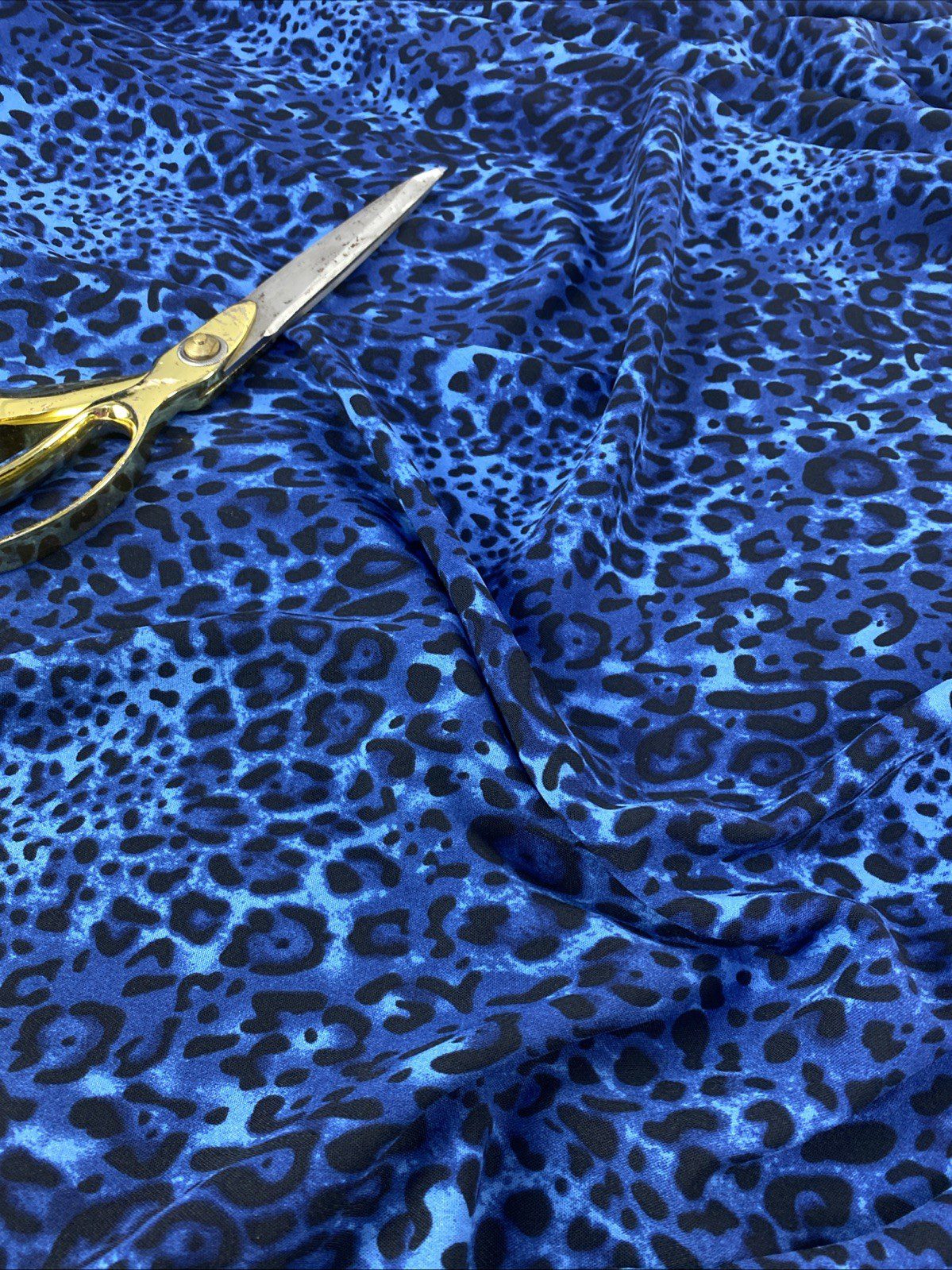 Craft a statement piece with our medium-weight 100% polyester animal print fabric, ideal for a range of creative projects. This versatile material features a bold leopard or jaguar pattern in a striking blue-black tone, perfect for making accessories like bags, hats, and gloves, or for crafting apparel such as dresses and dance/sportswear. The width of the fabric ranges from 58 to 60 inches, allowing for ample design flexibility.