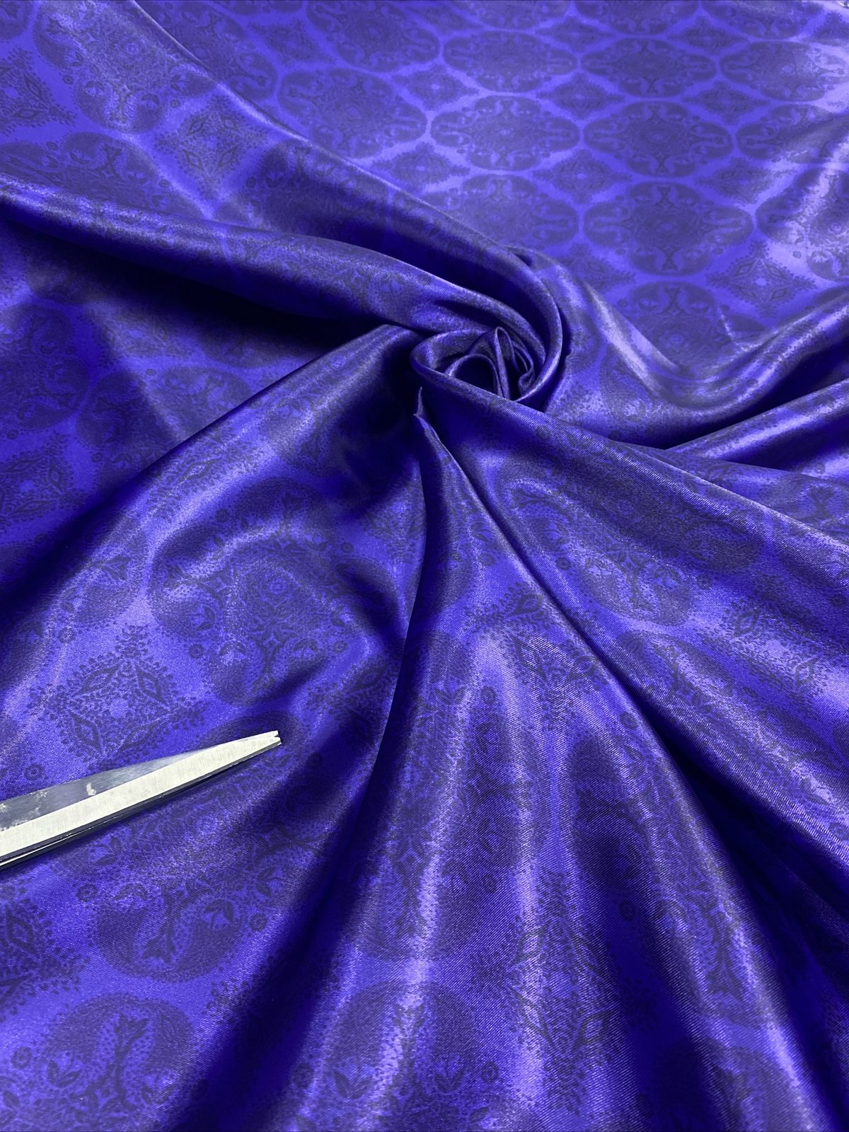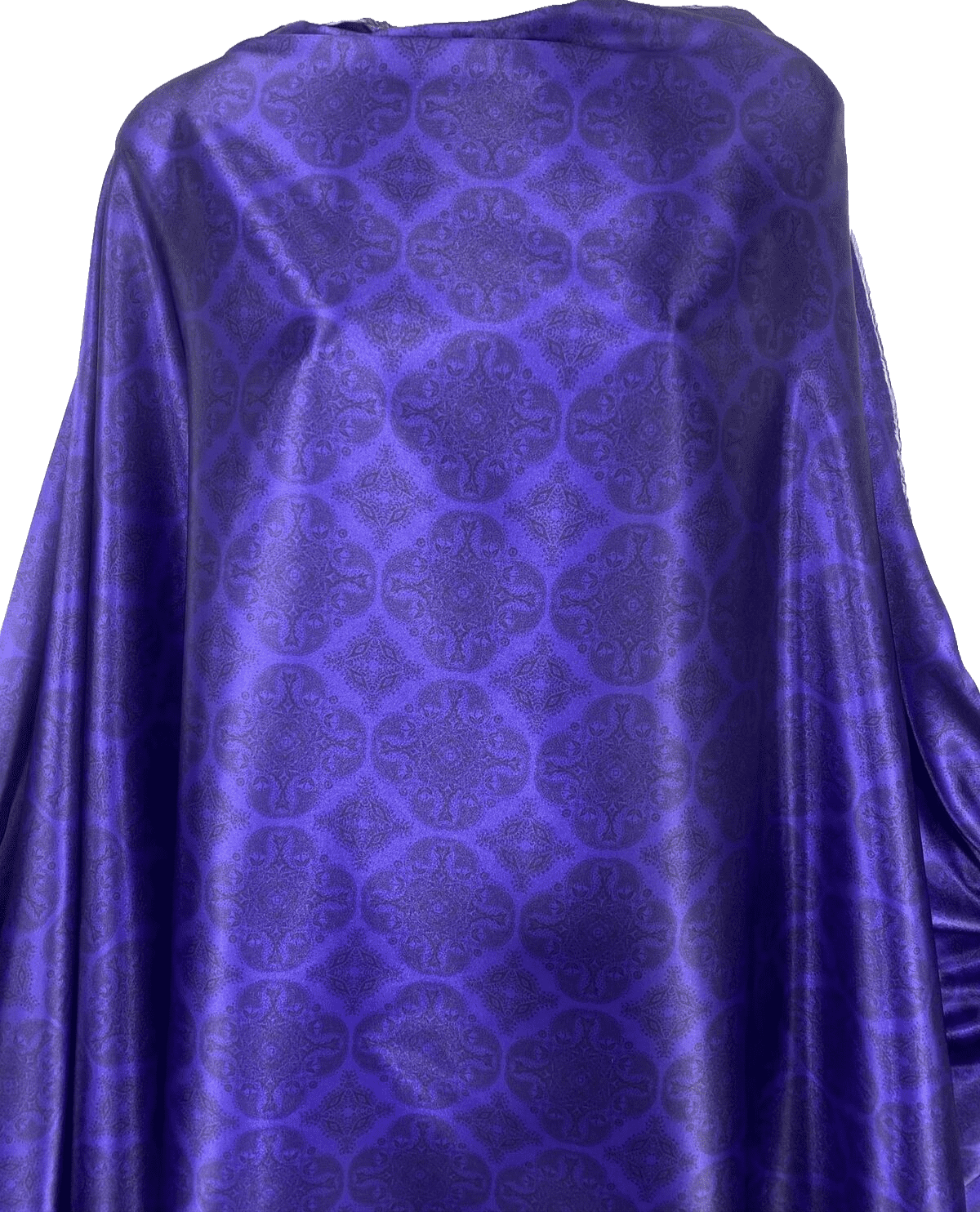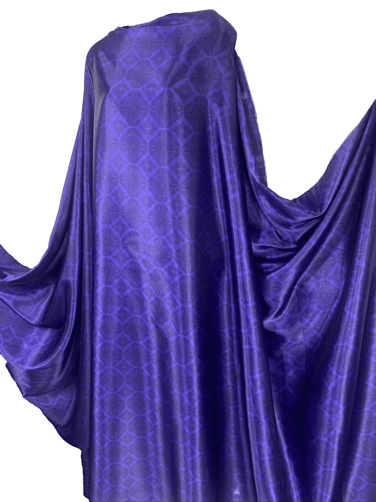 This luxurious soft satin fabric features an elegant damask print in rich dark purple, combining classic design with a smooth, glossy finish. Lightweight with a flowing drape, it’s perfect for evening dresses, blouses, occasionwear, and sophisticated craft projects. The silky texture and royal tones add a refined, high-end feel to any creation.