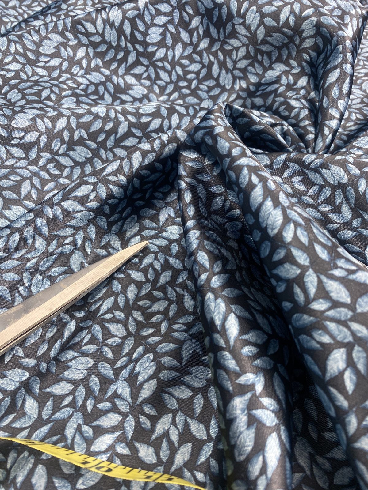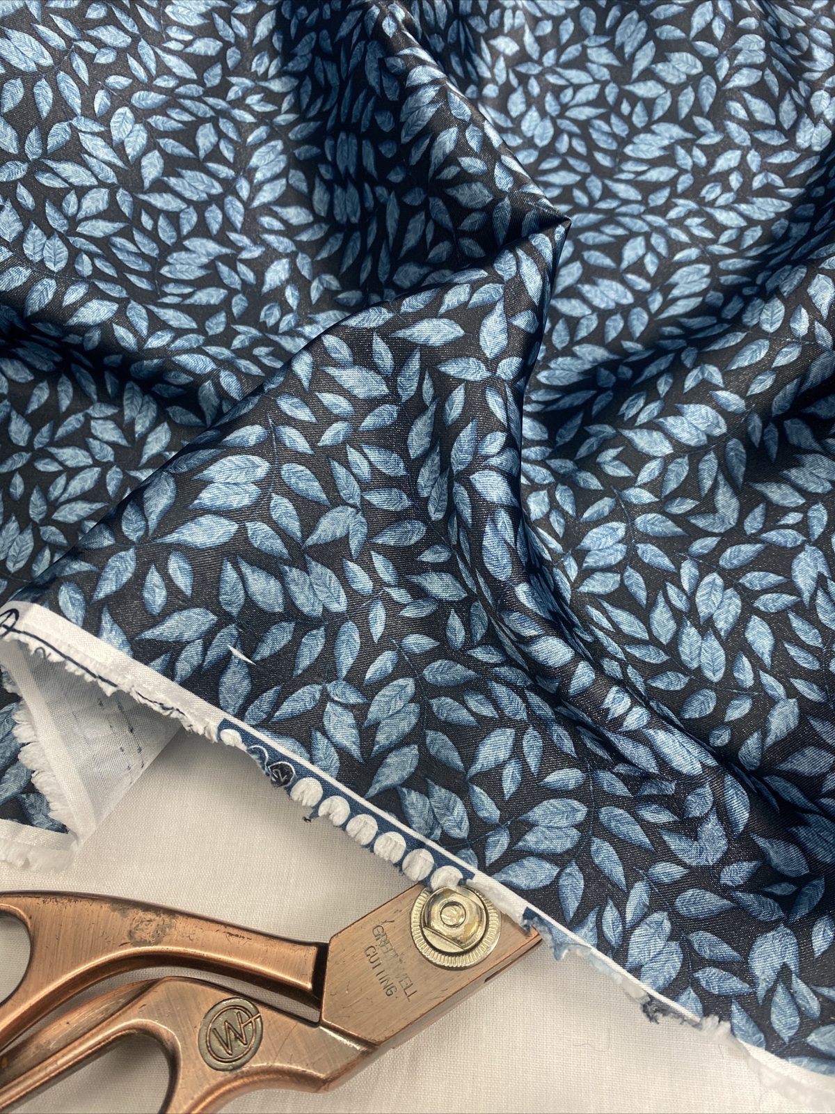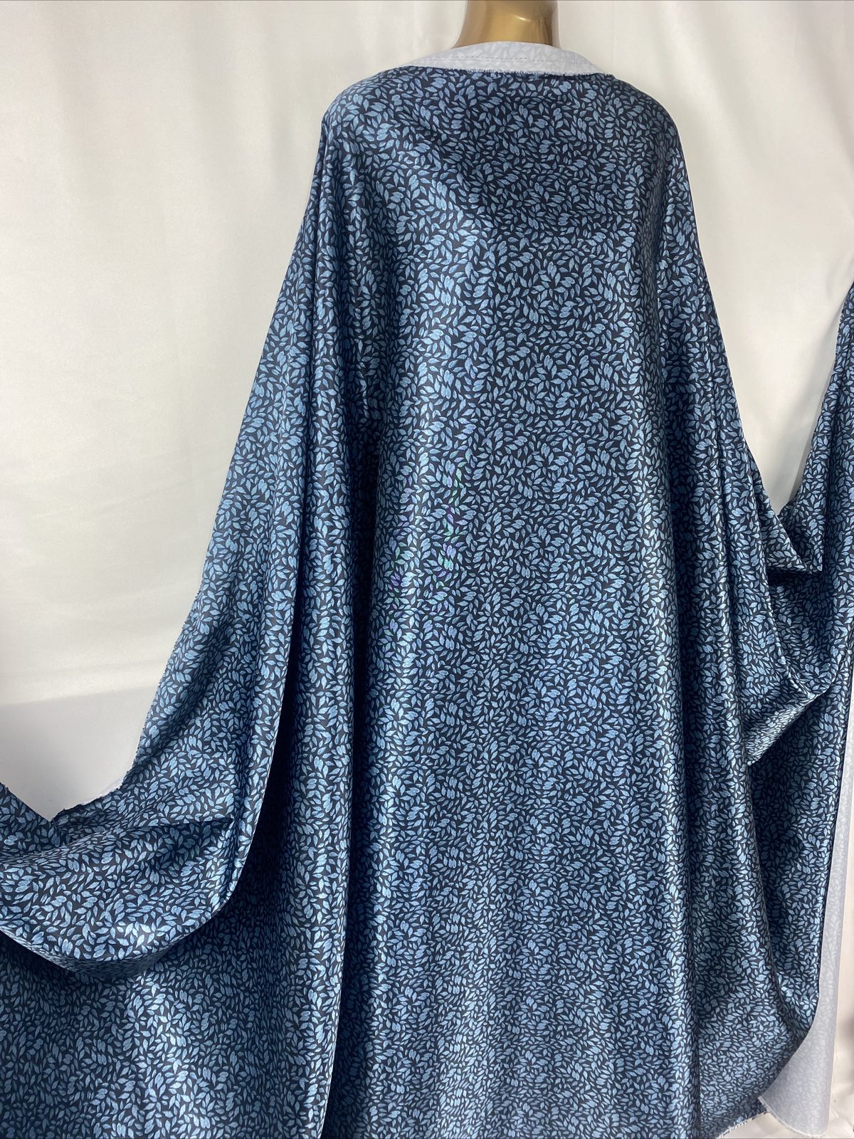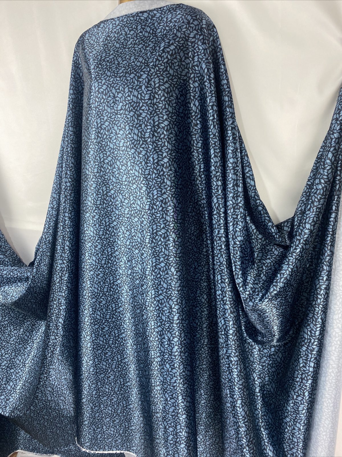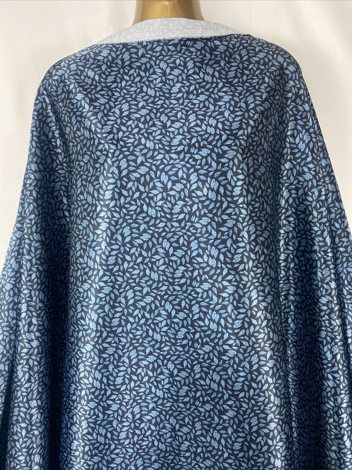 This soft and smooth polyester satin fabric features a beautiful leaves print in rich indigo blue tones, perfect for elegant garments and refined craft projects. Lightweight with a graceful drape and gentle sheen, it’s ideal for flowing dresses, blouses, linings, scarves, or statement event décor. A versatile fabric that blends sophistication with comfort.