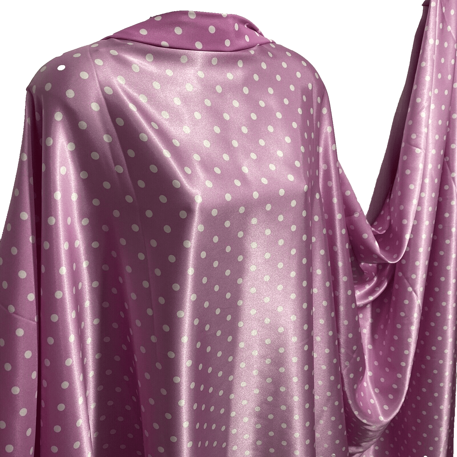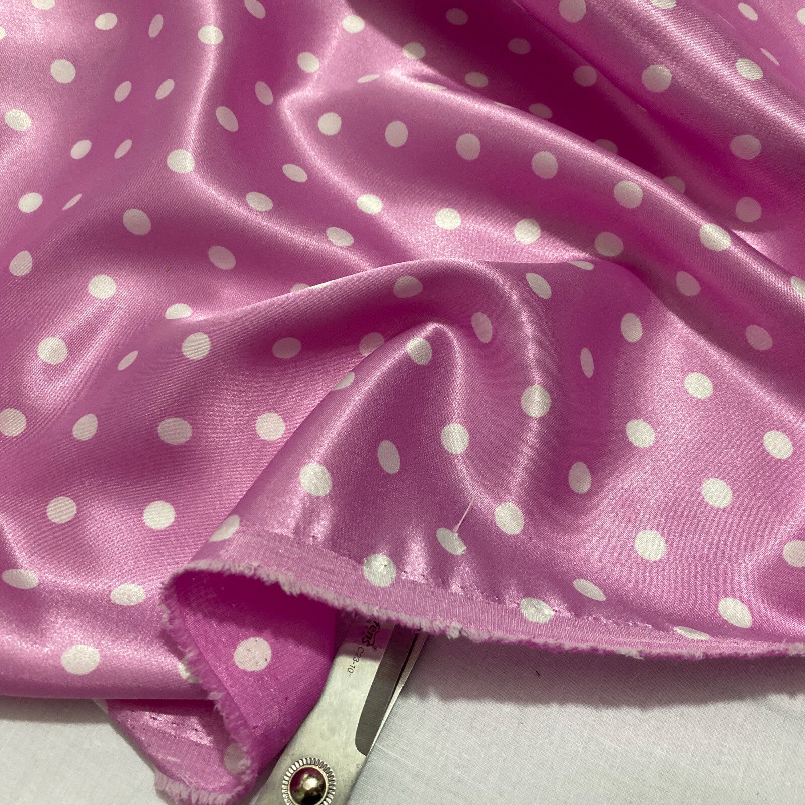 Soft Smooth Satin Mauve Pink Polka Dot Print Dress/Craft Fabric
