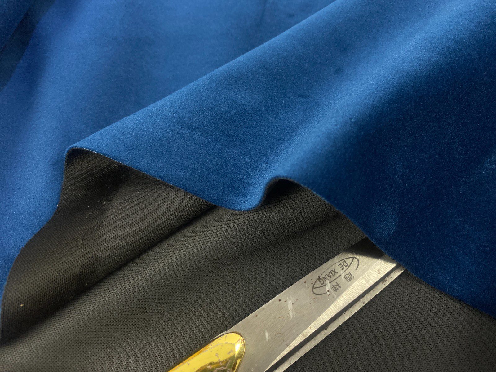 This premium marine blue velvet velour fabric features a luxuriously soft pile and a strong backing for added durability. Ideal for upholstery, cushions, curtains, and craft décor, it offers both style and resilience.
