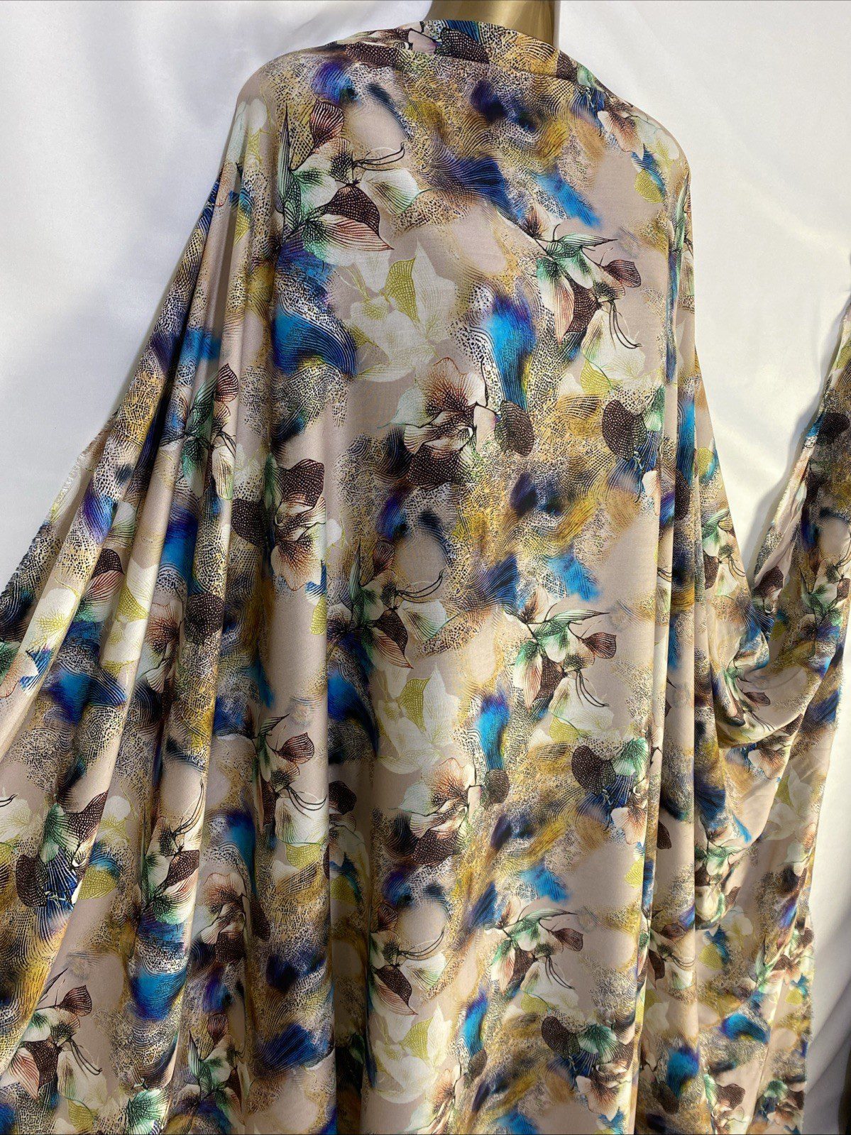 Craft your next masterpiece with our soft viscose Floral Tie Dye fabric, a vibrant and eye-catching material perfect for a variety of projects. Boasting a lively multicoloured pattern, this medium-weight fabric is ideal for creating clothing and crafts that require a touch of nature's beauty. The floral theme is complemented by a unique tie-dye design, making each piece a one-of-a-kind.